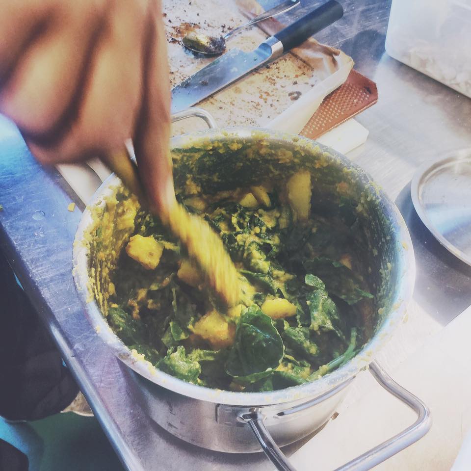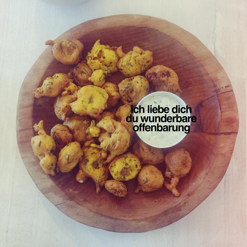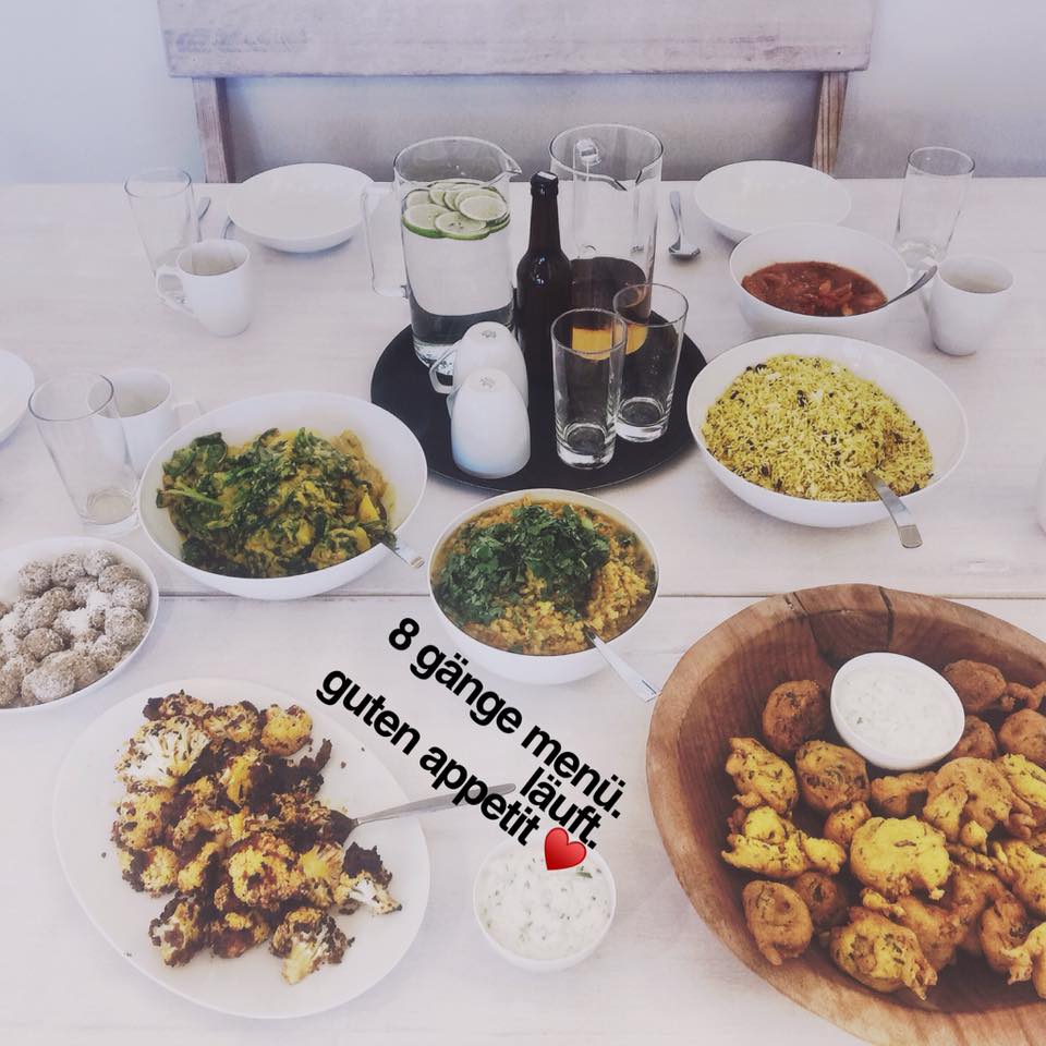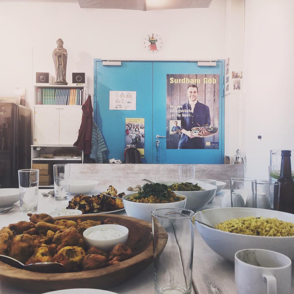 Wir lieben die indische Küche. Und wir lieben Surdham. Also haben wir beides miteinander verbunden, weil der Surdham immer tolle Ideen hat: Zum Beispiel „Hej, lasst uns alle indisch kochen!“ Ja, da waren wir sofort dabei und so kam es dass sich sechs Leute vom Profi zeigen haben lassen wie man so ein mega , hammer , indisches Menü auf die Beine (Tische) stellt. Bunt, würzig, vielfältig und einfach zuzubereiten war das ganze Essen. Meine Offenbarung 2017: Selfmade Pakoras! Liebevoll möchte ich sie „Knuspakoras“ nennen, denn sie waren so schön knusprig und das Gemüse innen so schön heiß und saftig… und dann das Gurken Raita dazu…