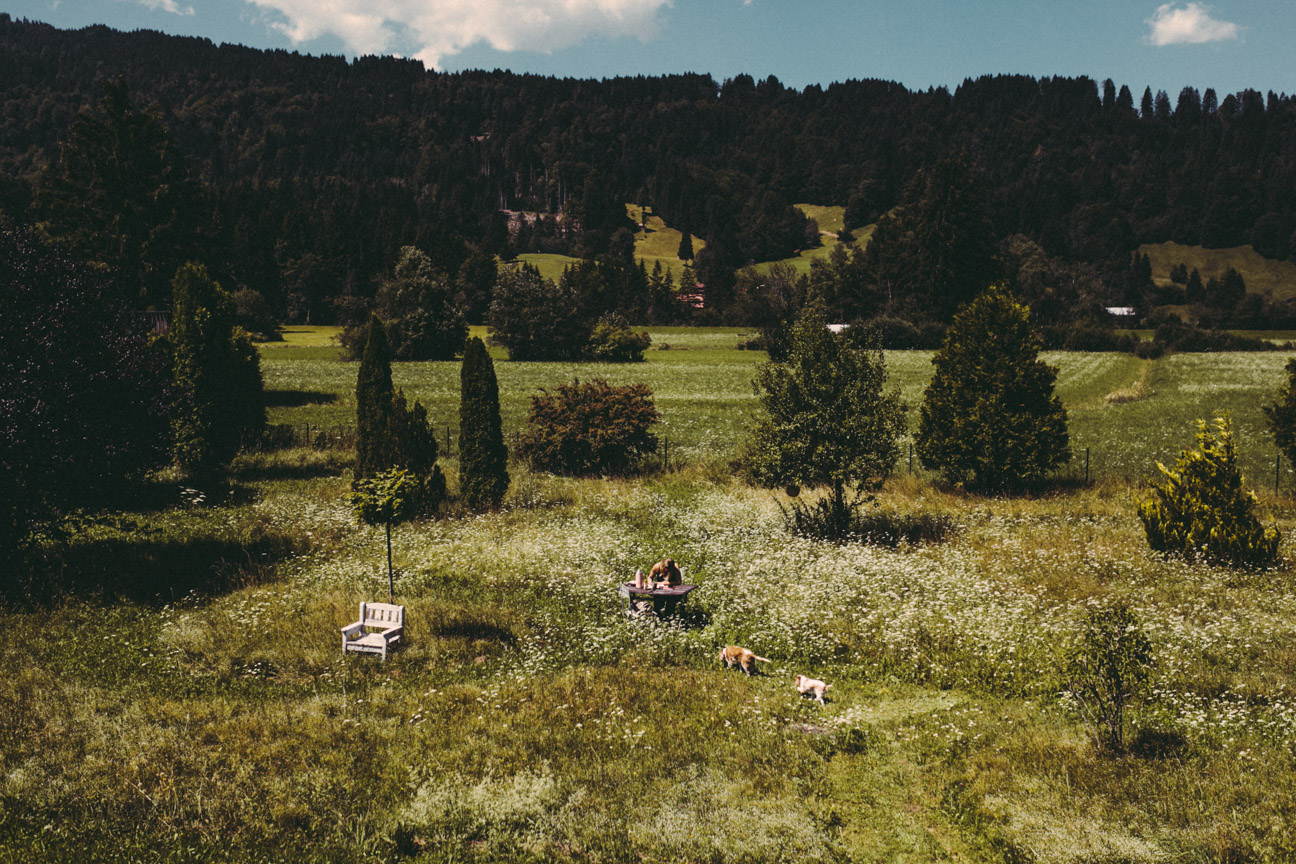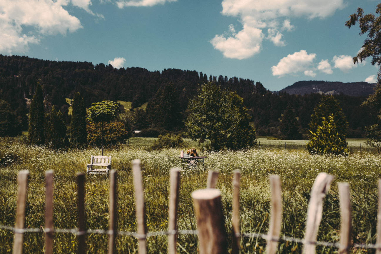 Unser Nicole und ich saßen auf der Terrasse, aßen einen saftigen Apfelkuchen und sahen dabei über die große, üppige Wise hinter`m Haus.