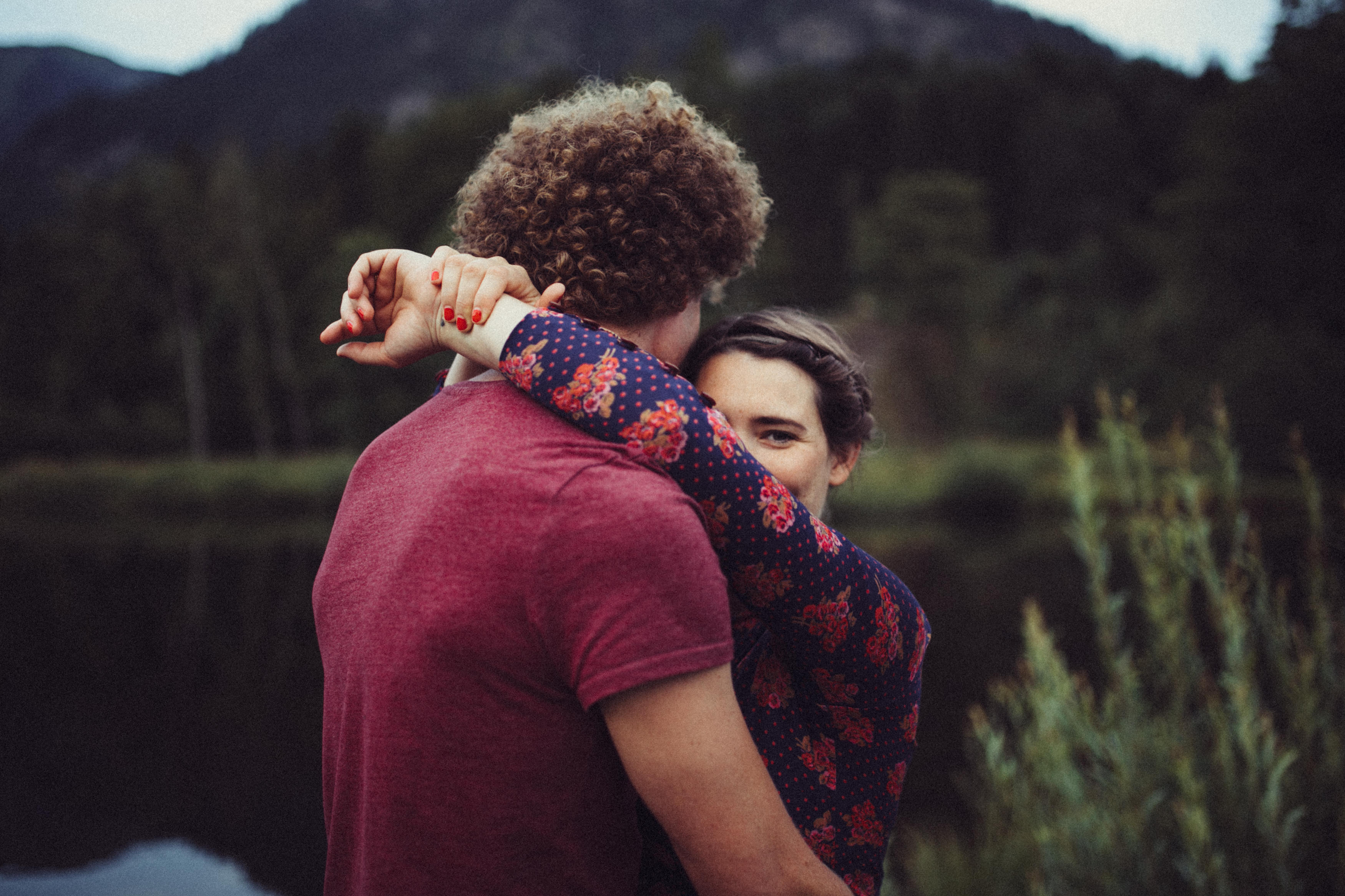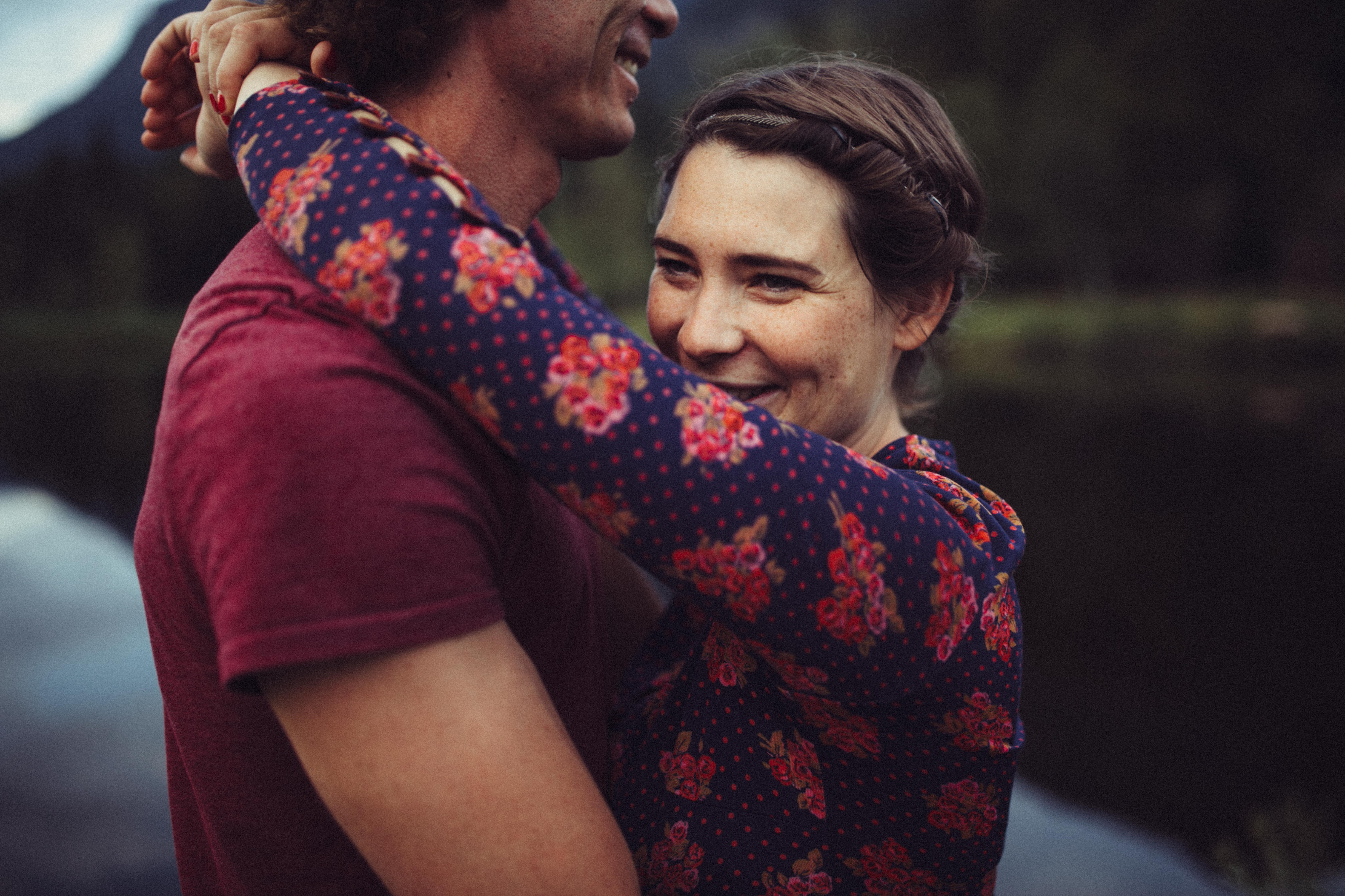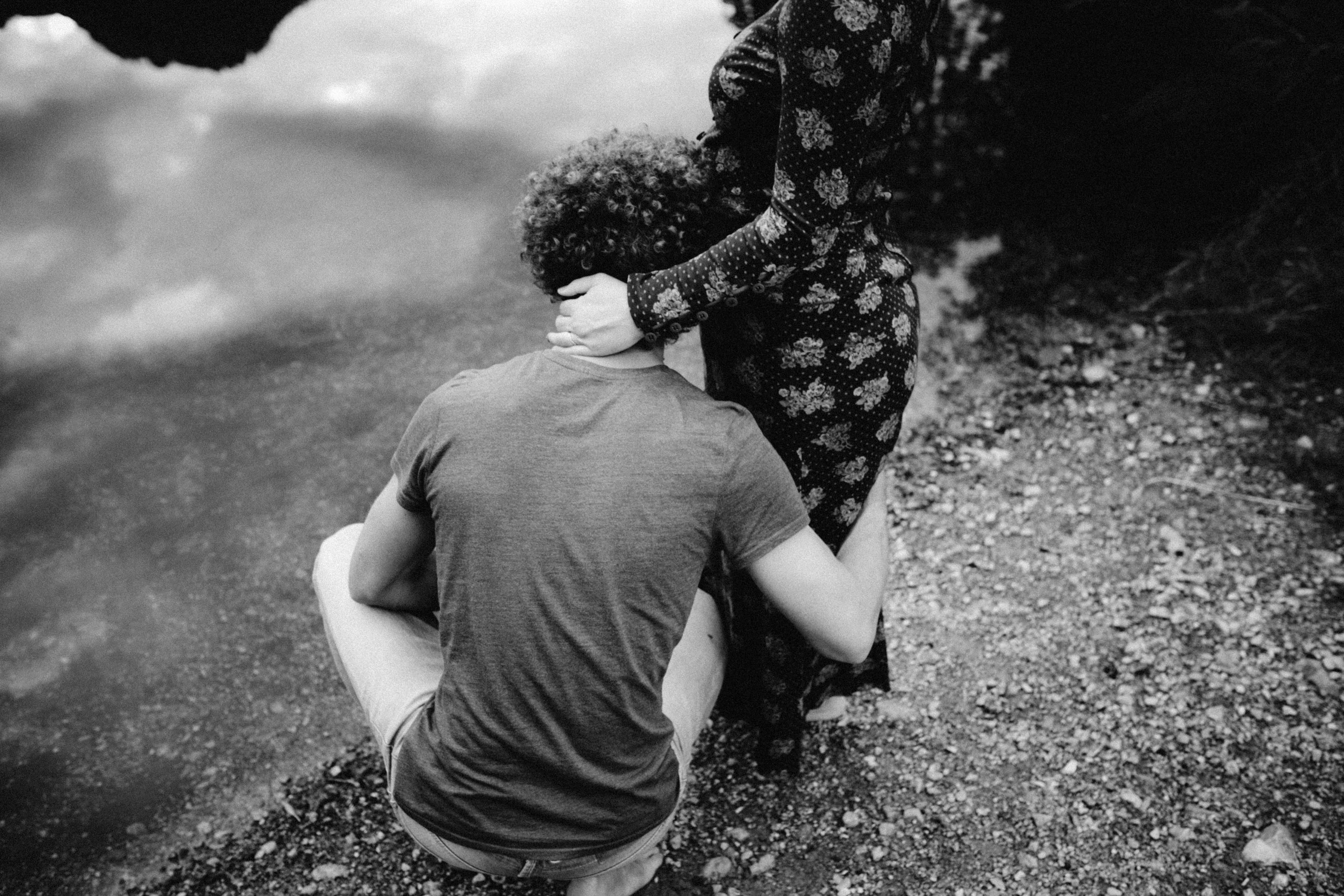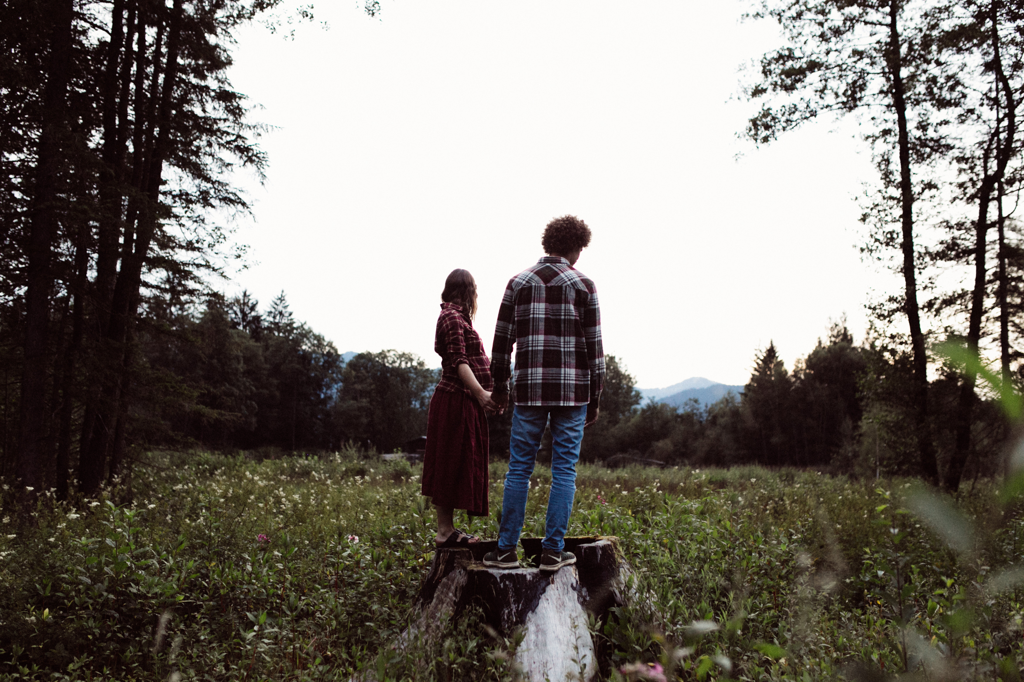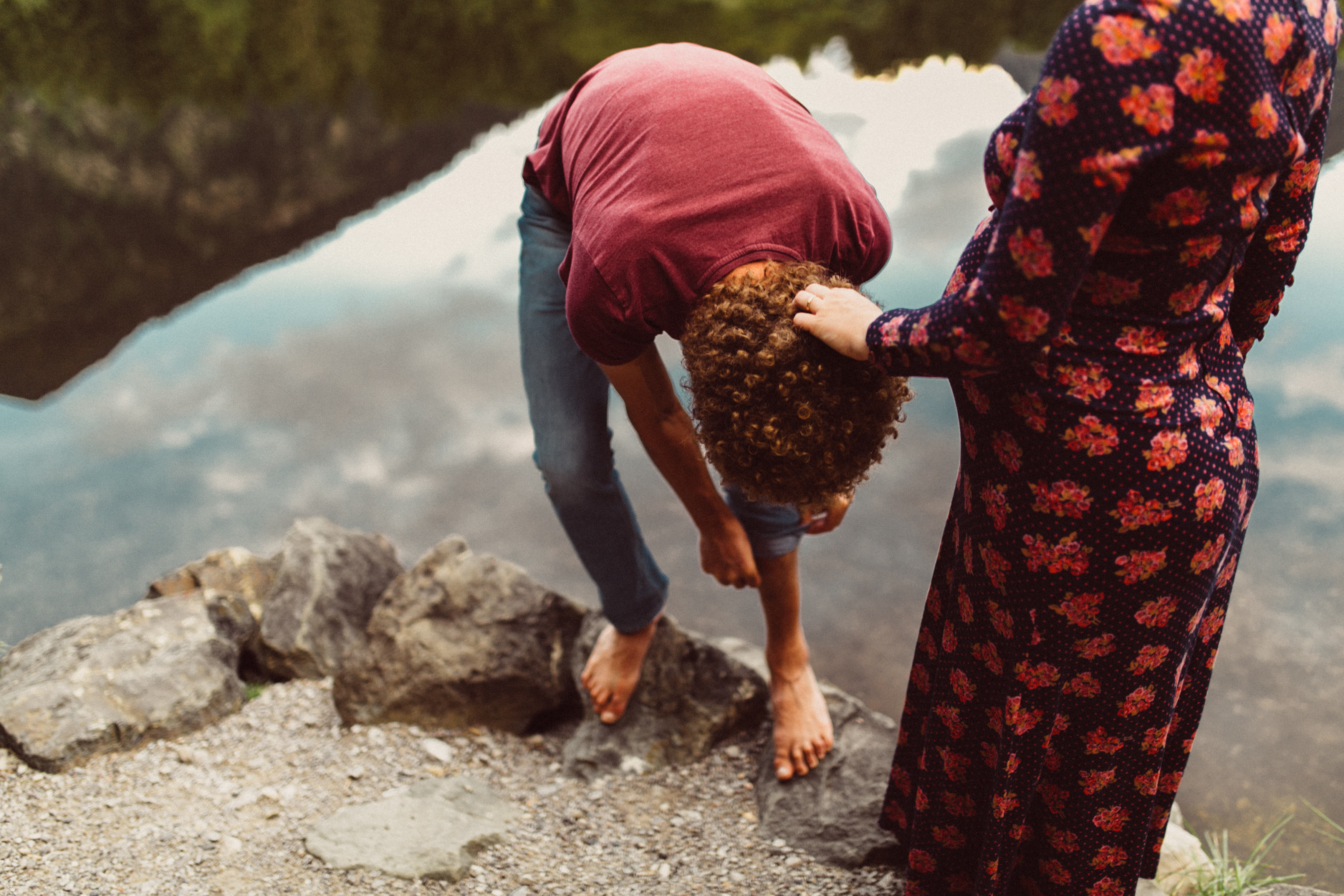 Die beiden kamen zu mir nach Oberstdorf, wir tranken einen Tee und fuhren los. Nach einem kleinen Fußmarsch erreichten wir den still gelegenen Weiher inmitten meiner neuer Heimat. Während die Sonne langsam unterging und kein Mensch weit und breit diesen Platz besuchte, verbrachten wir fast zwei gemütliche Stunden dort oben zusammen. Sophias Babybäuchlein wurde mit den drei genialen Outfits super in den Mittelpunkt gestellt. Einmal das blaue Vintage Kleid ihrer Oma, einmal das Bauchfreie, karierte Hemd mit roten Rock.Und am Ende noch das schöne, schwarz – lila Spitzentop dazu. Ich liebe, liebe, liebe deren Style. So einfach und erdig und doch mit dem gewissen Etwas. So einzigartig diese Stimmung. So wunderschön die drei ♡♡♡