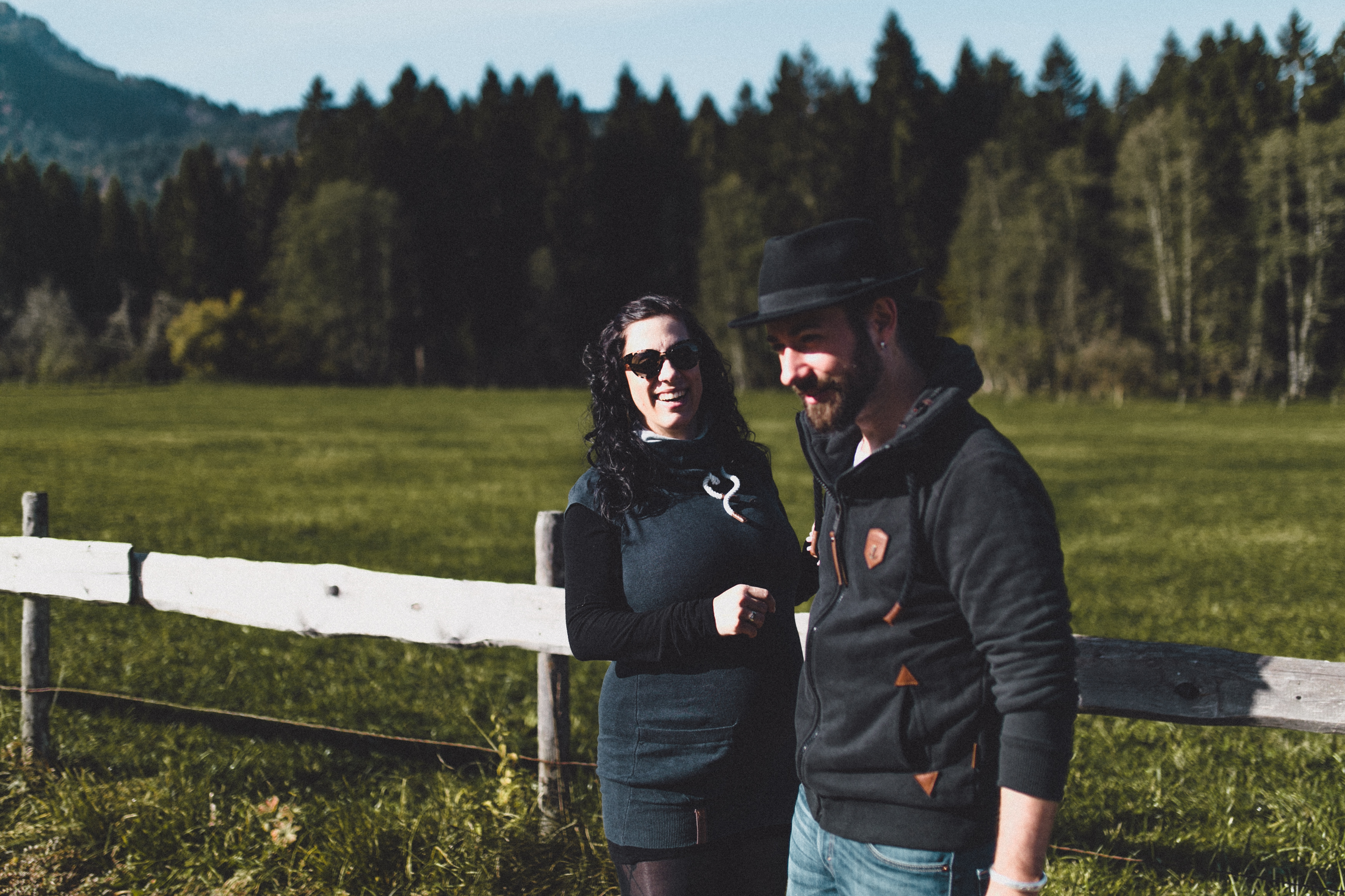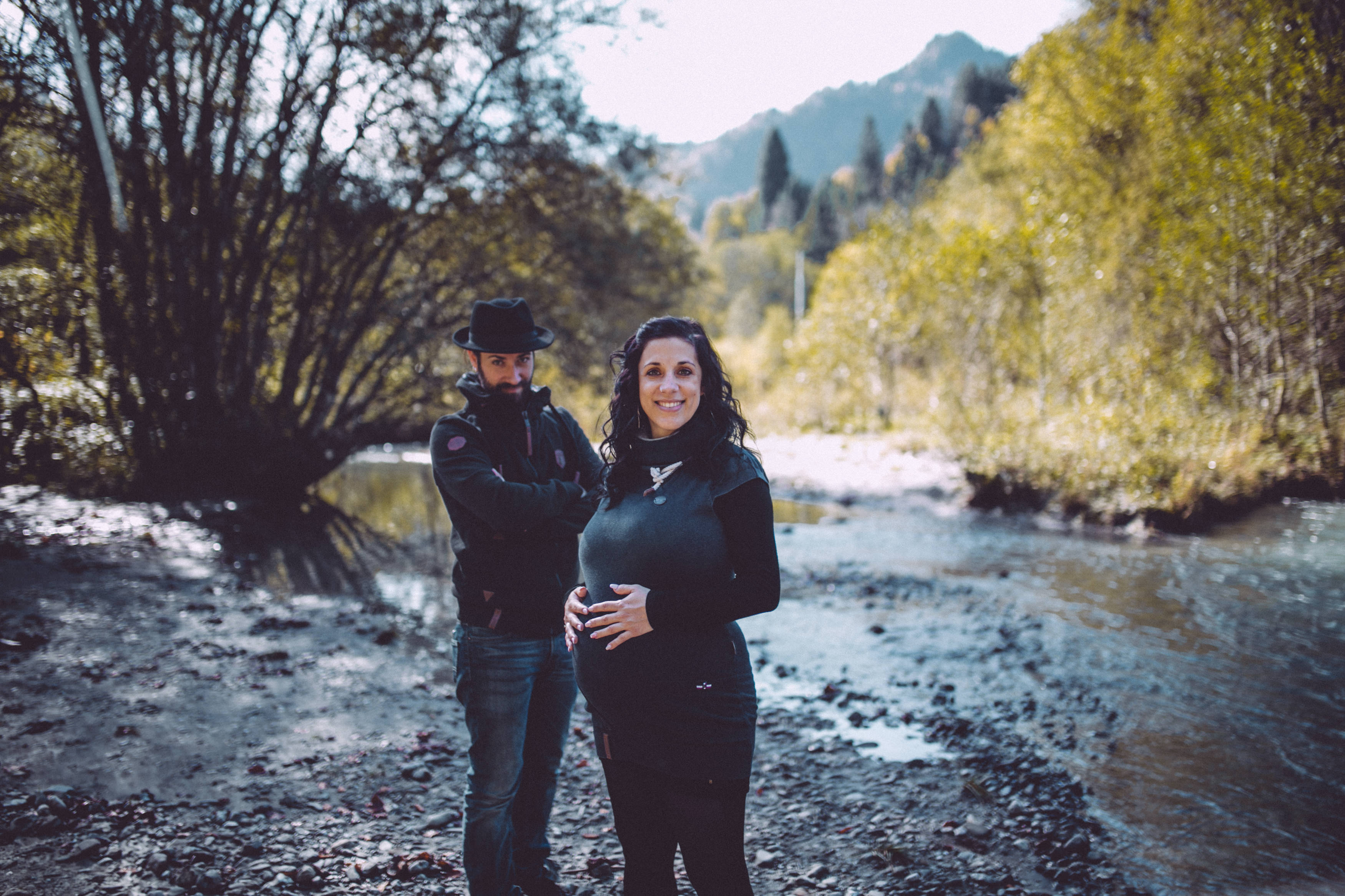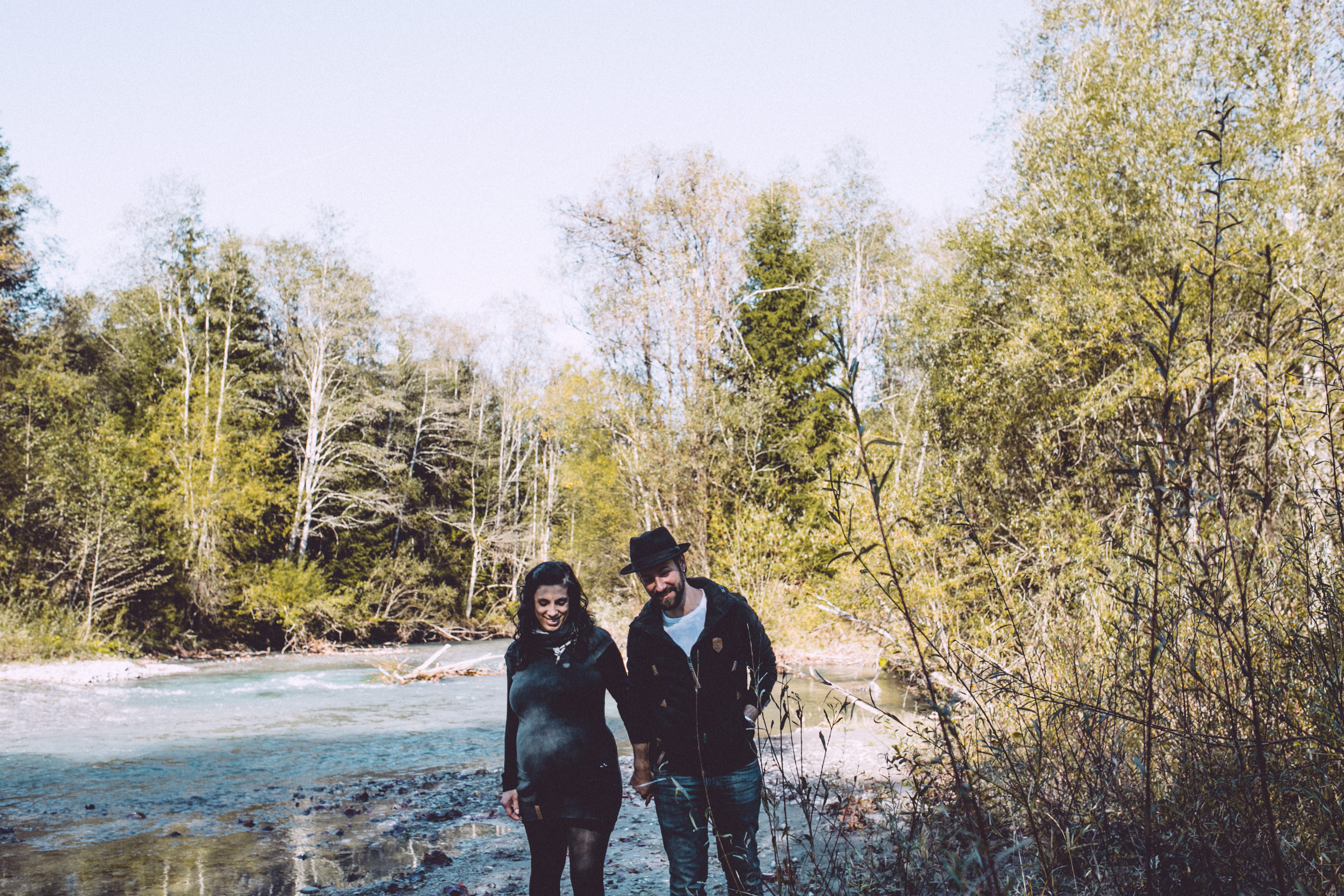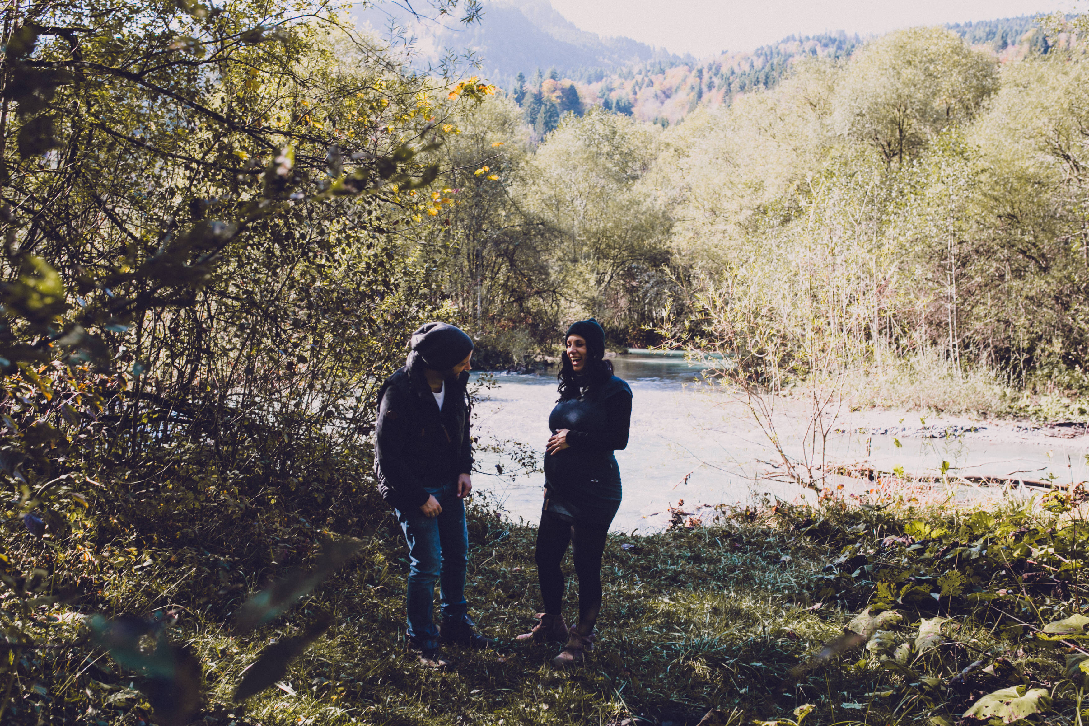 Herbst 2017. Eines der Shootings im goldenen Licht habe ich mit Jascha und Alexandra verbracht. Beide machten Urlaub in Oberstdorf und so haben wir ein Babybauchshooting mit einem Wald und Fluss Spaziergang verbunden. Vor einigen Monaten habe ich eine wunderschöne Stelle gefunden zu der ich gerne spazieren gehe und weil die nur ein paar gefühlte Minuten von mir weg ist, haben wir das Shooting einfach mit einem ausgiebigen Spaziergang in der Nachmittagssonne verbunden. Wie schön die Welt doch ist ♡