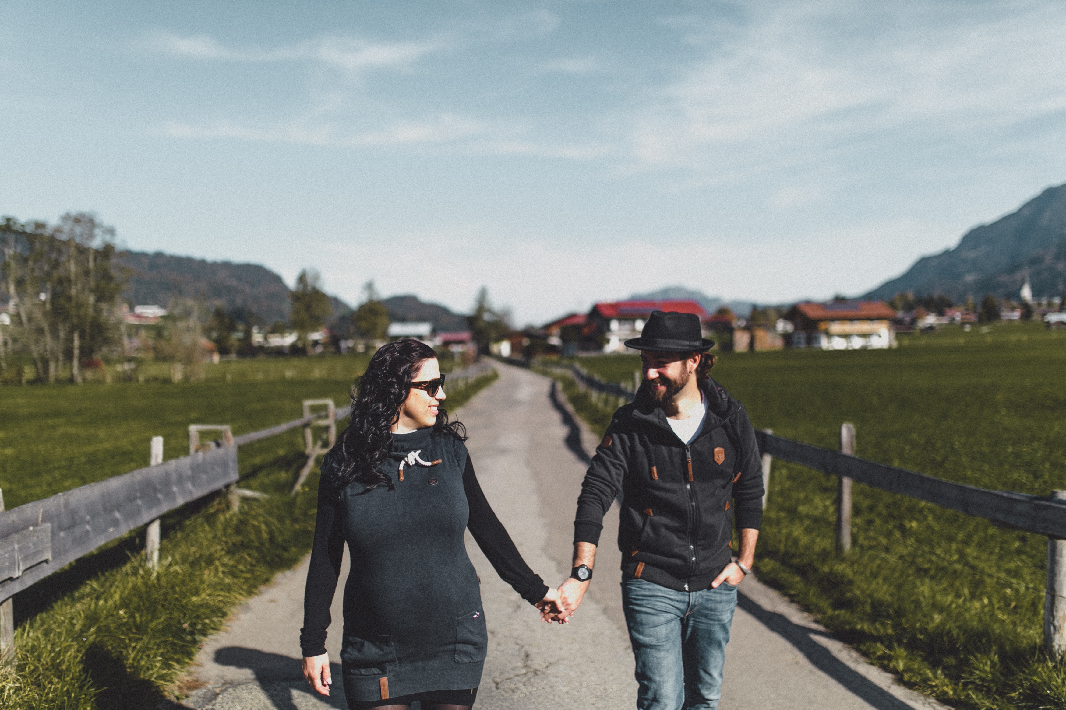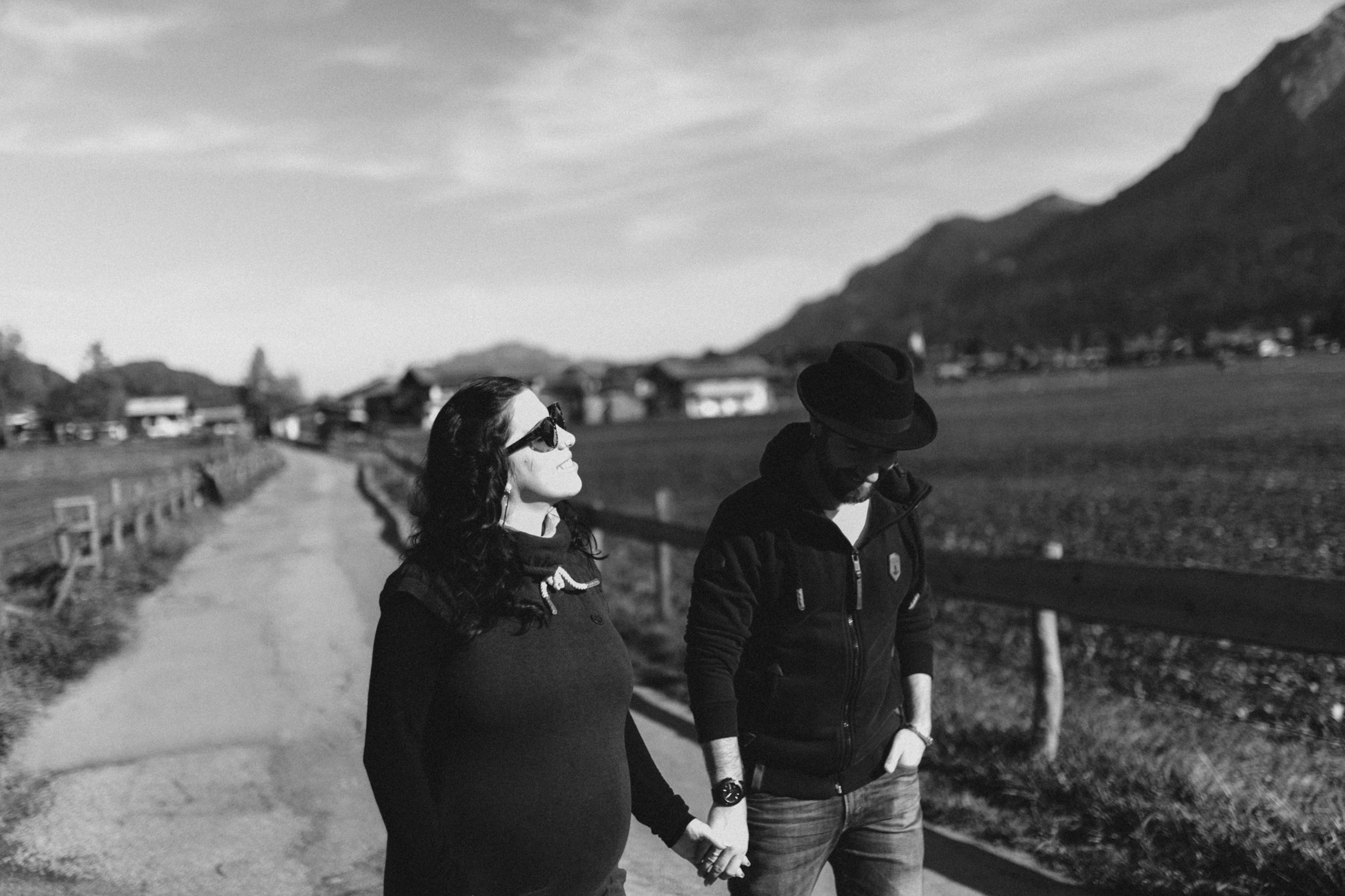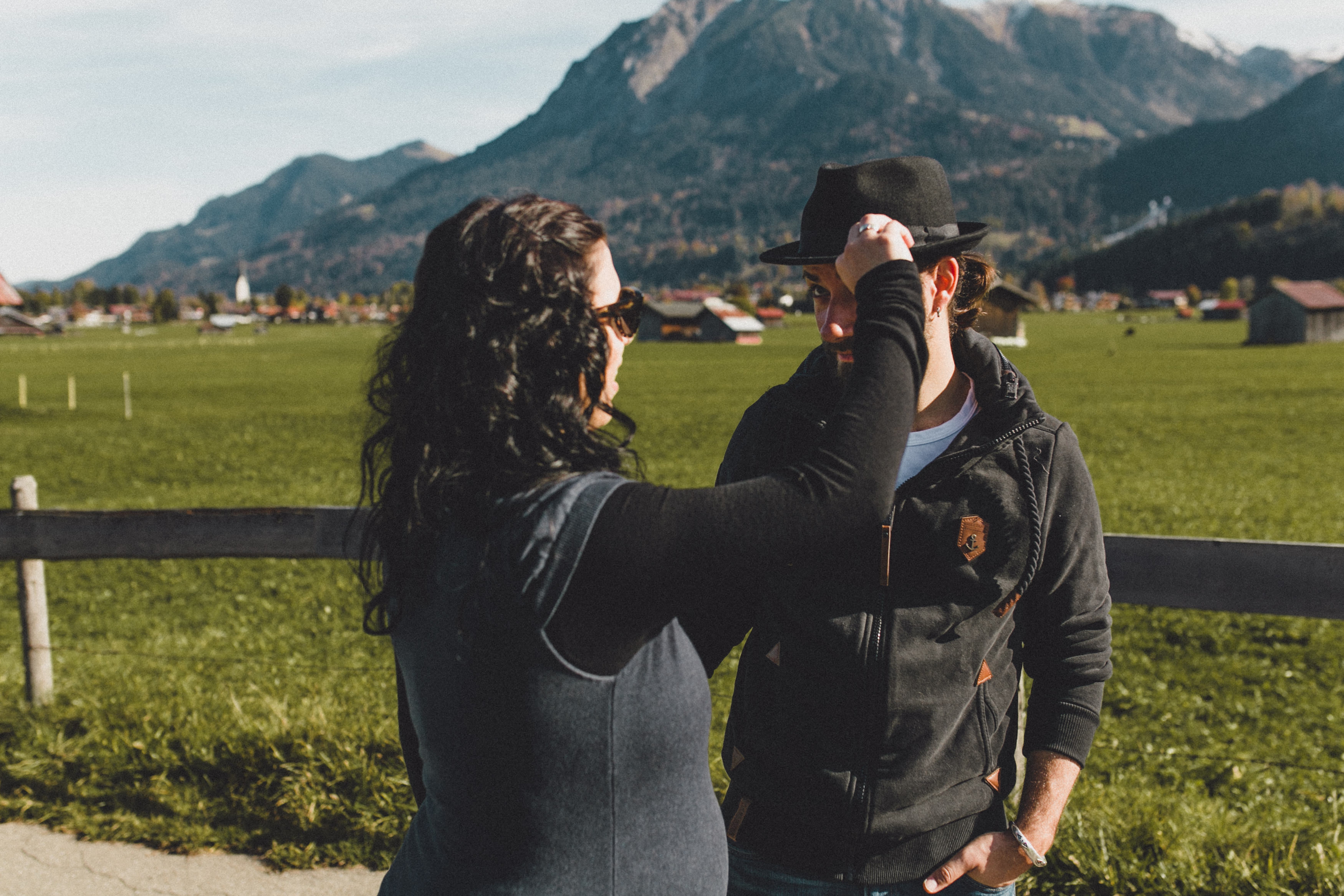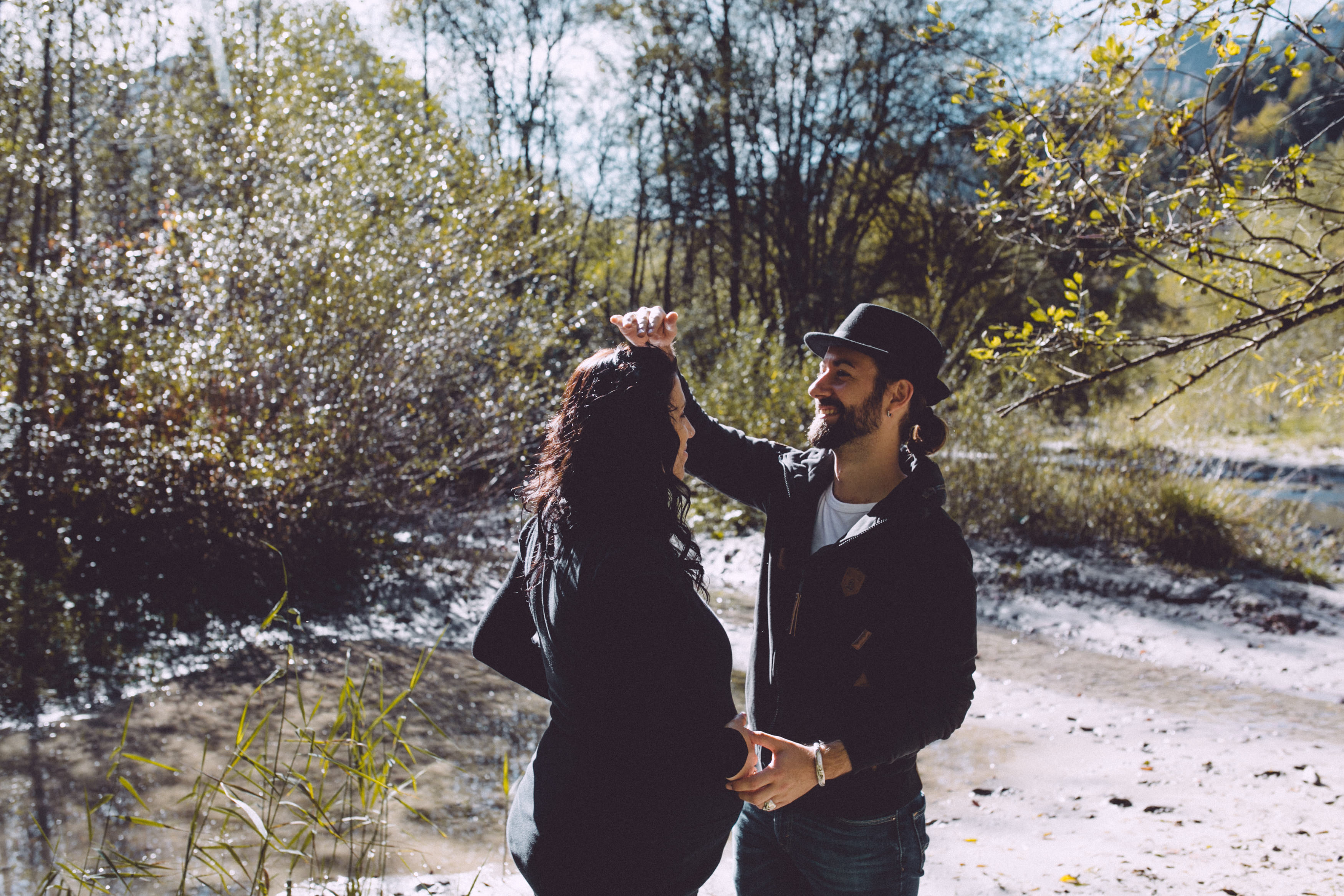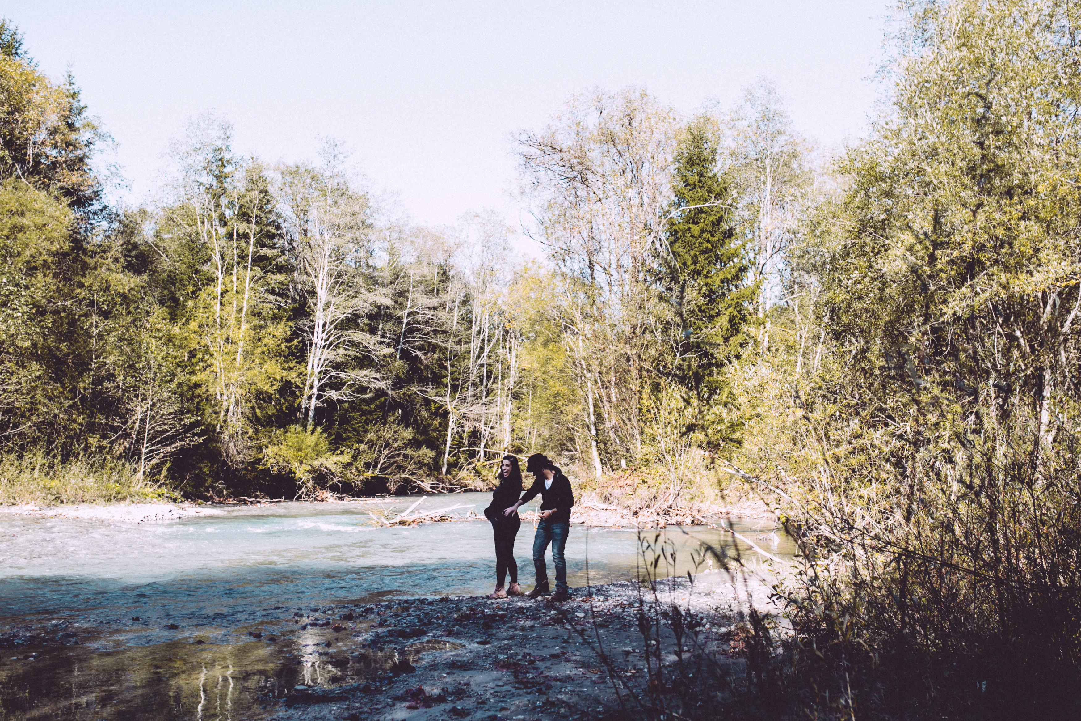Herbst 2017. Eines der Shootings im goldenen Licht habe ich mit Jascha und Alexandra verbracht. Beide machten Urlaub in Oberstdorf und so haben wir ein Babybauchshooting mit einem Wald und Fluss Spaziergang verbunden. Vor einigen Monaten habe ich eine wunderschöne Stelle gefunden zu der ich gerne spazieren gehe und weil die nur ein paar gefühlte Minuten von mir weg ist, haben wir das Shooting einfach mit einem ausgiebigen Spaziergang in der Nachmittagssonne verbunden. Wie schön die Welt doch ist ♡