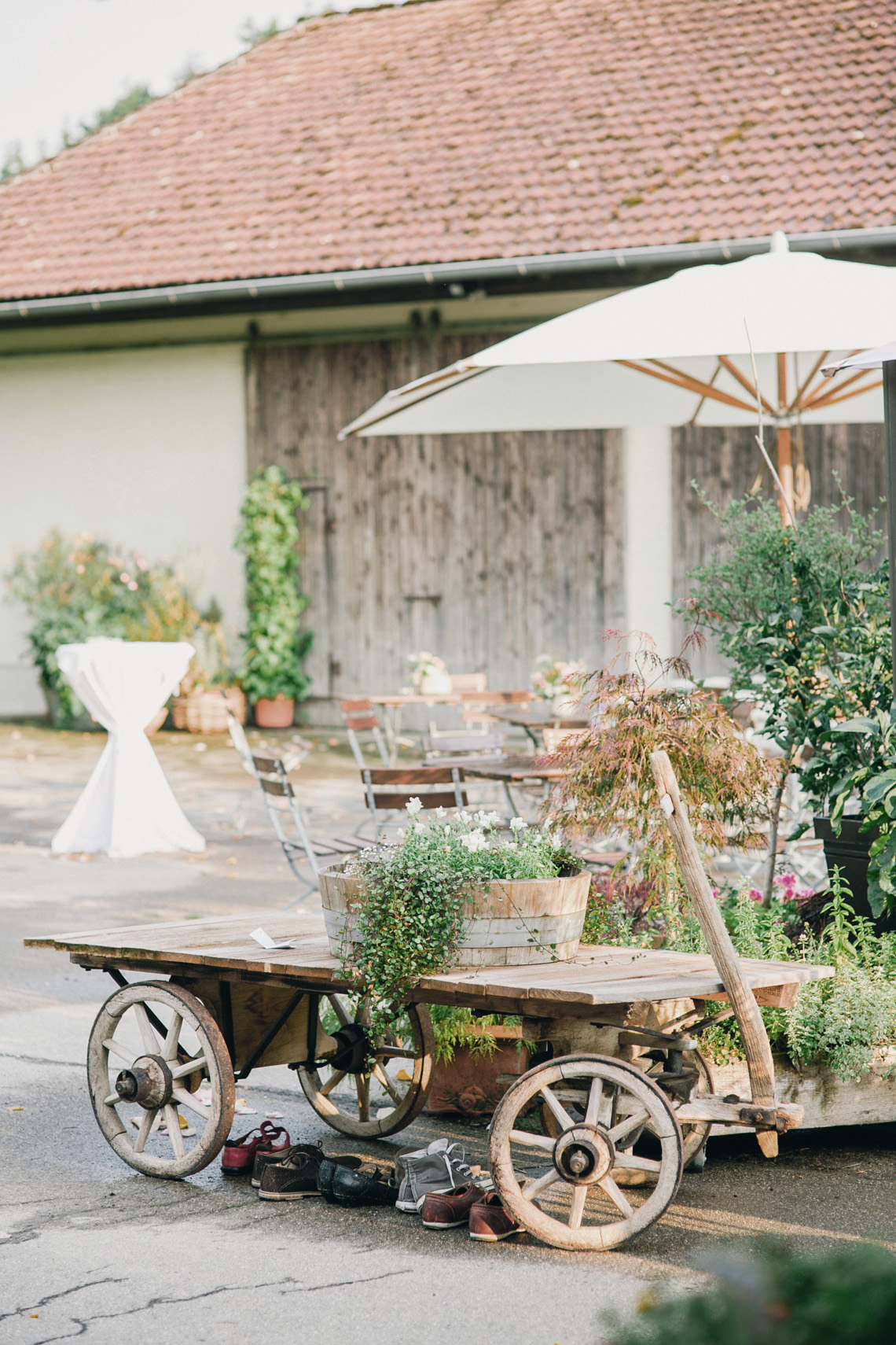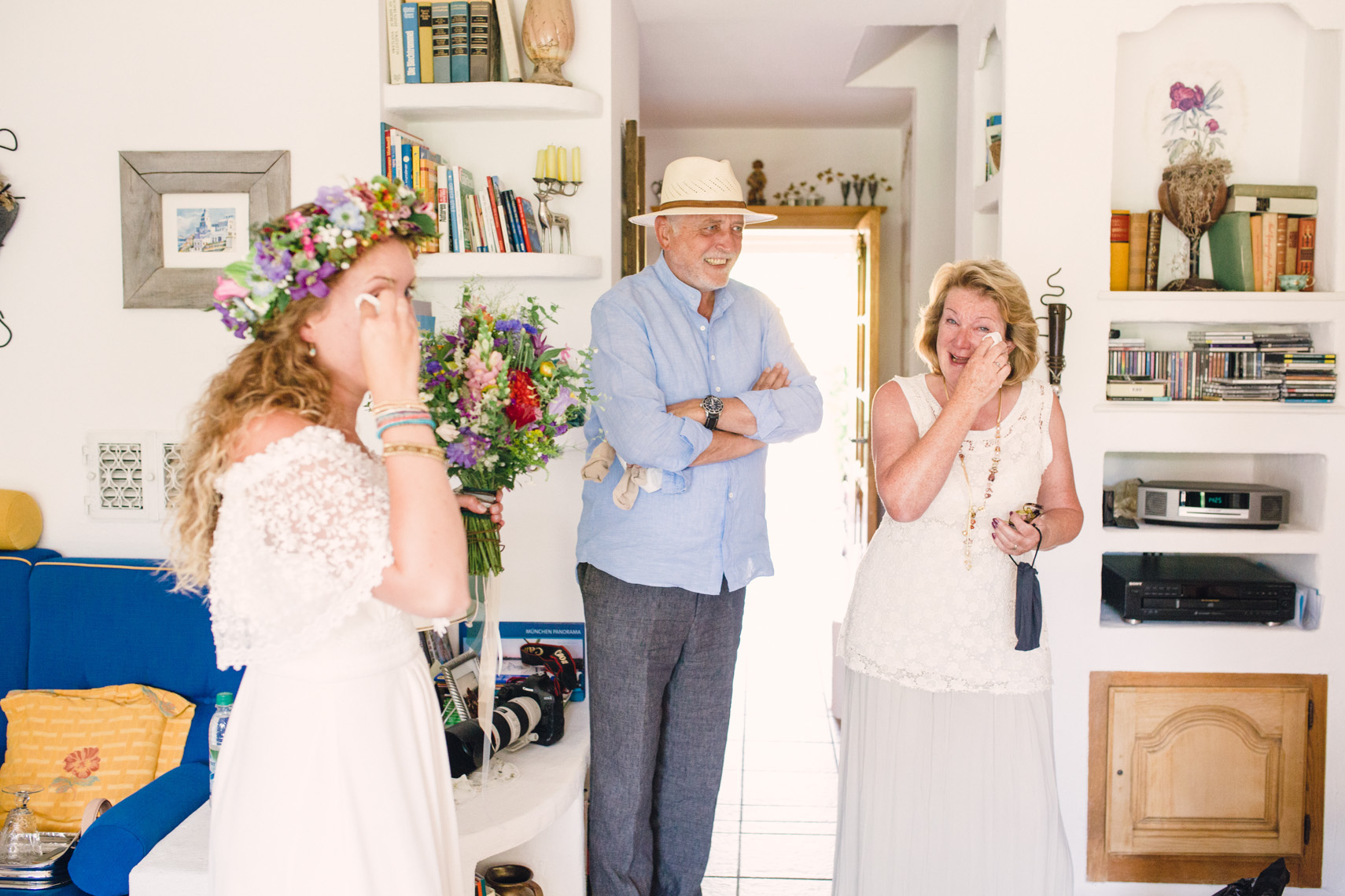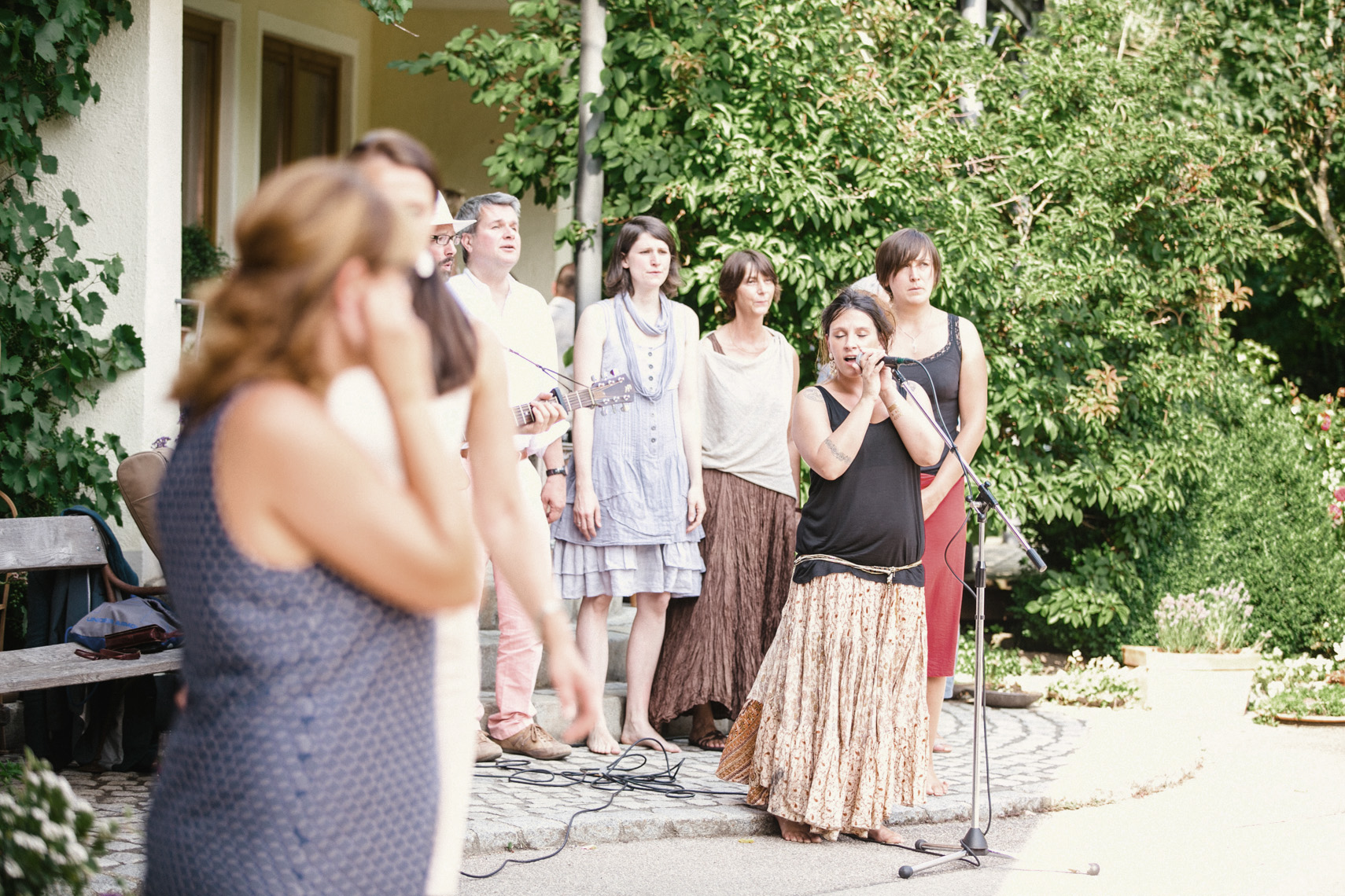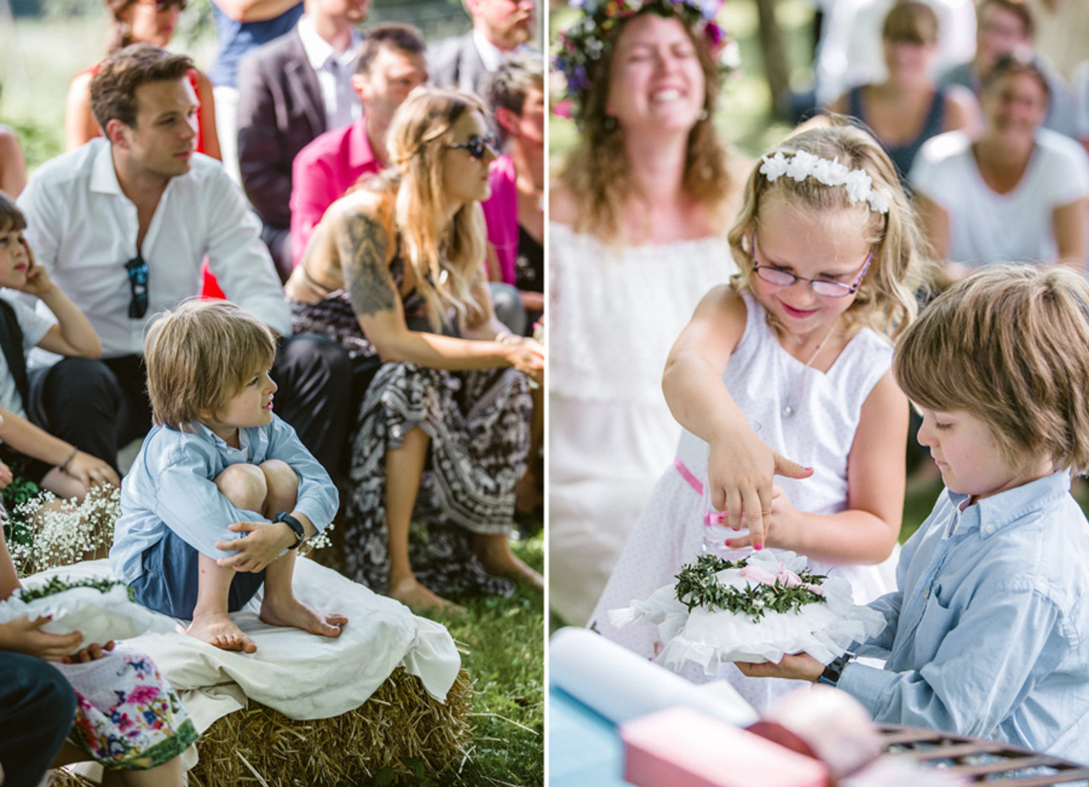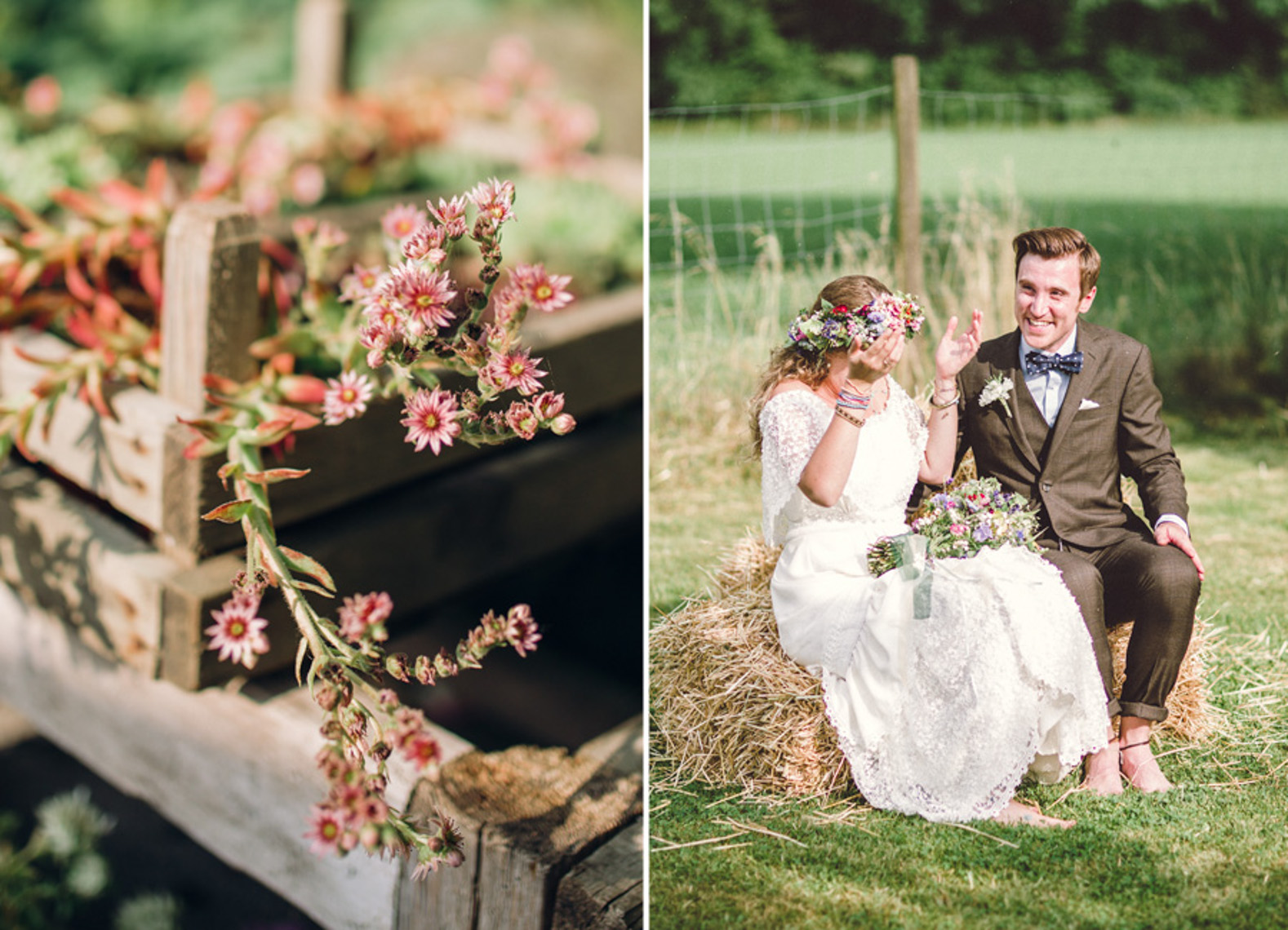 „…Hallo Alexandra, wir sind Mihi und Felix, wir heiraten und weil wir auch auf unserer Hochzeit so wie immer bleiben wollen, wird unser Fest total entspannt, locker und natürlich. Unter anderem werden wir auf jeden Fall barfuß feiern… “ Ich las nur “ barfuß “ und in diesem Moment dachte ich, die Beiden musst du unbedingt kennenlernen. Denn wer barfuß heiratet, passt zu dir. Seit dem sprach ich, wenn es um Mihi und Felix`Hochzeit ging, immer von der “ Barfußhochzeit “ die am Ende genau so schön wurde, wie ich es mir vorgestellt hatte. Eine süße Hippie Braut, ohne Make up und dafür mit ganz vielen bunten Armbändchen, einem großen Blumenkranz für den Kopf und einem Wildblumenstrauß als Hochzeitsbouquet in der Hand. Und ihr treuster Felix als Bräutigam, mit luftigem aber chicen Anzug, hochgekrempelter Hose und einem über den Tag andauerndem verschmitztem Grinsen im Gesicht. Da saßen sie also, unter einem großen Haselnussbaum und gaben sich ihr Eheversprechen, feierten und tanzten daraufhin bis in aller Früh und strahlten wie die Sommersonne. Und selbstverständlich fühlten sich nicht nur die Beiden barfuß am wohlsten, auch Gäste und Fotografin blieben den Tag lang ohne Schuhwerk.