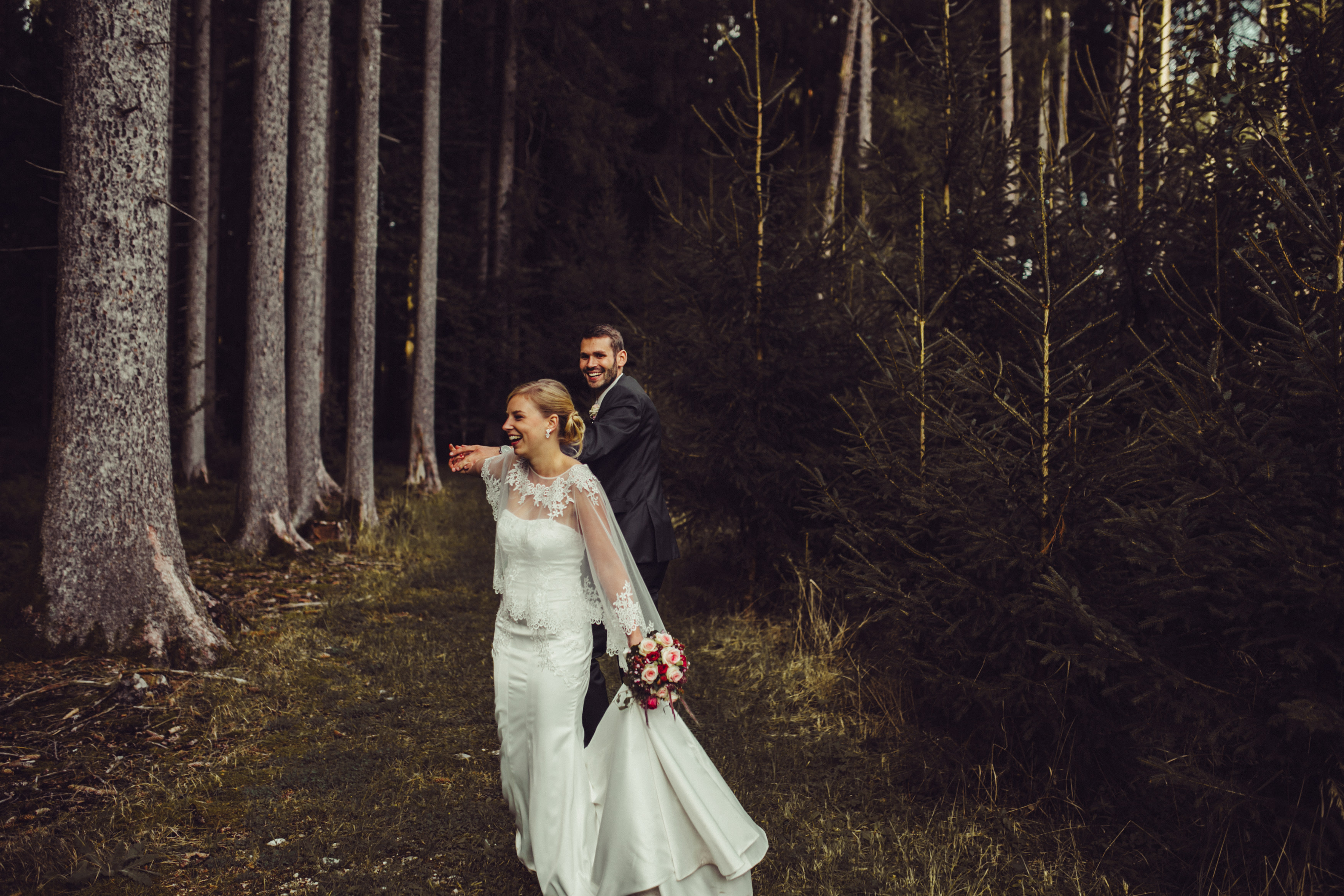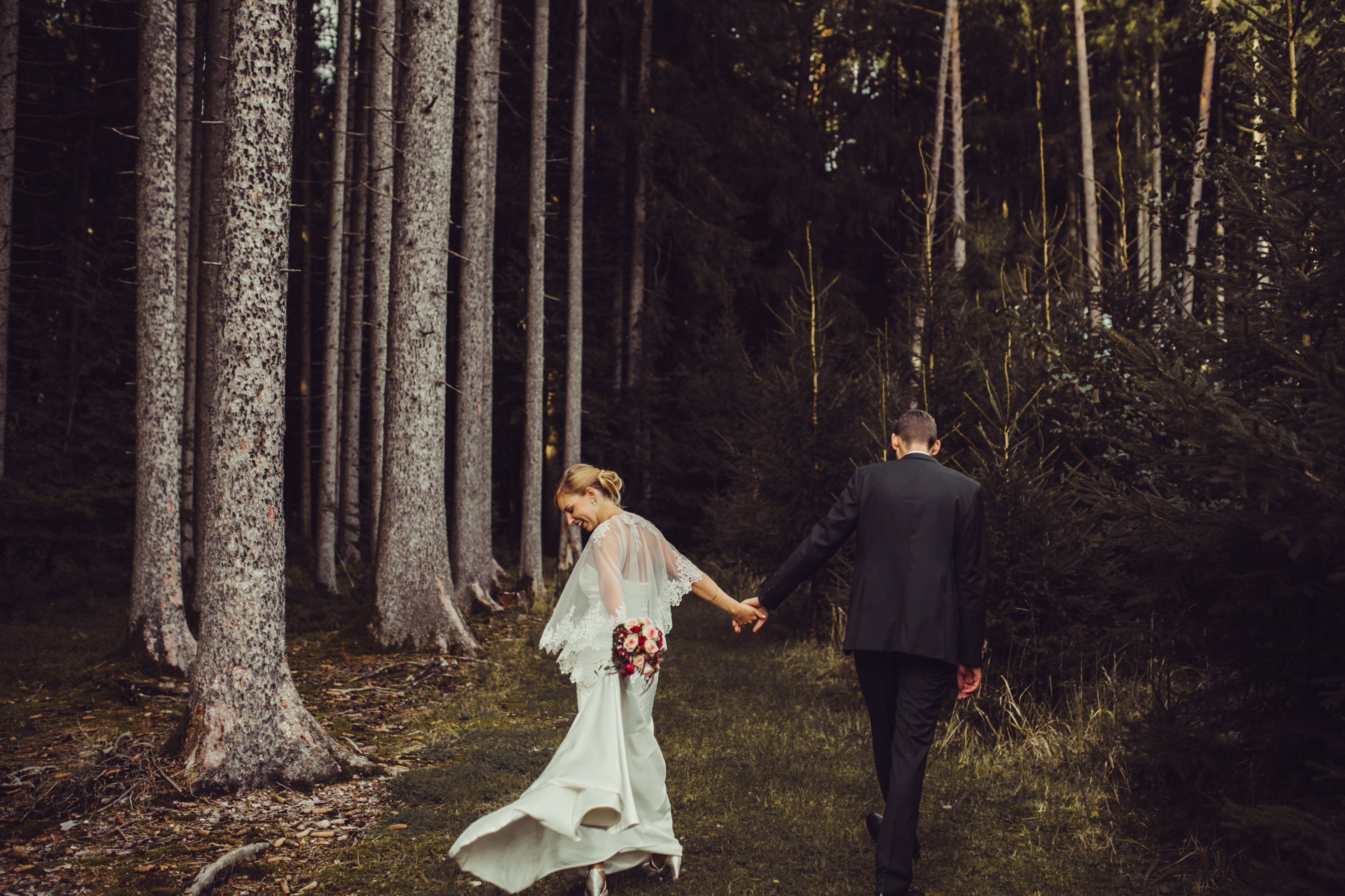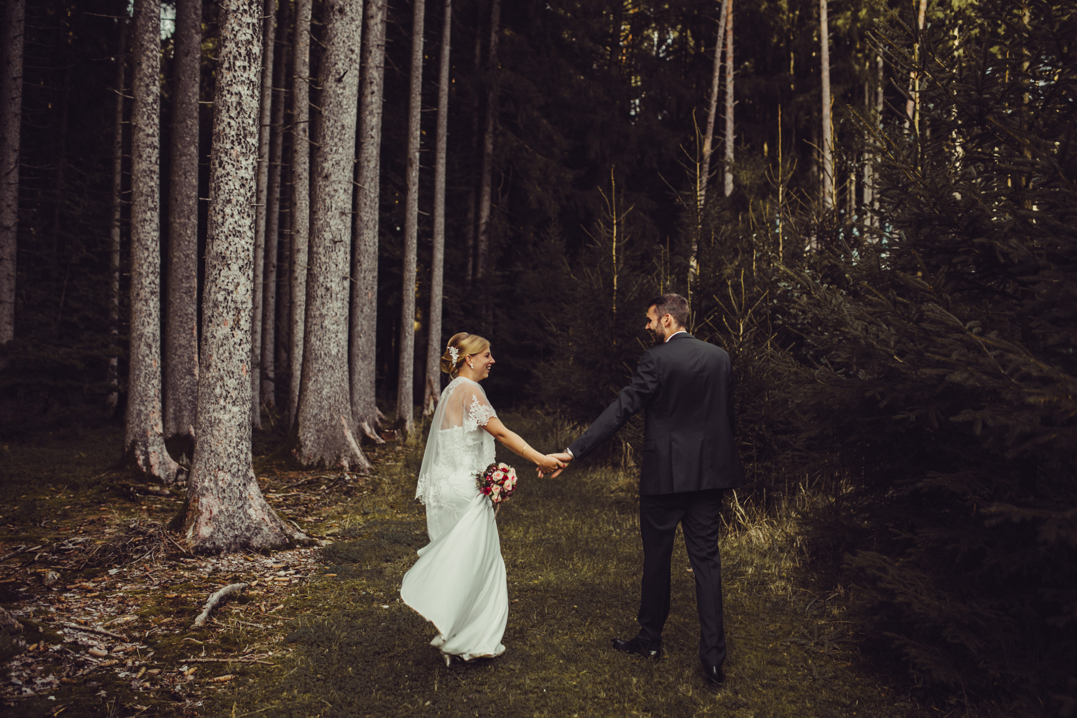 Kein Bühnenbild der größten Oper dieser Welt könnte schöner sein als dass eines Brautpaares, welches im immergrünen Wald spazieren geht.