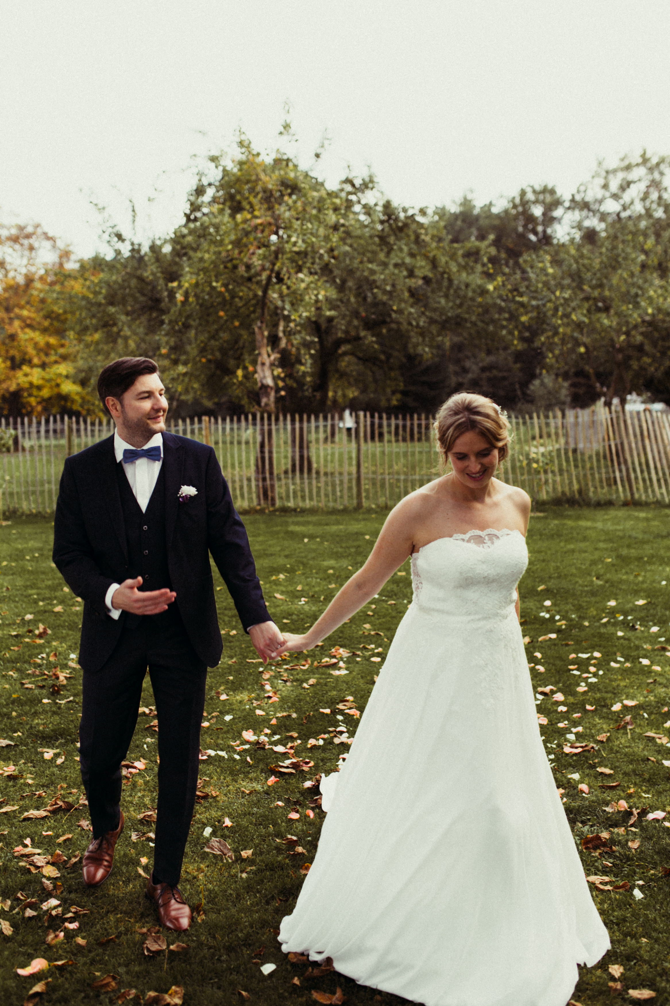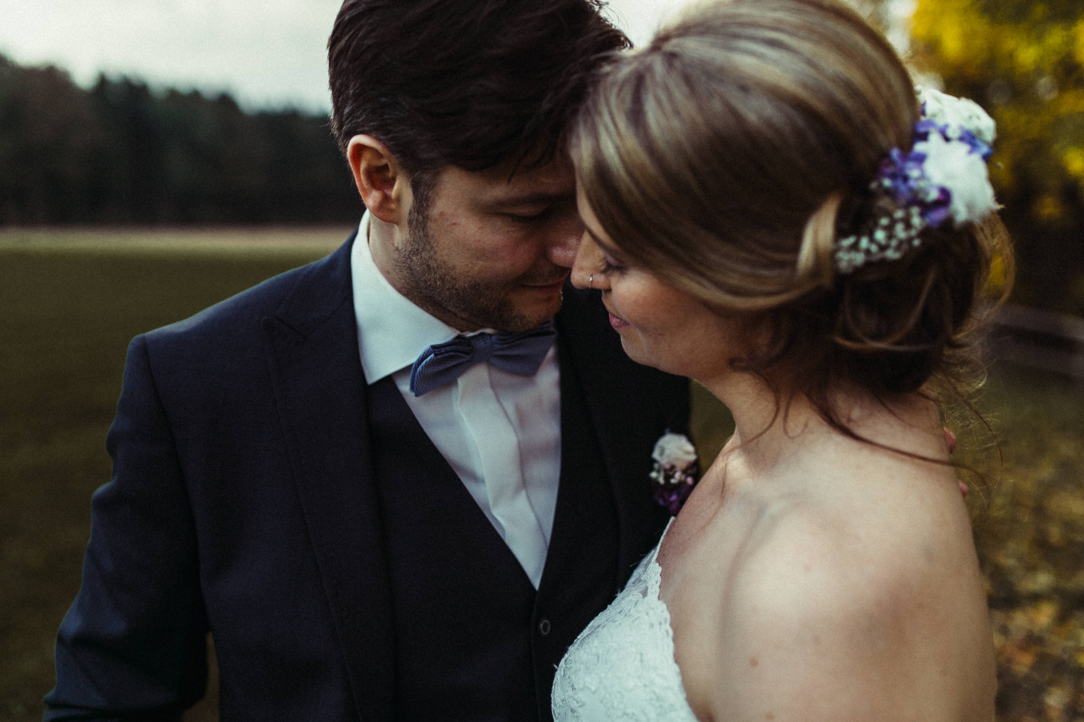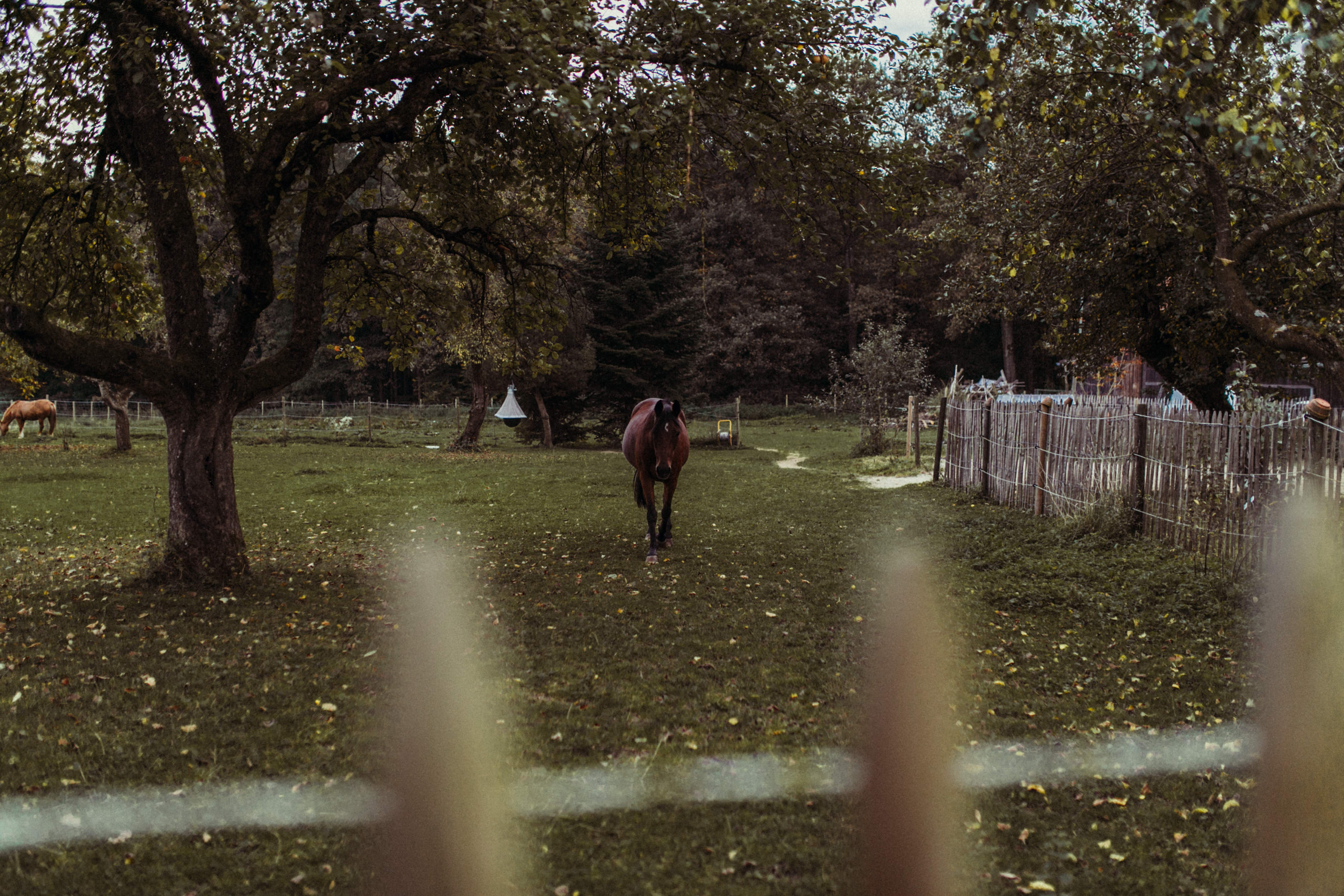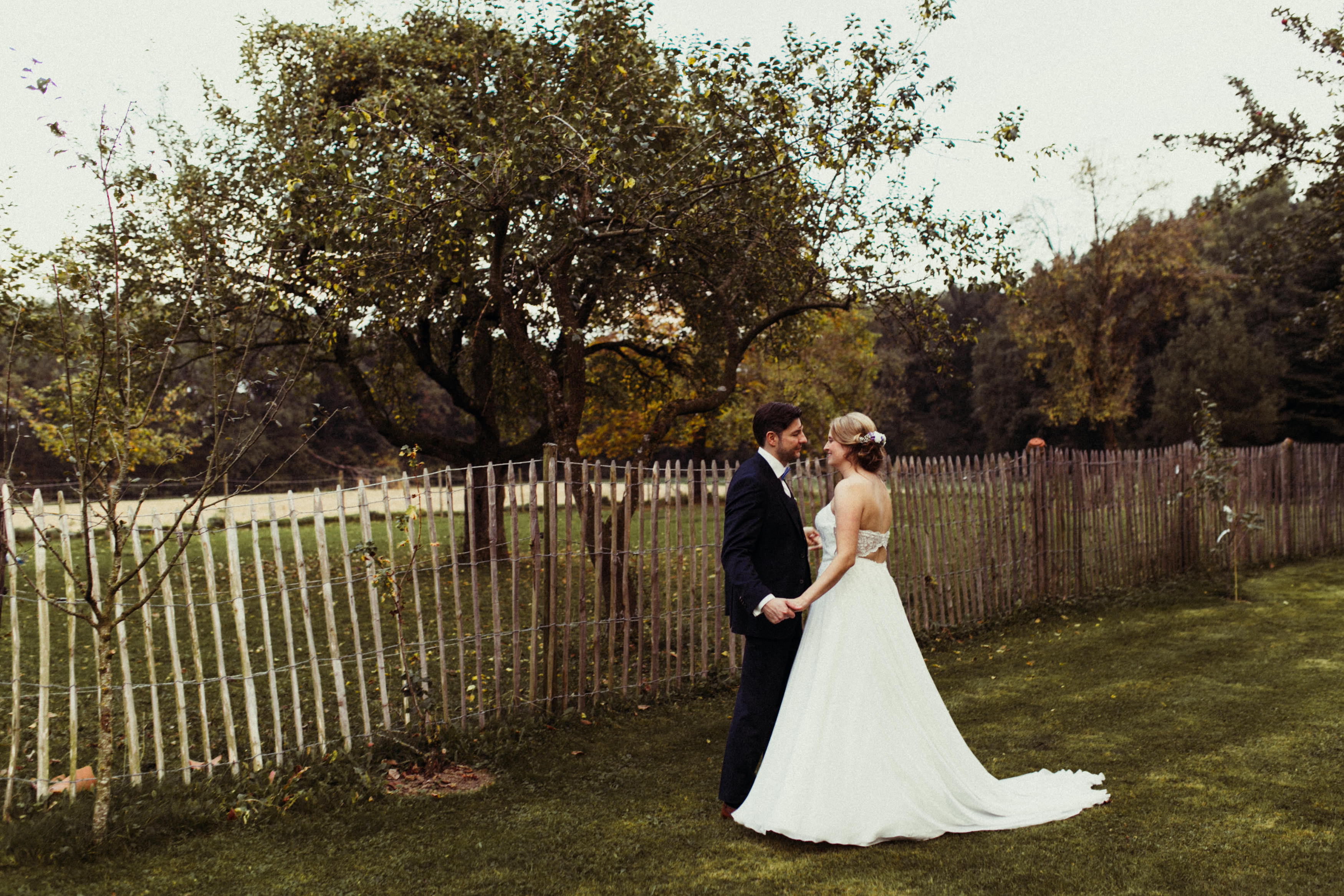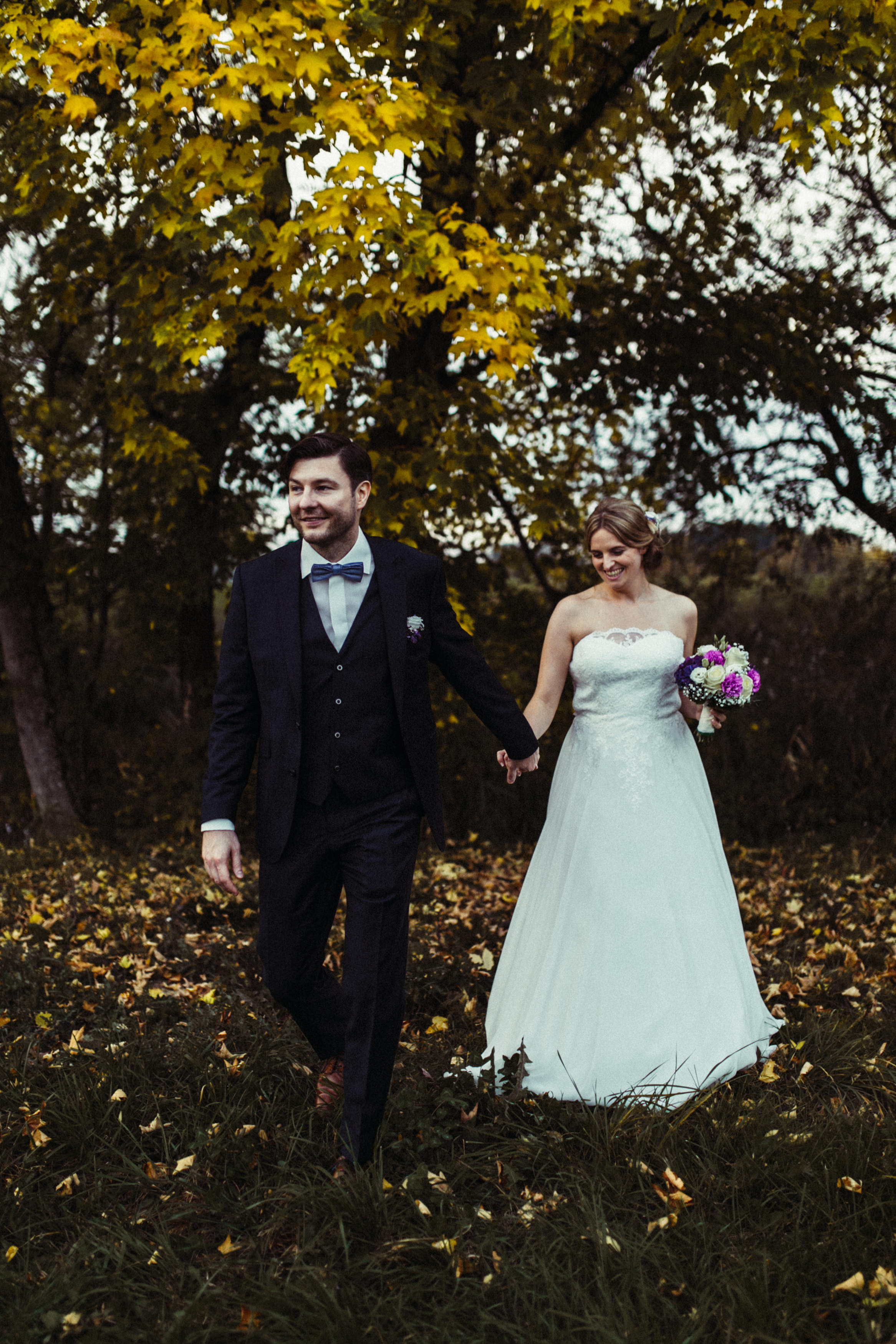 ihr beide habt euch eine zauberhafte Location für eure noch zauberhaftere Trauung ausgesucht. Ich bin mir total sicher dass all die schönen Menschen die mit euch feierten, sich so sehr für euch freuten und diese tolle Kulisse mit jedem Atemzug eingesogen haben, damit es als Erinnerung ewig in den Herzen weilen kann. Die alte Kastanie, die herunterfallenden, bunten Blätter, das versteckte Licht zwischen den Bäumen, zwei verliebte Pferde auf der Koppel und ihr mitten drin unter freiem Himmel. Wie schön die Welt doch ist, nicht wahr? So schön und besonders und immer wieder zauberhaft. Ich wünsche euch, dass ihr das Zauberhafte jeden Tag in eurer Leben und eure Beziehung mit einfließen lasst. Dass ihr die Einladungen erkennen könnt und sie annehmt, in Gesprächen, im Zuhören, in einem duftenden Blumenfeld oder der Musik eines Quells an dem ihr vorbeigeht. All diese Dinge sind so wertvoll für jeden Tag und knüpfen ananeinandergereiht das Band des Lebens, des Glücks und der Wertschätzung. So wie auch das Band über welches eure Ringe durch die Hände eurer Liebsten gleiten durften, so soll auch eure Liebe jeden Tag mit den Geschenken eures Lebens wachsen. Das Leben ist so wunderschön wie ihr es seid, zueinander und miteinander.