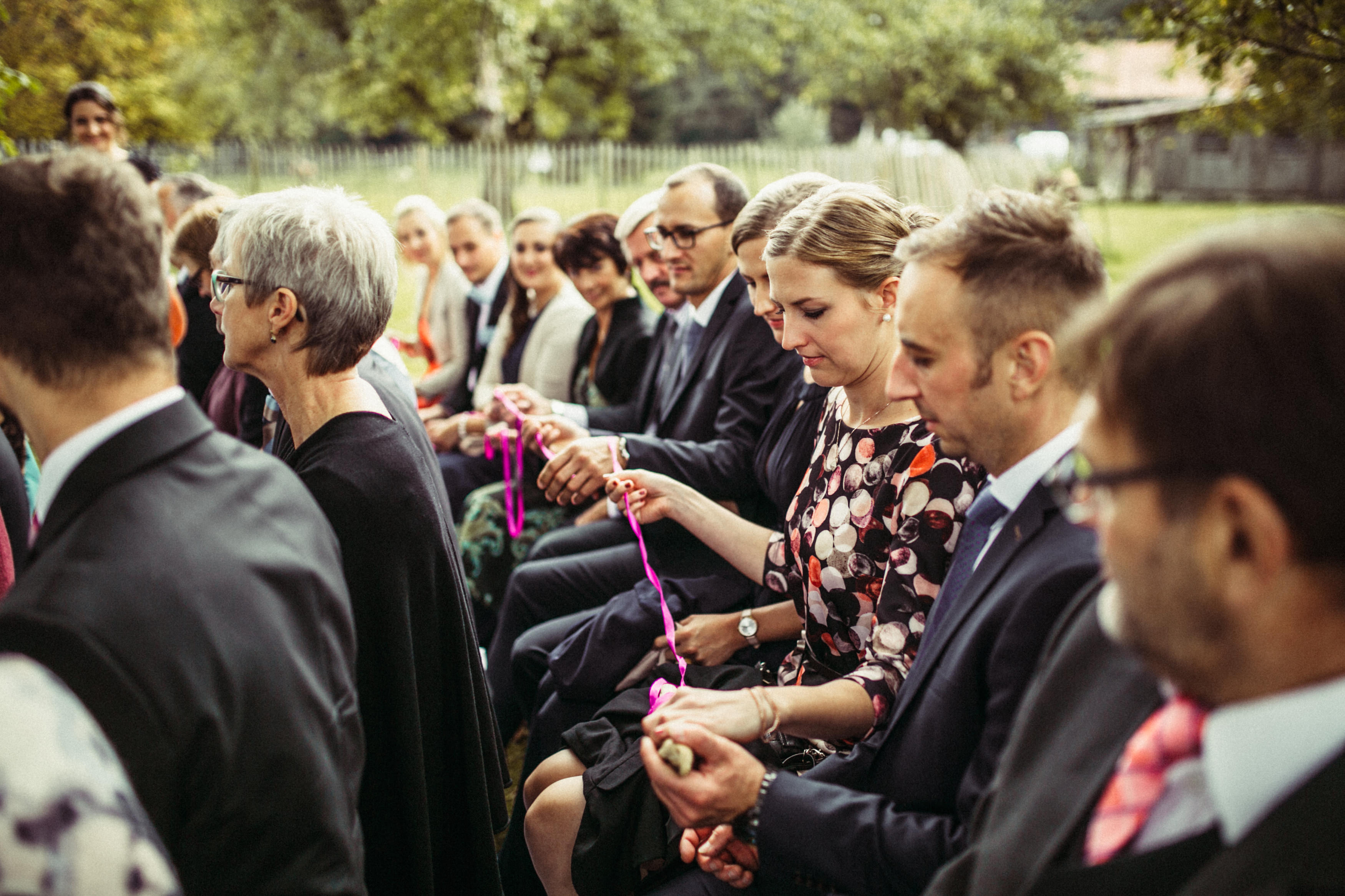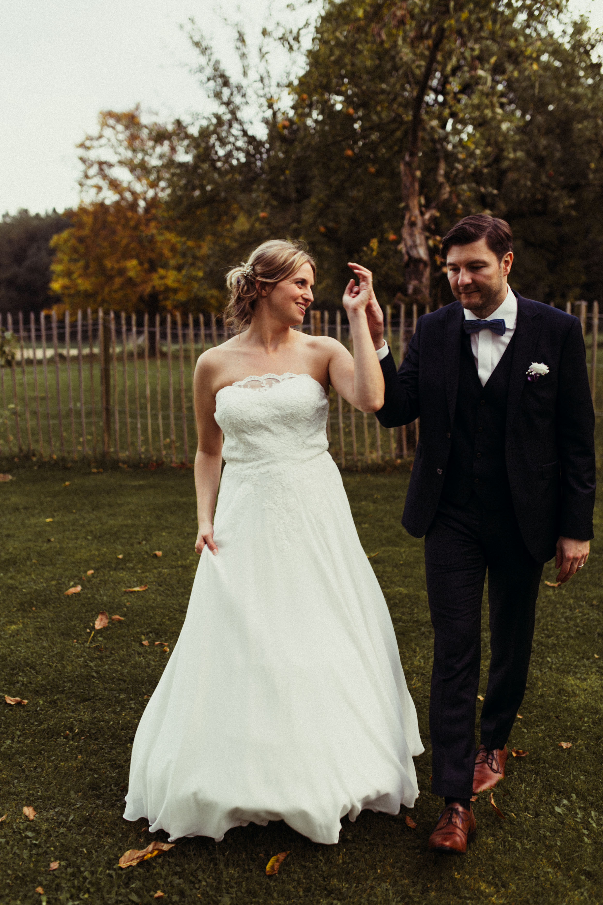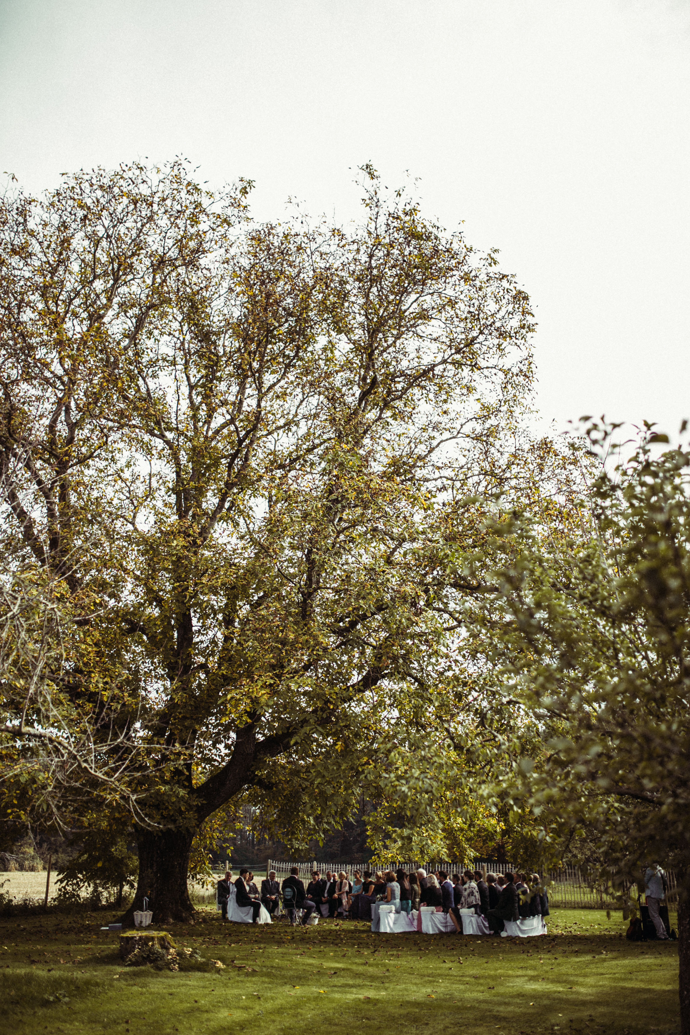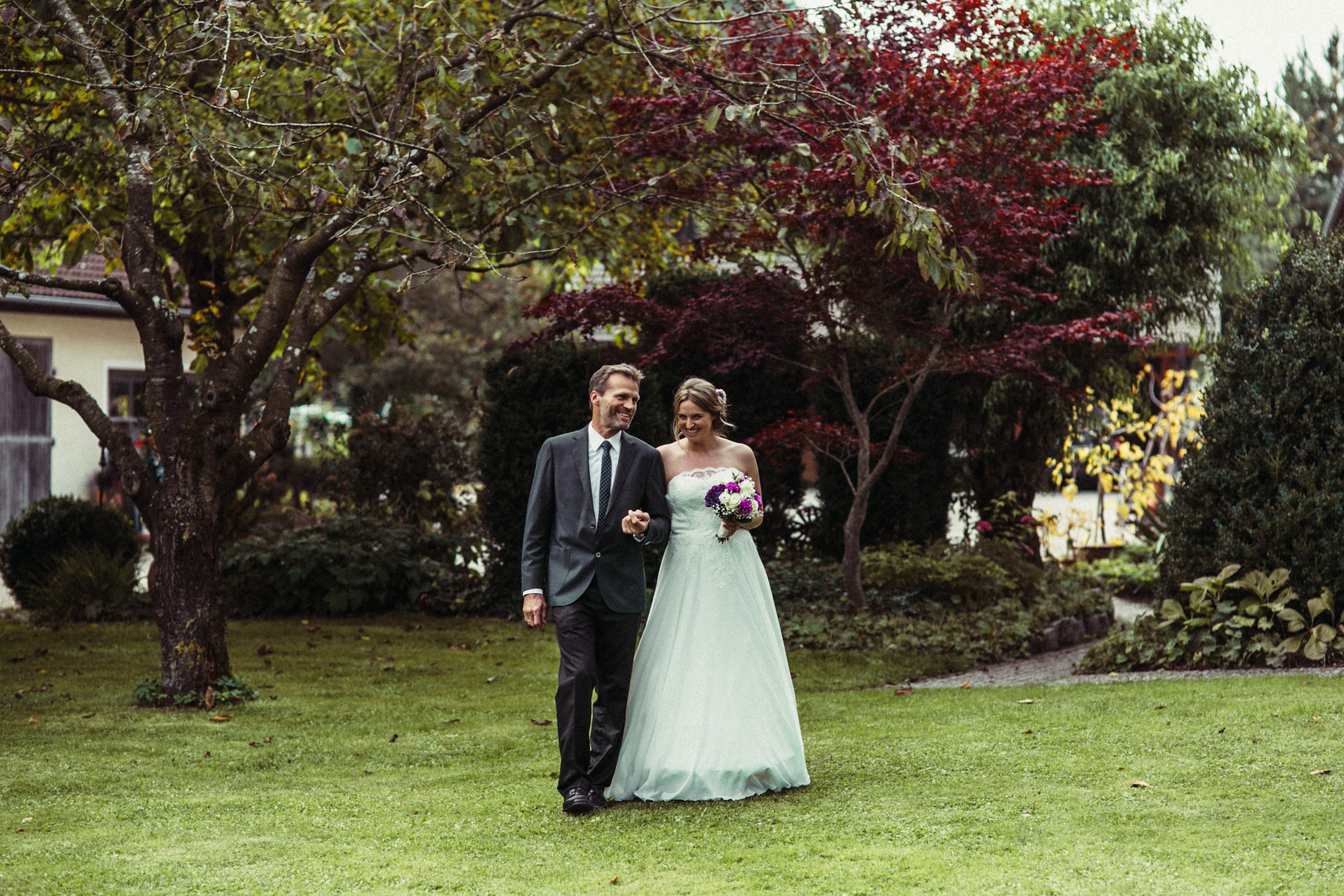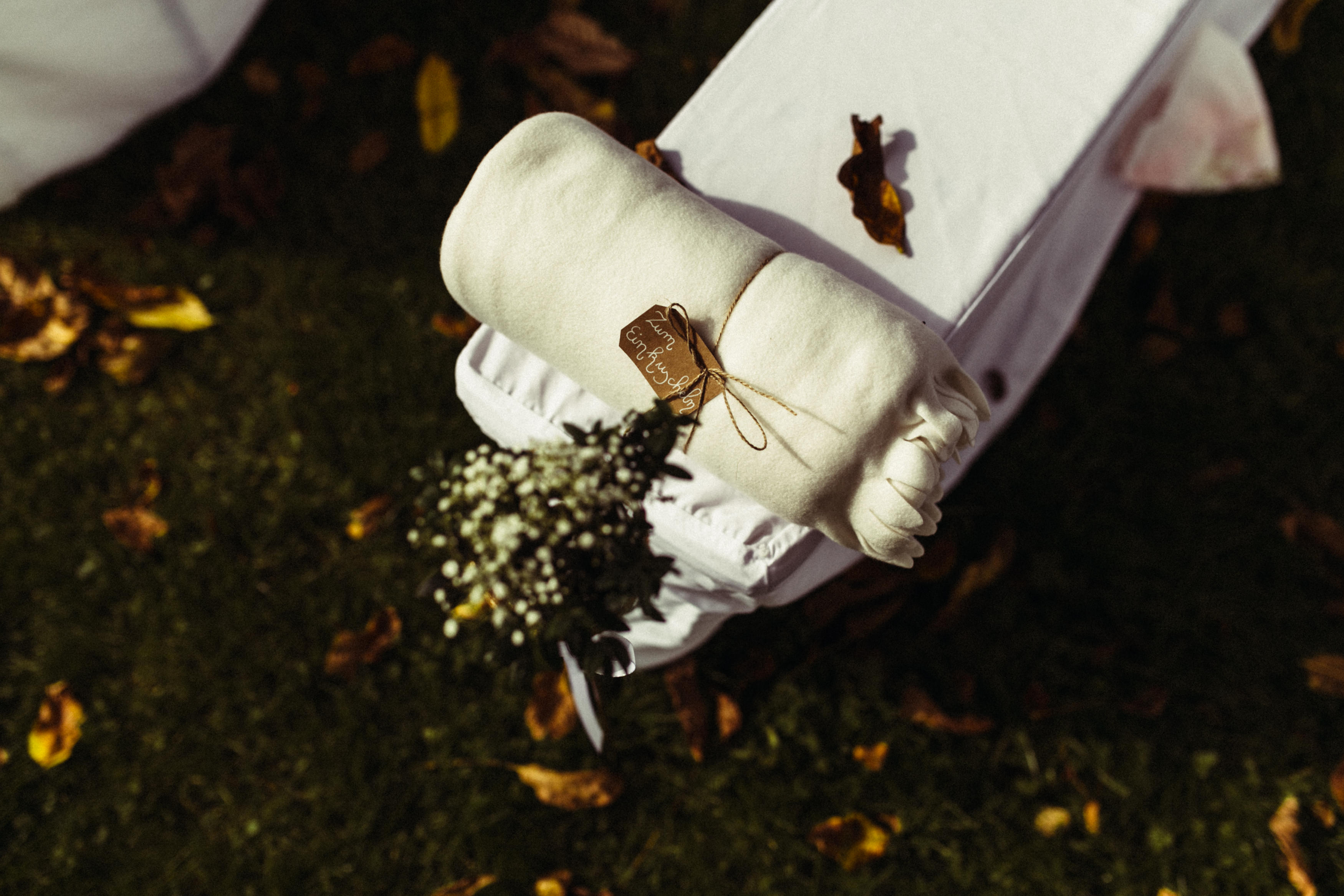 ihr beide habt euch eine zauberhafte Location für eure noch zauberhaftere Trauung ausgesucht. Ich bin mir total sicher dass all die schönen Menschen die mit euch feierten, sich so sehr für euch freuten und diese tolle Kulisse mit jedem Atemzug eingesogen haben, damit es als Erinnerung ewig in den Herzen weilen kann. Die alte Kastanie, die herunterfallenden, bunten Blätter, das versteckte Licht zwischen den Bäumen, zwei verliebte Pferde auf der Koppel und ihr mitten drin unter freiem Himmel. Wie schön die Welt doch ist, nicht wahr? So schön und besonders und immer wieder zauberhaft. Ich wünsche euch, dass ihr das Zauberhafte jeden Tag in eurer Leben und eure Beziehung mit einfließen lasst. Dass ihr die Einladungen erkennen könnt und sie annehmt, in Gesprächen, im Zuhören, in einem duftenden Blumenfeld oder der Musik eines Quells an dem ihr vorbeigeht. All diese Dinge sind so wertvoll für jeden Tag und knüpfen ananeinandergereiht das Band des Lebens, des Glücks und der Wertschätzung. So wie auch das Band über welches eure Ringe durch die Hände eurer Liebsten gleiten durften, so soll auch eure Liebe jeden Tag mit den Geschenken eures Lebens wachsen. Das Leben ist so wunderschön wie ihr es seid, zueinander und miteinander.