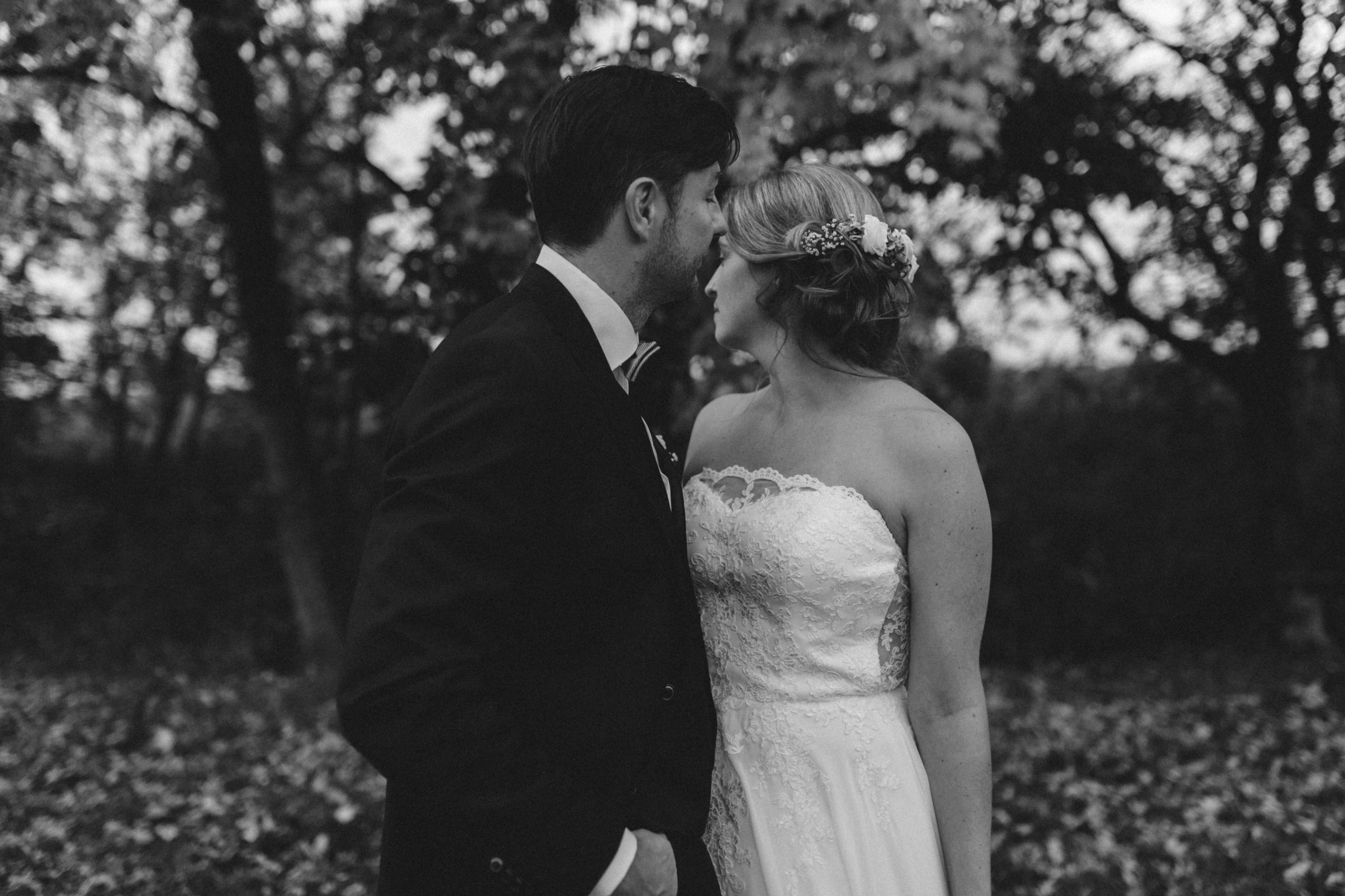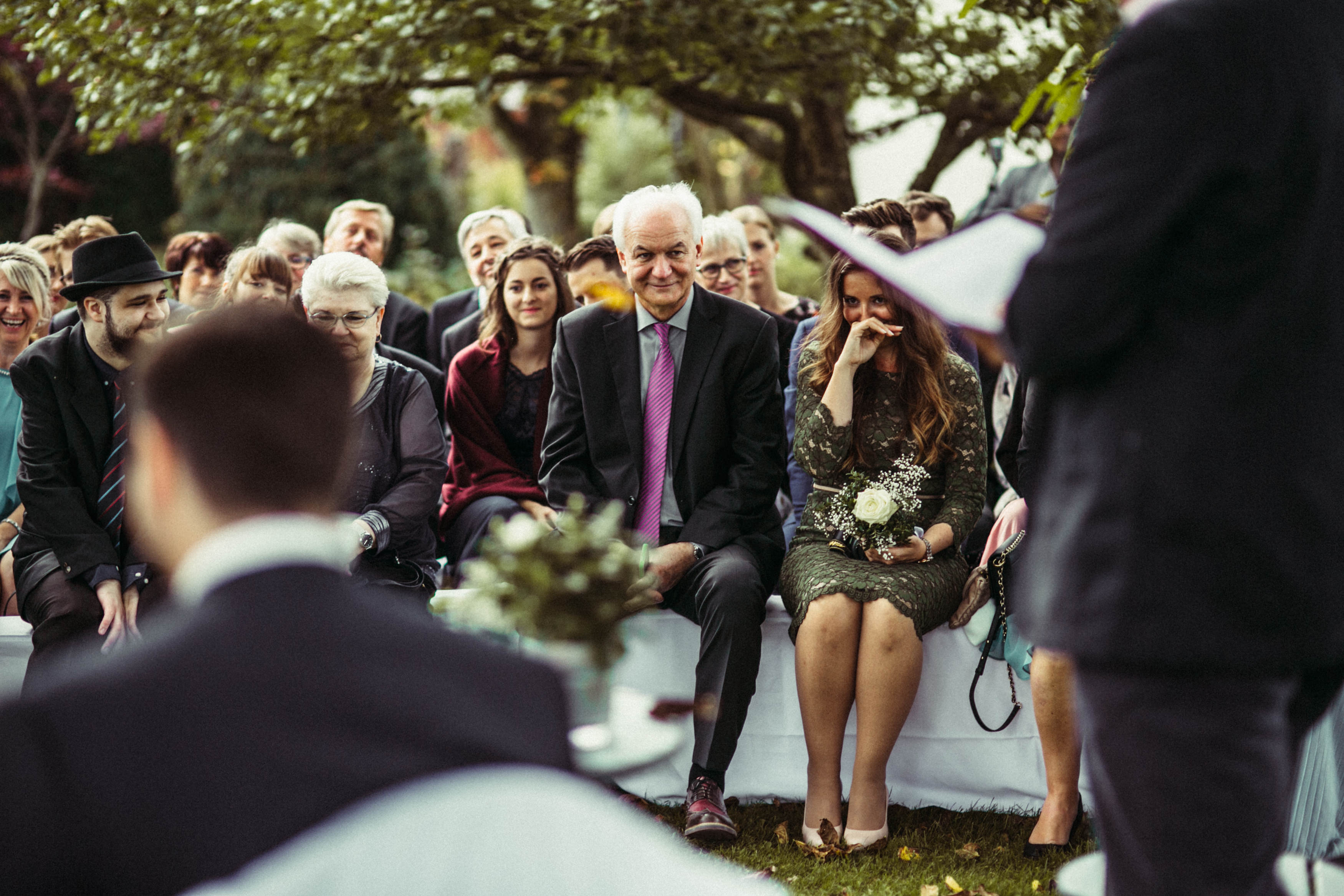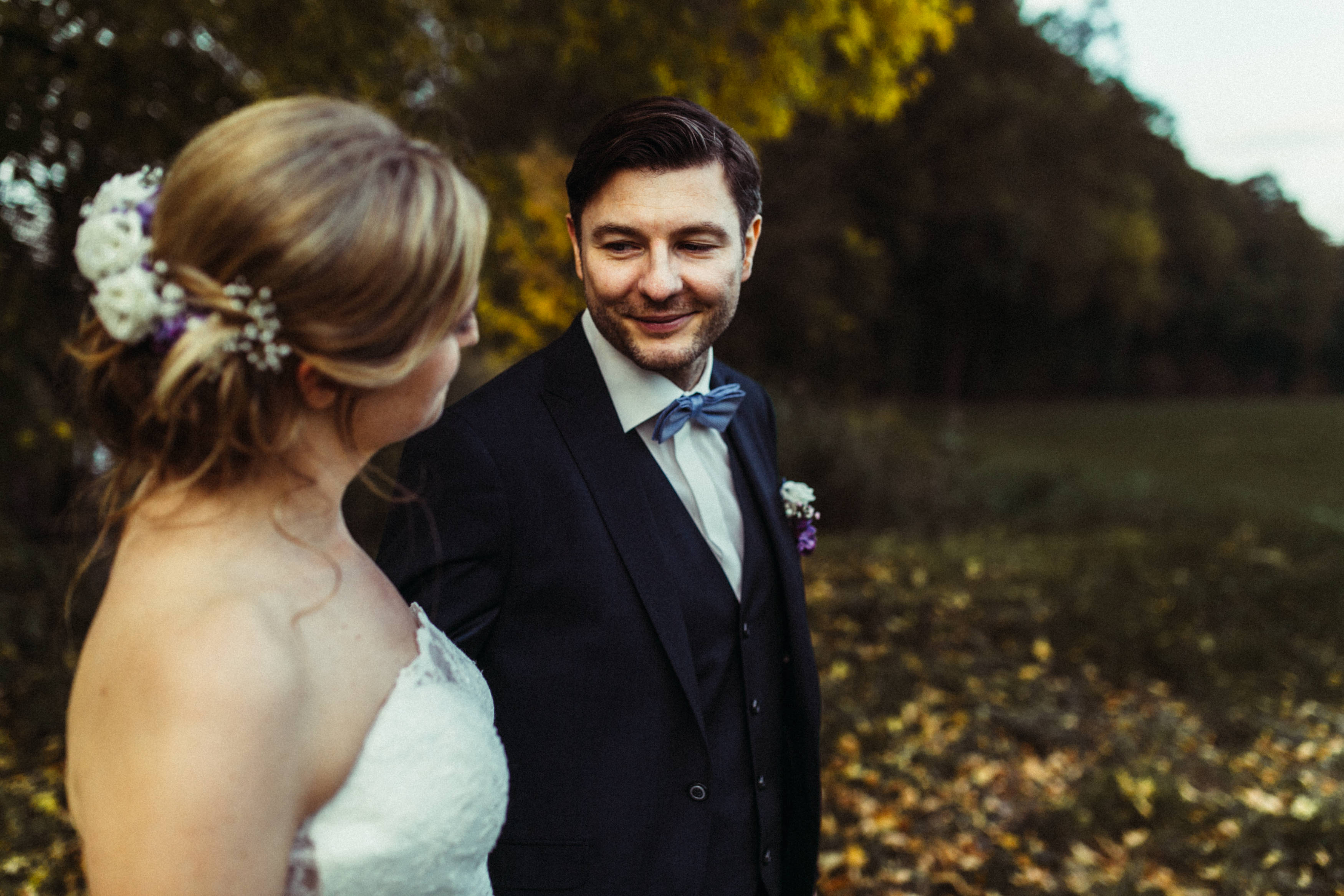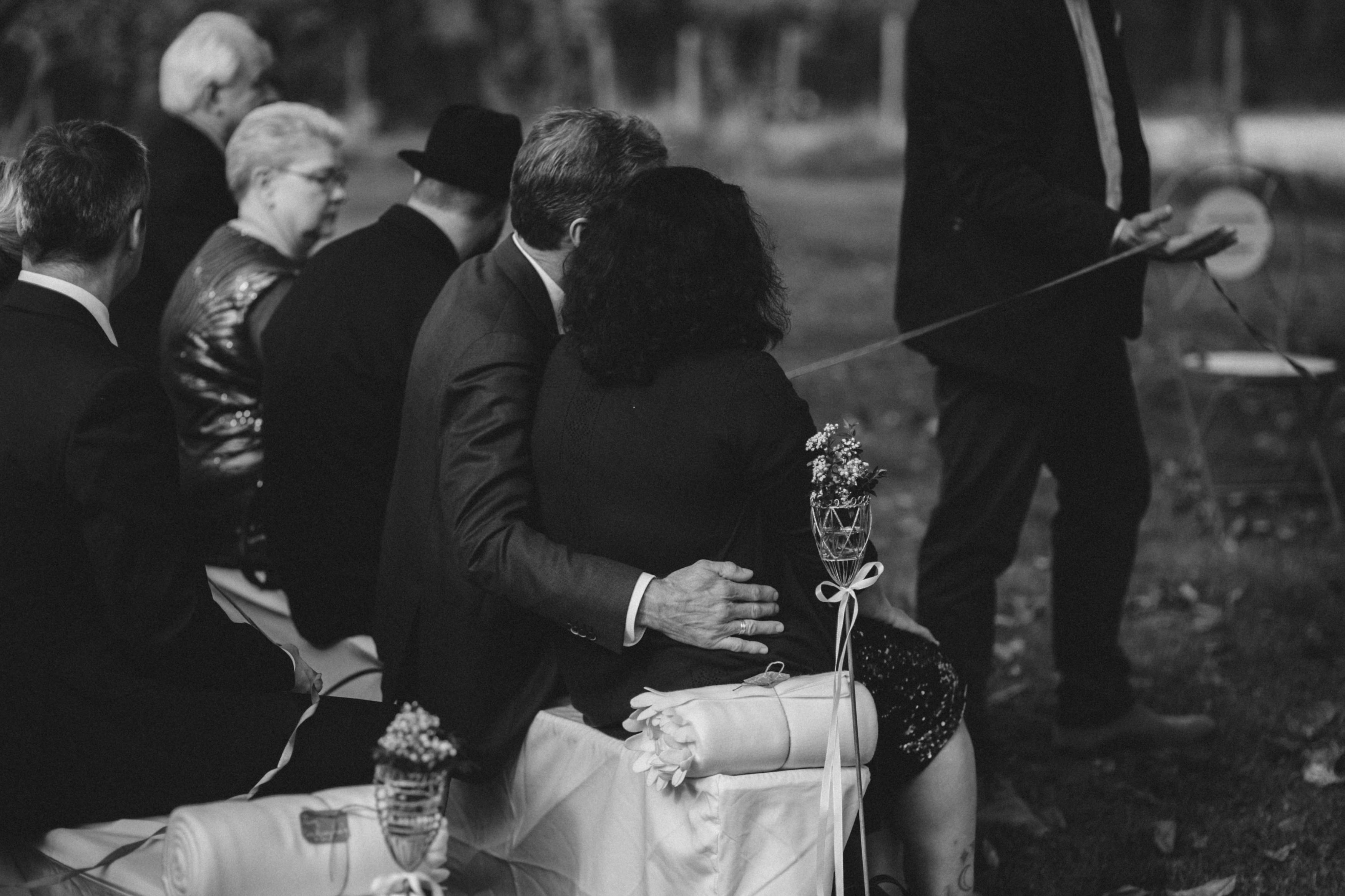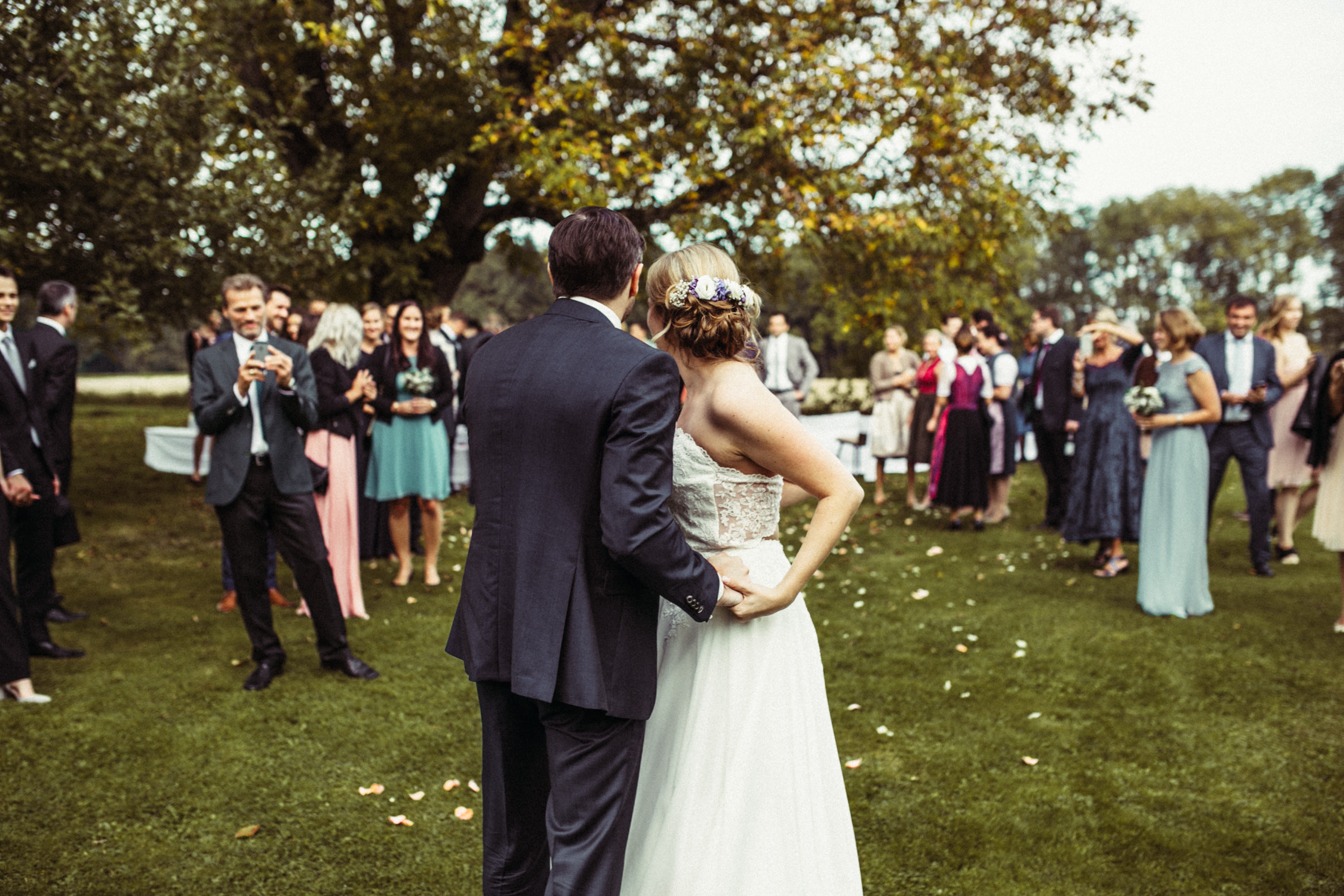 ihr beide habt euch eine zauberhafte Location für eure noch zauberhaftere Trauung ausgesucht. Ich bin mir total sicher dass all die schönen Menschen die mit euch feierten, sich so sehr für euch freuten und diese tolle Kulisse mit jedem Atemzug eingesogen haben, damit es als Erinnerung ewig in den Herzen weilen kann. Die alte Kastanie, die herunterfallenden, bunten Blätter, das versteckte Licht zwischen den Bäumen, zwei verliebte Pferde auf der Koppel und ihr mitten drin unter freiem Himmel. Wie schön die Welt doch ist, nicht wahr? So schön und besonders und immer wieder zauberhaft. Ich wünsche euch, dass ihr das Zauberhafte jeden Tag in eurer Leben und eure Beziehung mit einfließen lasst. Dass ihr die Einladungen erkennen könnt und sie annehmt, in Gesprächen, im Zuhören, in einem duftenden Blumenfeld oder der Musik eines Quells an dem ihr vorbeigeht. All diese Dinge sind so wertvoll für jeden Tag und knüpfen ananeinandergereiht das Band des Lebens, des Glücks und der Wertschätzung. So wie auch das Band über welches eure Ringe durch die Hände eurer Liebsten gleiten durften, so soll auch eure Liebe jeden Tag mit den Geschenken eures Lebens wachsen. Das Leben ist so wunderschön wie ihr es seid, zueinander und miteinander.
