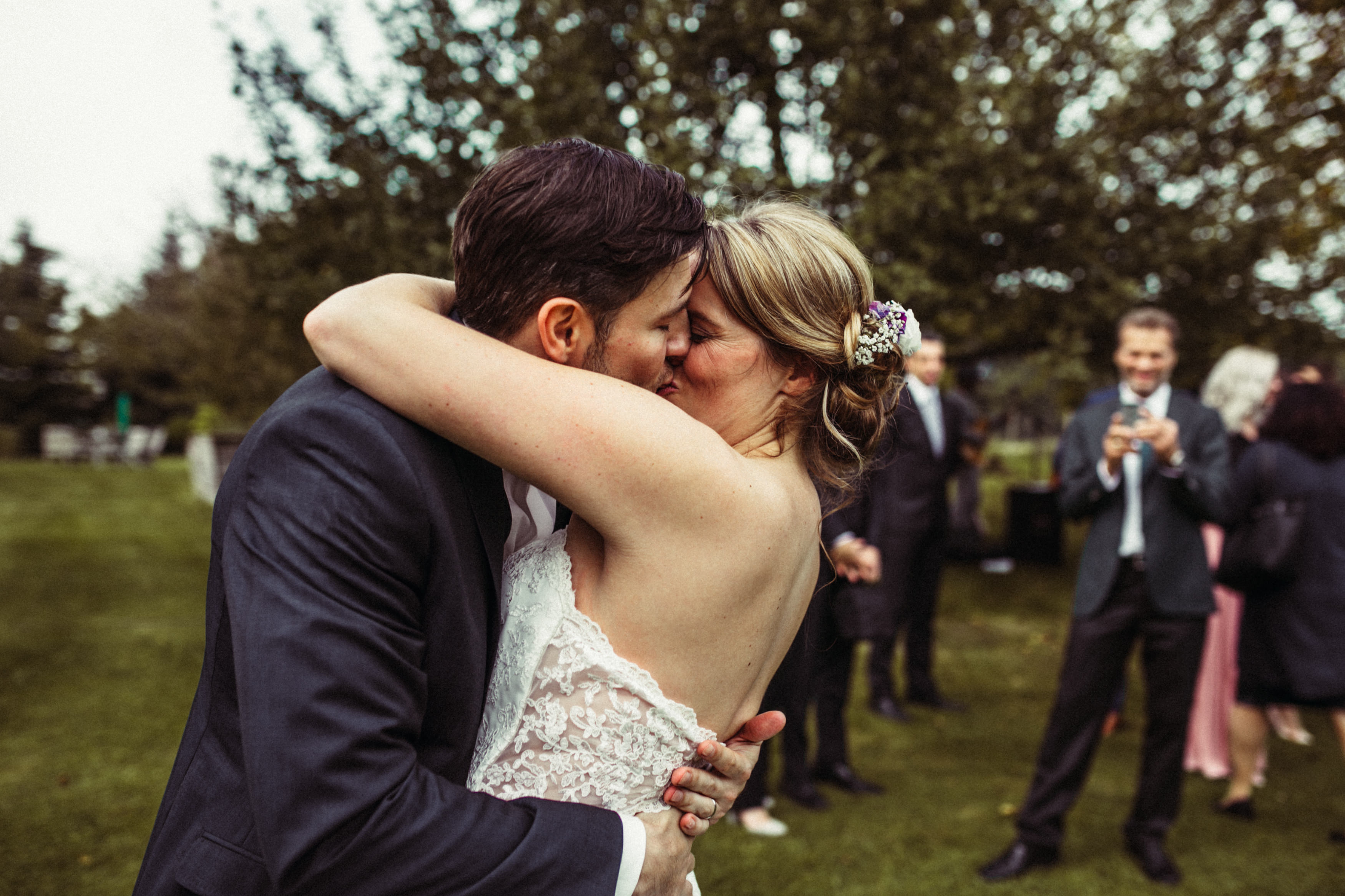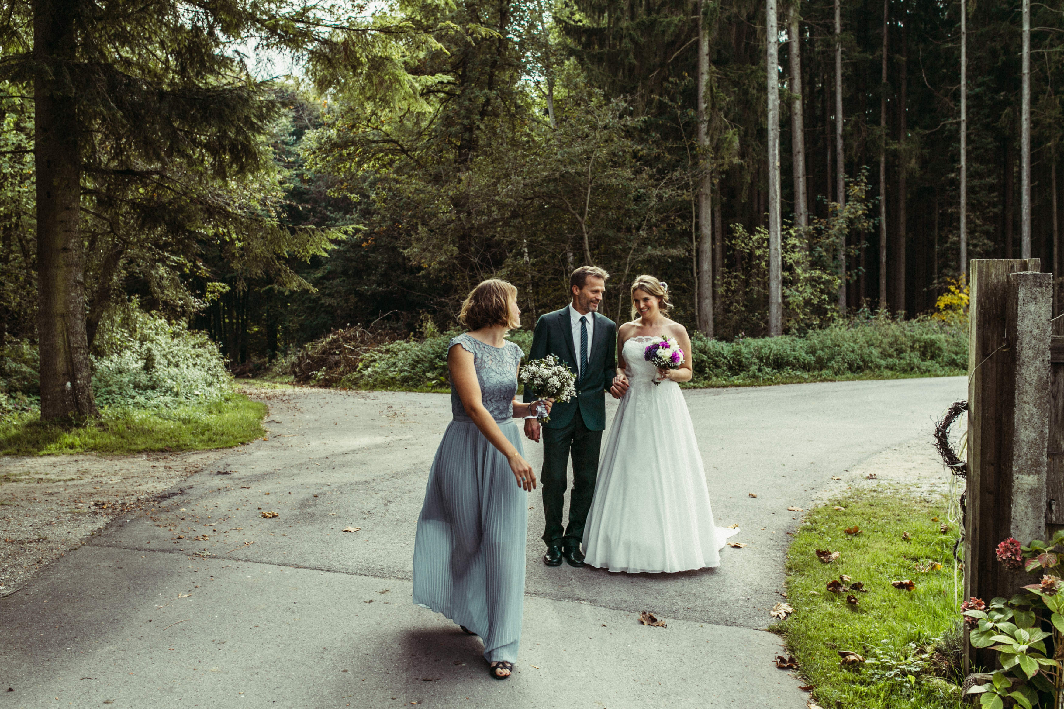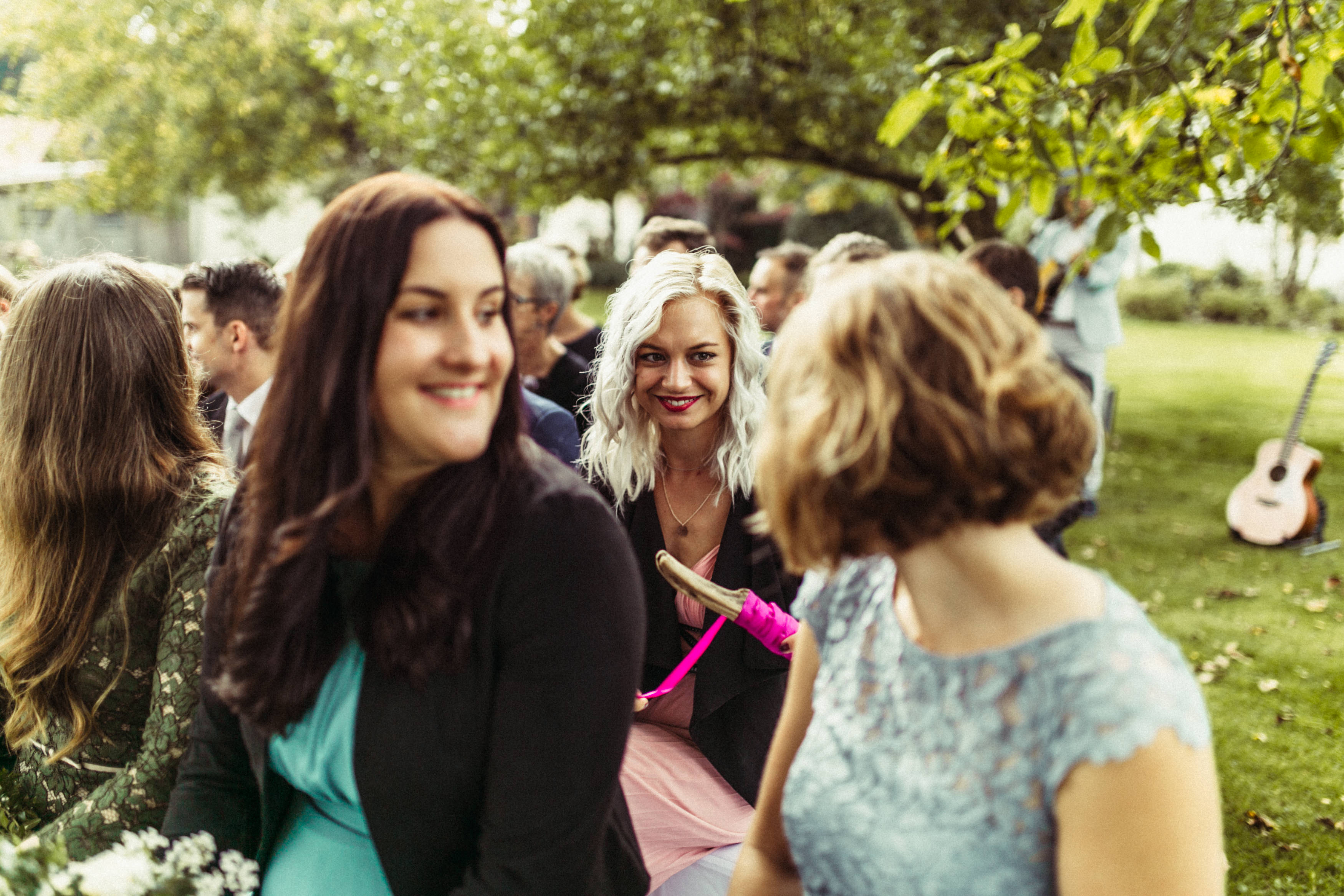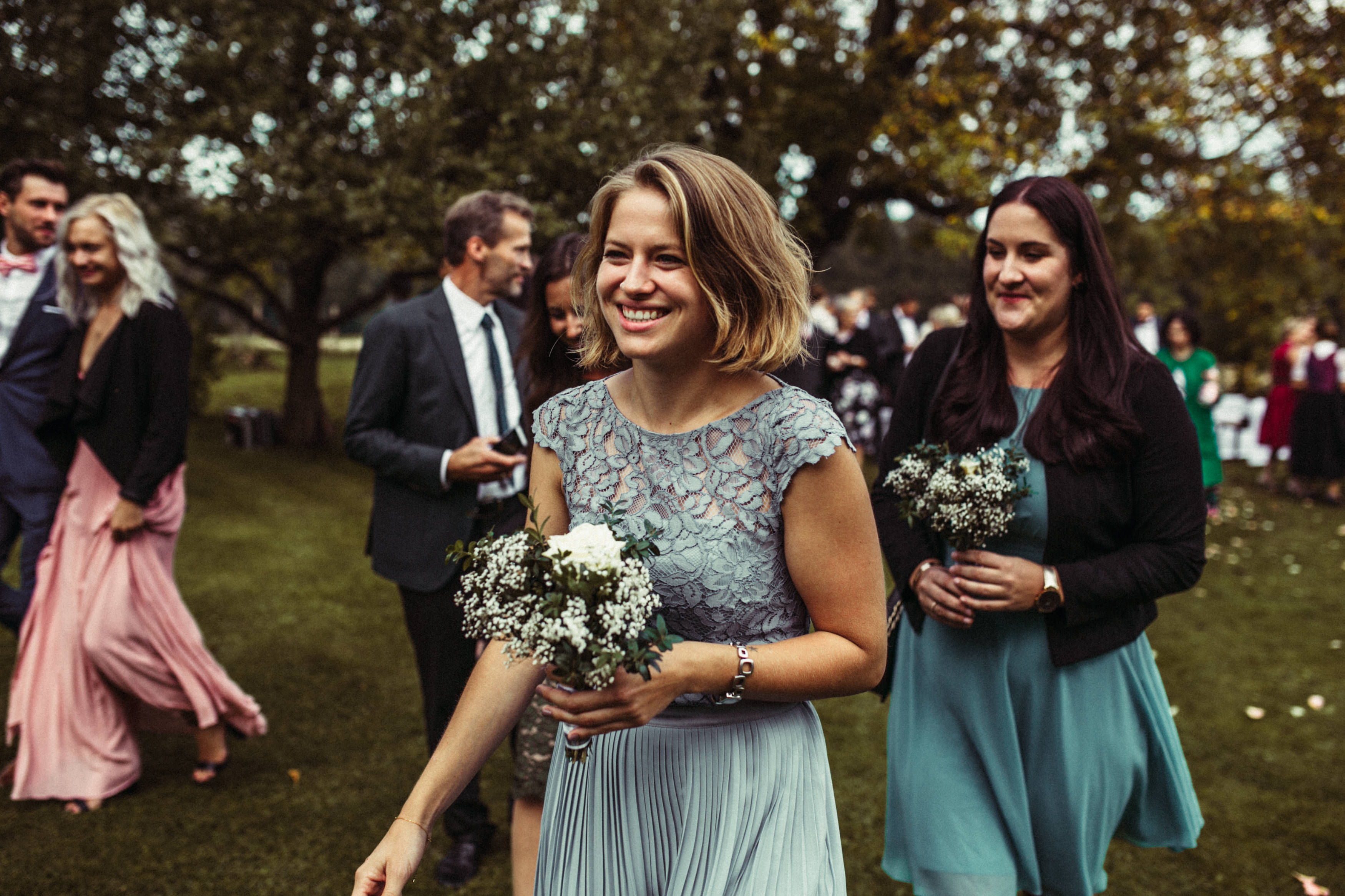 ihr beide habt euch eine zauberhafte Location für eure noch zauberhaftere Trauung ausgesucht. Ich bin mir total sicher dass all die schönen Menschen die mit euch feierten, sich so sehr für euch freuten und diese tolle Kulisse mit jedem Atemzug eingesogen haben, damit es als Erinnerung ewig in den Herzen weilen kann. Die alte Kastanie, die herunterfallenden, bunten Blätter, das versteckte Licht zwischen den Bäumen, zwei verliebte Pferde auf der Koppel und ihr mitten drin unter freiem Himmel. Wie schön die Welt doch ist, nicht wahr? So schön und besonders und immer wieder zauberhaft. Ich wünsche euch, dass ihr das Zauberhafte jeden Tag in eurer Leben und eure Beziehung mit einfließen lasst. Dass ihr die Einladungen erkennen könnt und sie annehmt, in Gesprächen, im Zuhören, in einem duftenden Blumenfeld oder der Musik eines Quells an dem ihr vorbeigeht. All diese Dinge sind so wertvoll für jeden Tag und knüpfen ananeinandergereiht das Band des Lebens, des Glücks und der Wertschätzung. So wie auch das Band über welches eure Ringe durch die Hände eurer Liebsten gleiten durften, so soll auch eure Liebe jeden Tag mit den Geschenken eures Lebens wachsen. Das Leben ist so wunderschön wie ihr es seid, zueinander und miteinander.