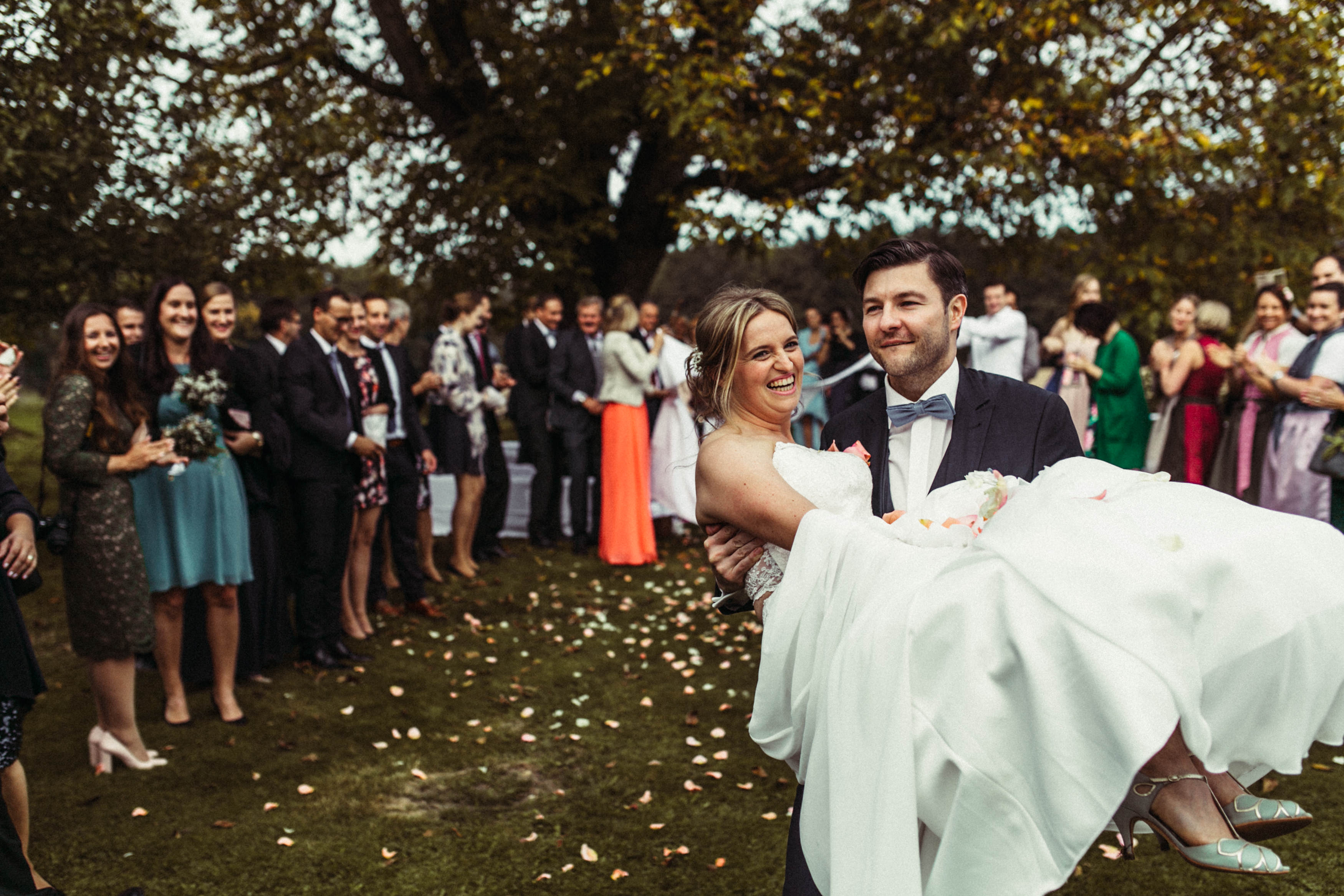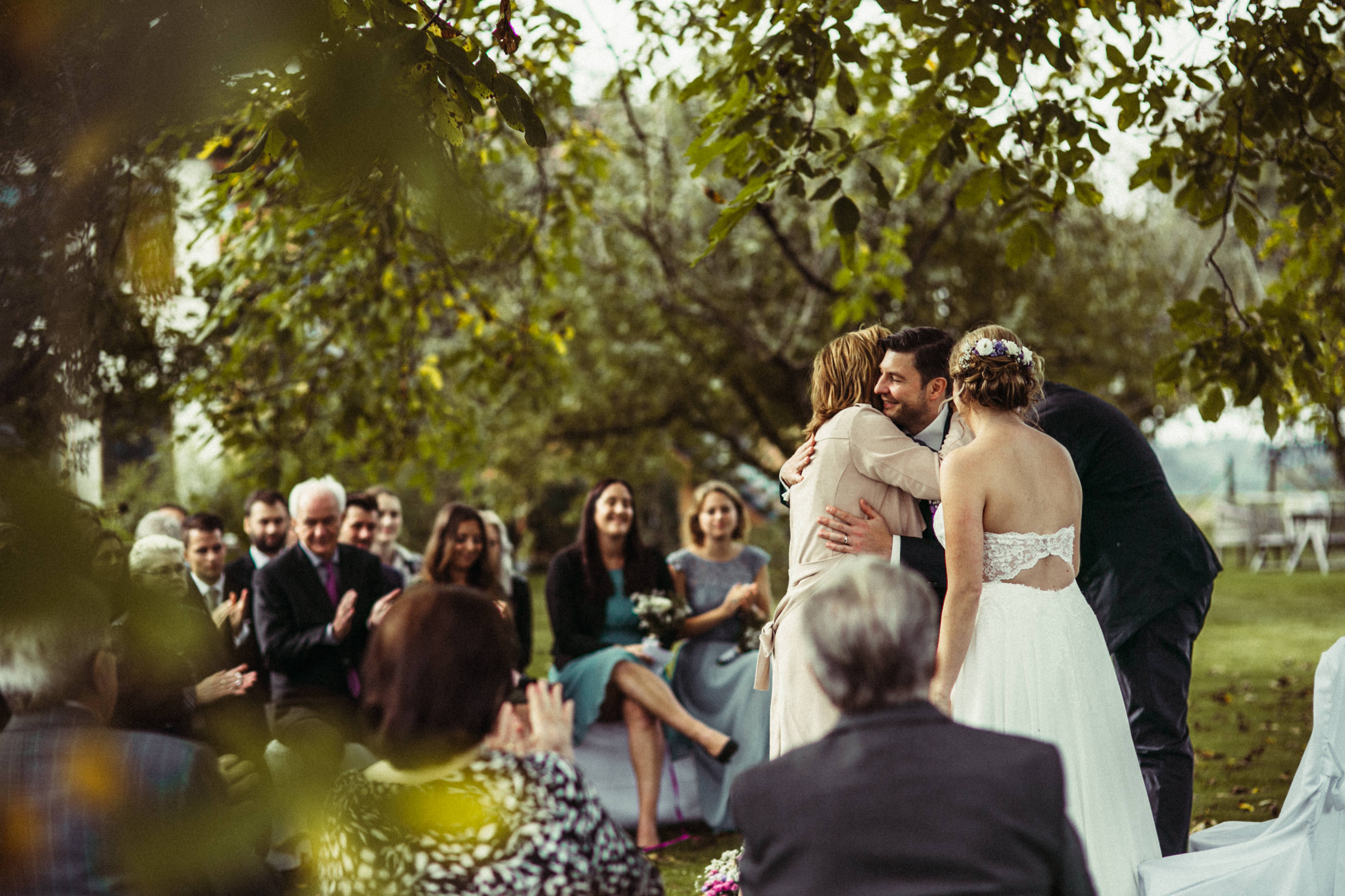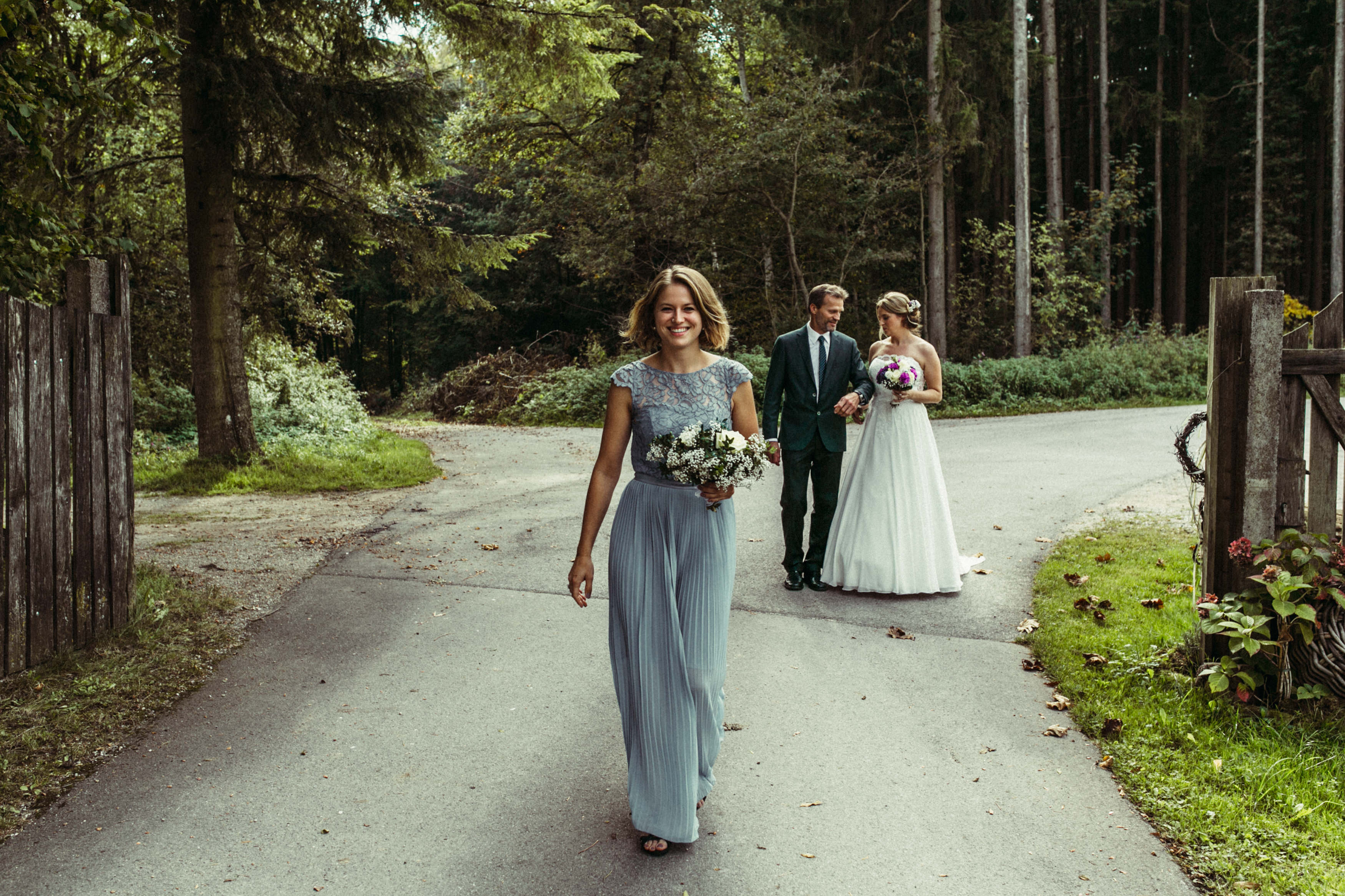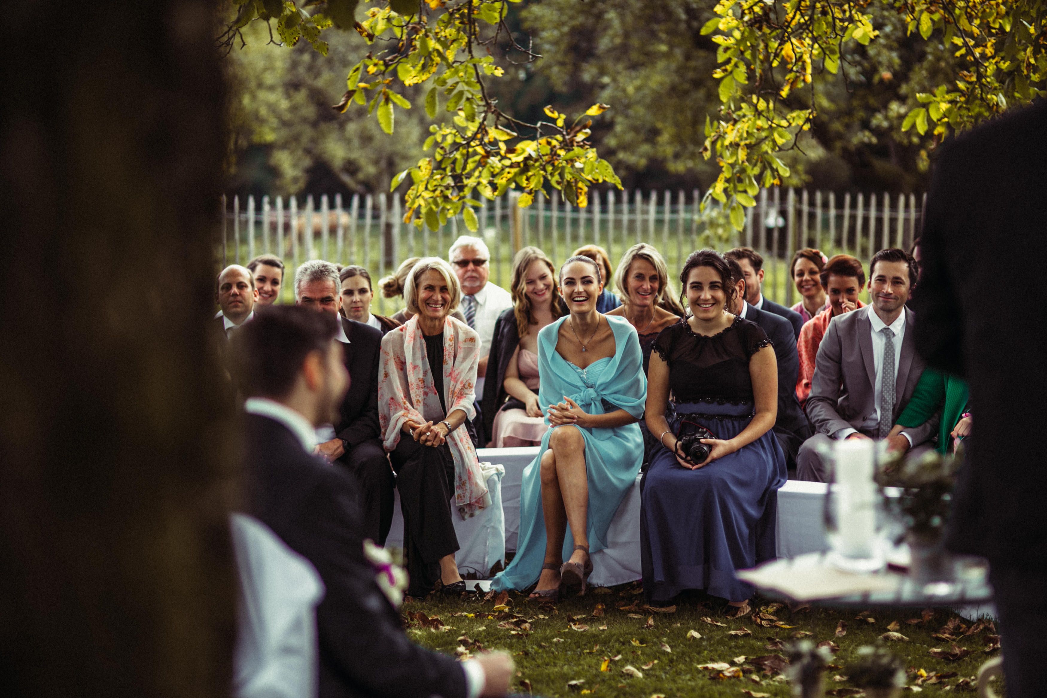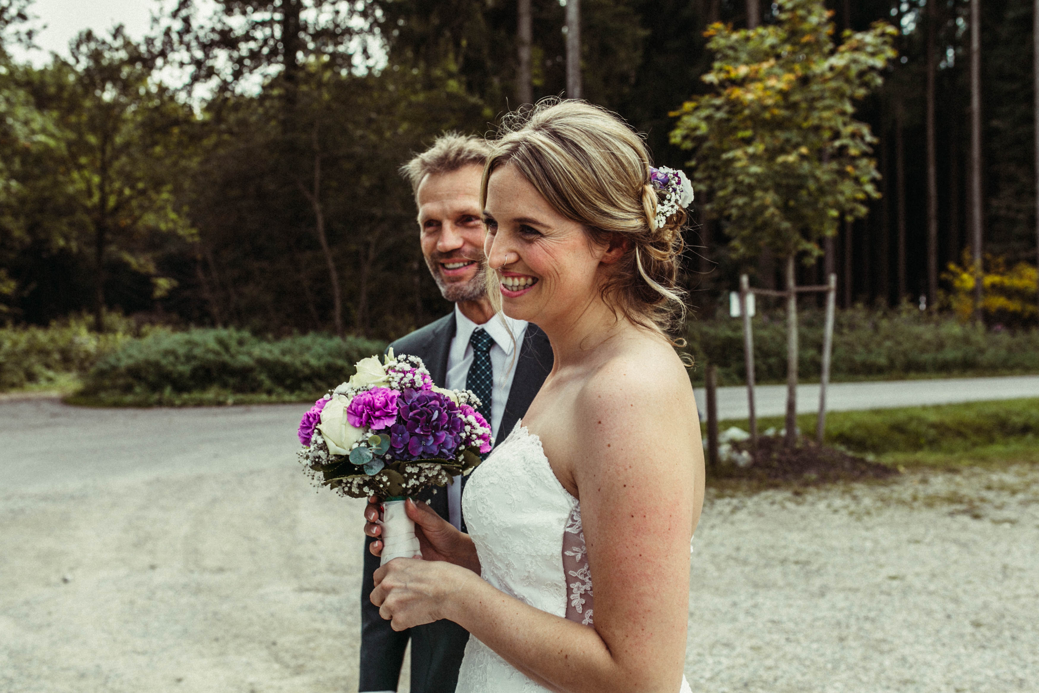 ihr beide habt euch eine zauberhafte Location für eure noch zauberhaftere Trauung ausgesucht. Ich bin mir total sicher dass all die schönen Menschen die mit euch feierten, sich so sehr für euch freuten und diese tolle Kulisse mit jedem Atemzug eingesogen haben, damit es als Erinnerung ewig in den Herzen weilen kann. Die alte Kastanie, die herunterfallenden, bunten Blätter, das versteckte Licht zwischen den Bäumen, zwei verliebte Pferde auf der Koppel und ihr mitten drin unter freiem Himmel. Wie schön die Welt doch ist, nicht wahr? So schön und besonders und immer wieder zauberhaft. Ich wünsche euch, dass ihr das Zauberhafte jeden Tag in eurer Leben und eure Beziehung mit einfließen lasst. Dass ihr die Einladungen erkennen könnt und sie annehmt, in Gesprächen, im Zuhören, in einem duftenden Blumenfeld oder der Musik eines Quells an dem ihr vorbeigeht. All diese Dinge sind so wertvoll für jeden Tag und knüpfen ananeinandergereiht das Band des Lebens, des Glücks und der Wertschätzung. So wie auch das Band über welches eure Ringe durch die Hände eurer Liebsten gleiten durften, so soll auch eure Liebe jeden Tag mit den Geschenken eures Lebens wachsen. Das Leben ist so wunderschön wie ihr es seid, zueinander und miteinander.