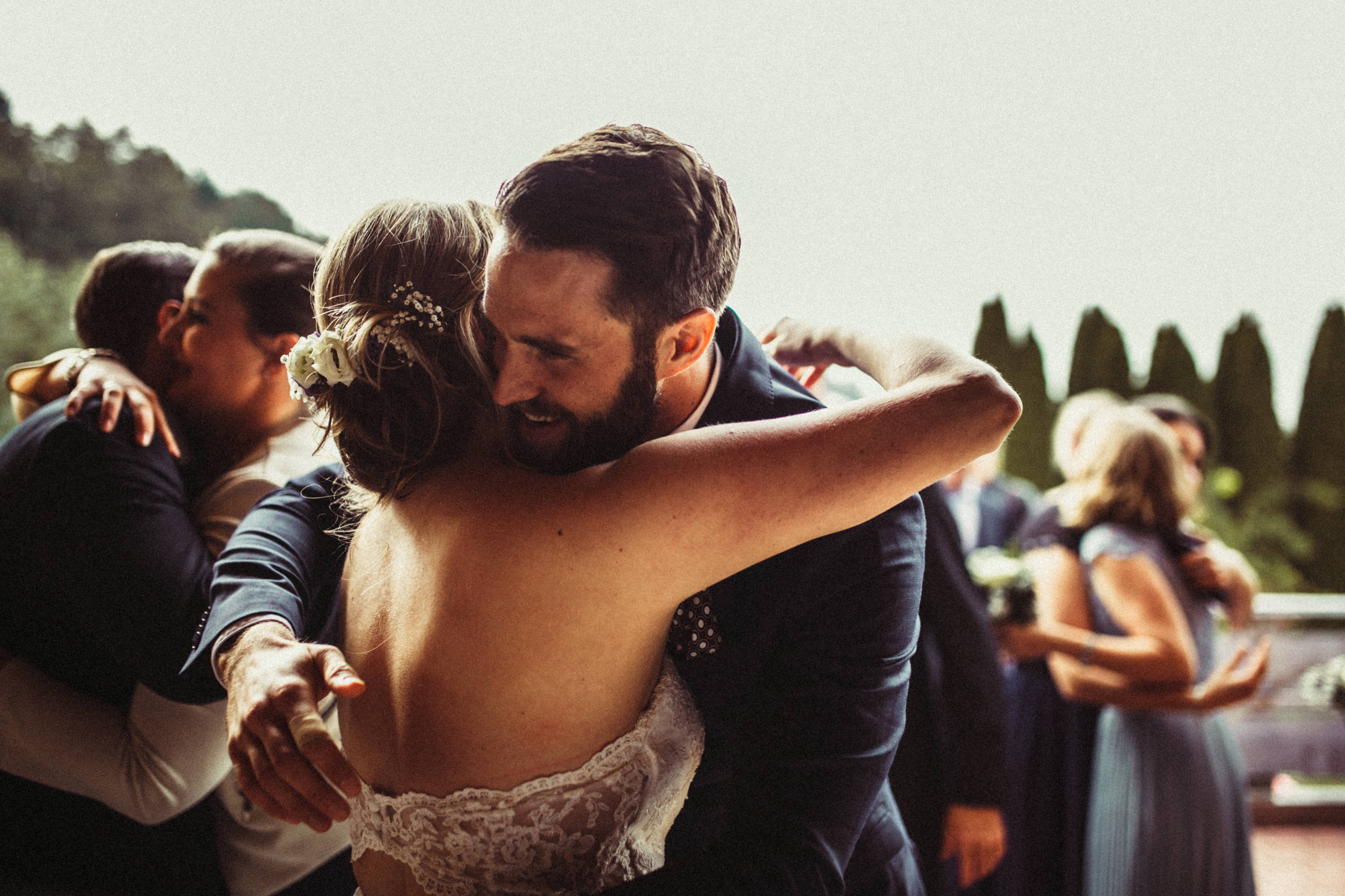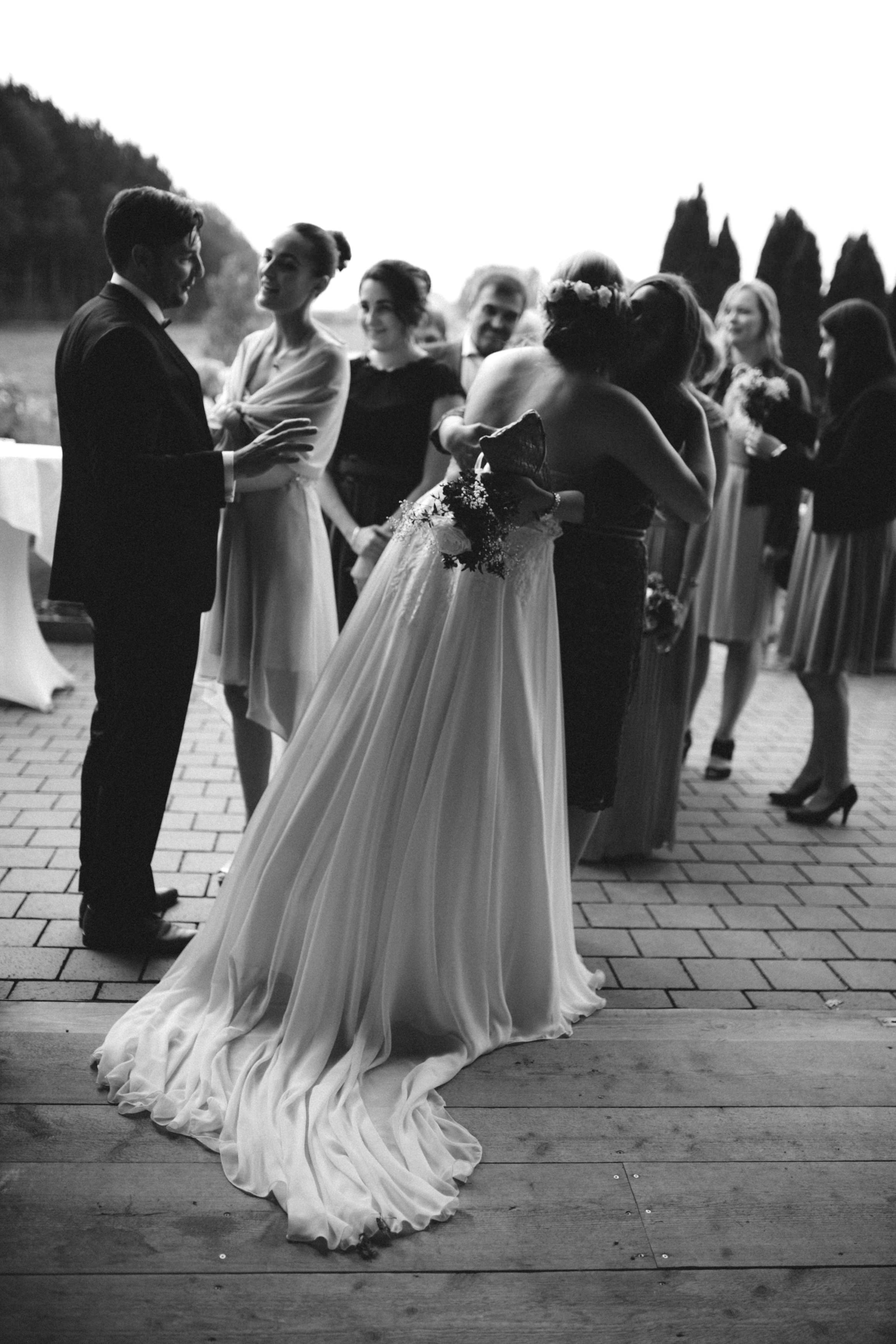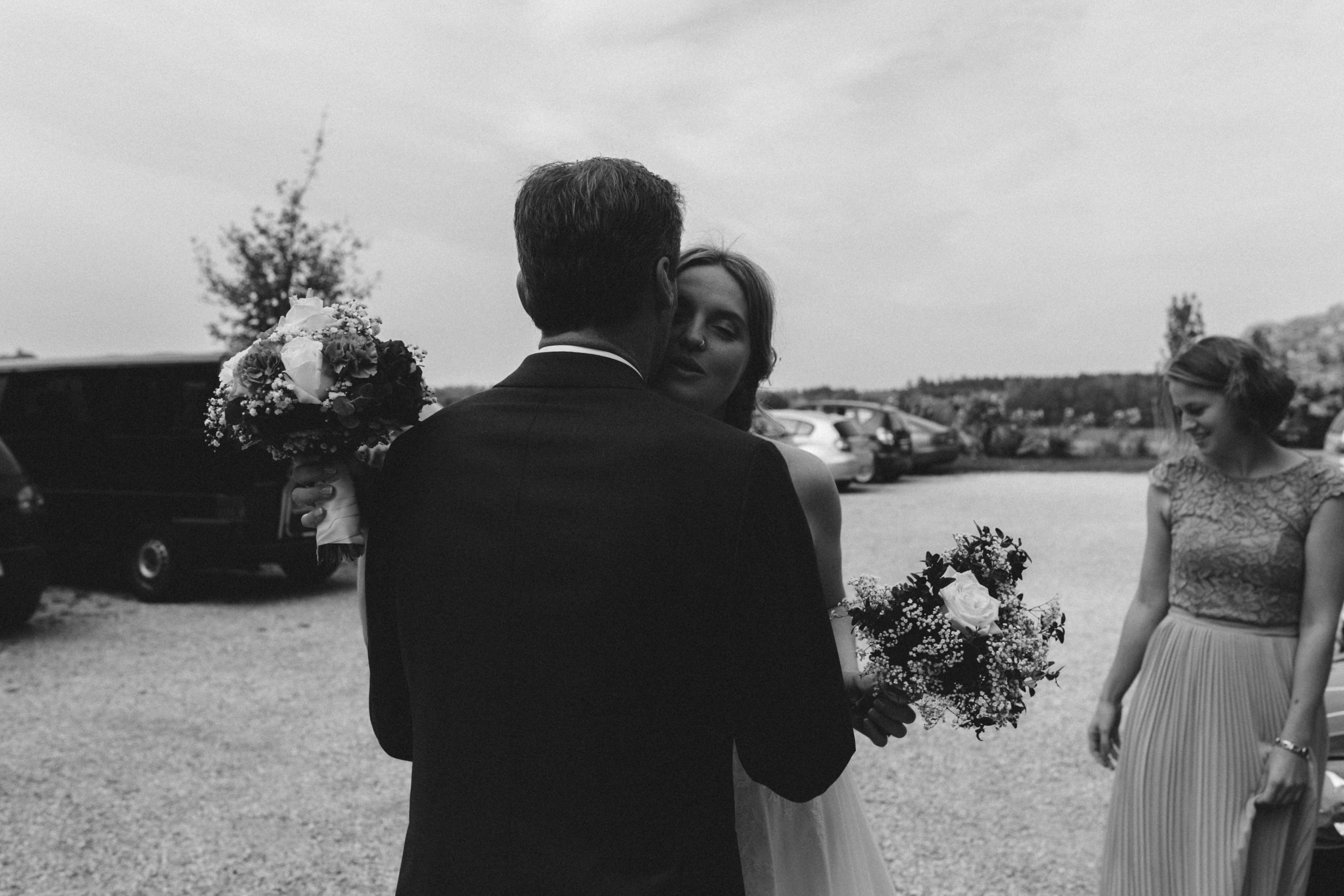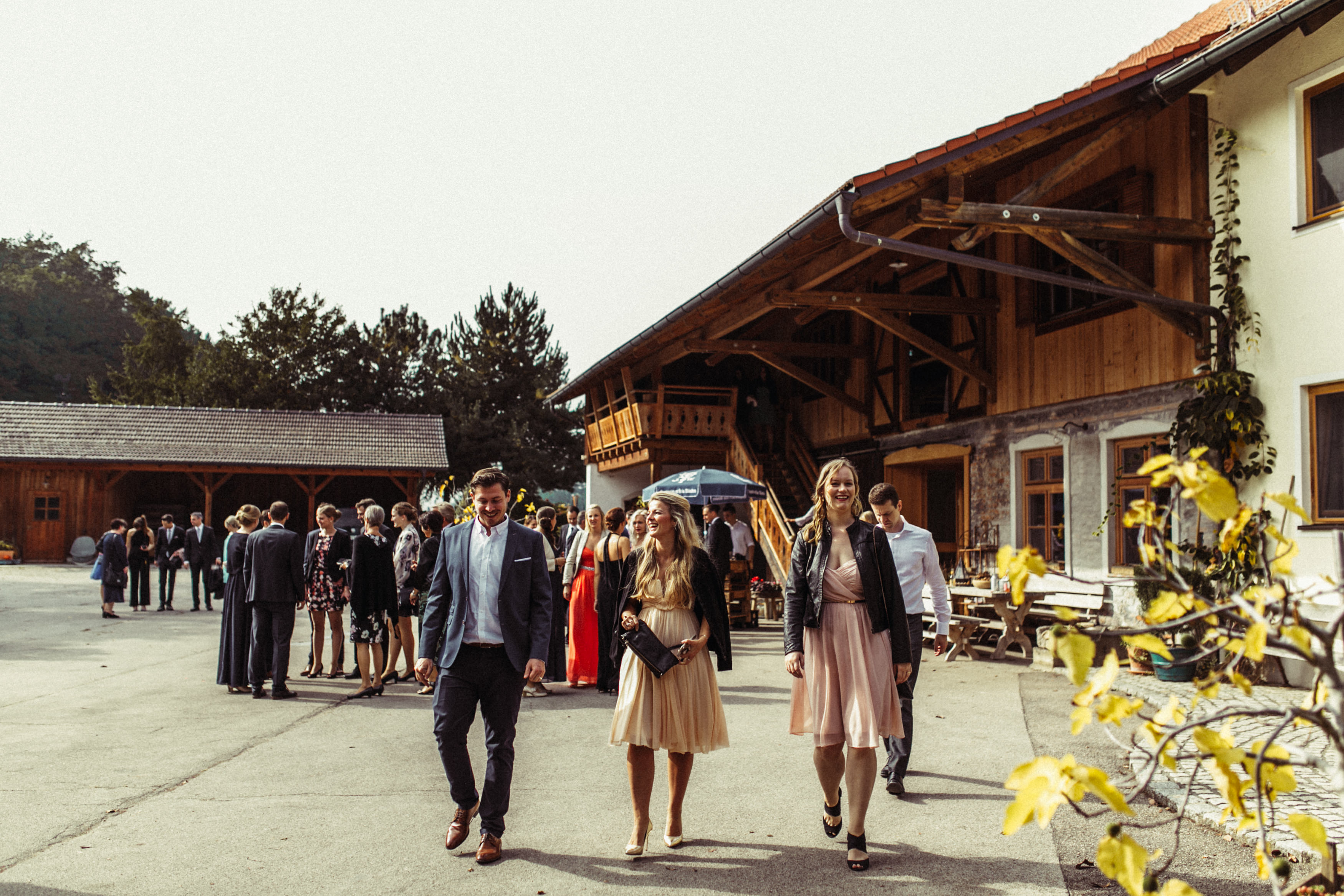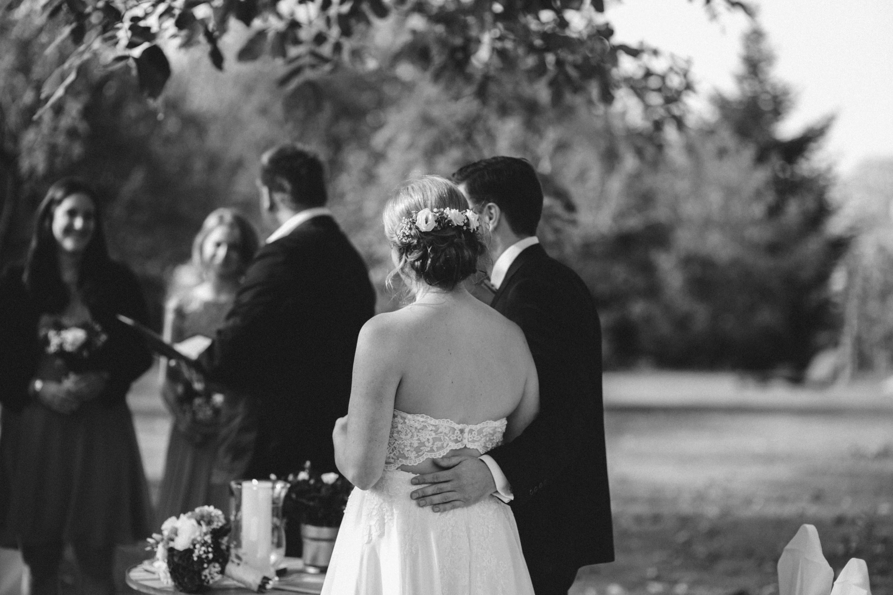 ihr beide habt euch eine zauberhafte Location für eure noch zauberhaftere Trauung ausgesucht. Ich bin mir total sicher dass all die schönen Menschen die mit euch feierten, sich so sehr für euch freuten und diese tolle Kulisse mit jedem Atemzug eingesogen haben, damit es als Erinnerung ewig in den Herzen weilen kann. Die alte Kastanie, die herunterfallenden, bunten Blätter, das versteckte Licht zwischen den Bäumen, zwei verliebte Pferde auf der Koppel und ihr mitten drin unter freiem Himmel. Wie schön die Welt doch ist, nicht wahr? So schön und besonders und immer wieder zauberhaft. Ich wünsche euch, dass ihr das Zauberhafte jeden Tag in eurer Leben und eure Beziehung mit einfließen lasst. Dass ihr die Einladungen erkennen könnt und sie annehmt, in Gesprächen, im Zuhören, in einem duftenden Blumenfeld oder der Musik eines Quells an dem ihr vorbeigeht. All diese Dinge sind so wertvoll für jeden Tag und knüpfen ananeinandergereiht das Band des Lebens, des Glücks und der Wertschätzung. So wie auch das Band über welches eure Ringe durch die Hände eurer Liebsten gleiten durften, so soll auch eure Liebe jeden Tag mit den Geschenken eures Lebens wachsen. Das Leben ist so wunderschön wie ihr es seid, zueinander und miteinander.