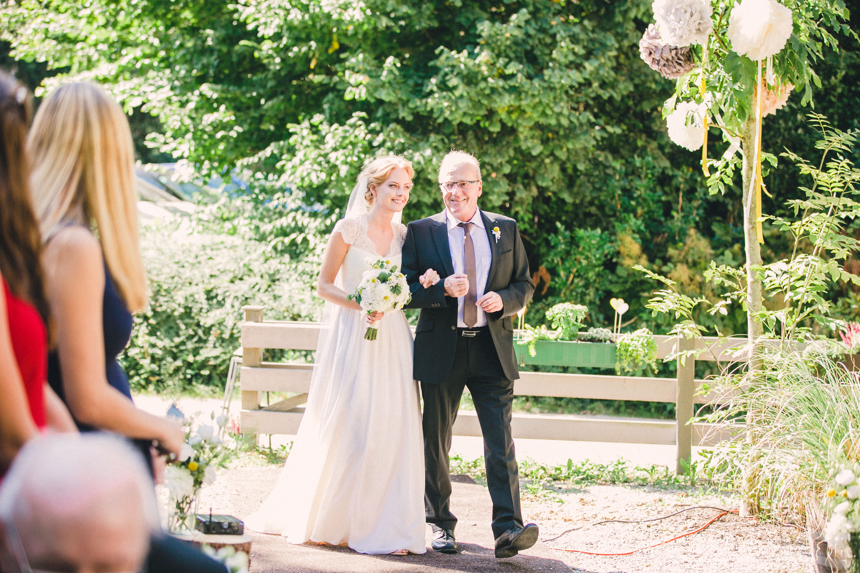 Diese DIY Hochzeit mit freier Trauung hatte alles, was eine Hochzeit vollkommen macht. Von einer hammermäßig, wunderschönen Braut, über einen super stylischen Bräutigam, all den liebevoll geschmückten Details in den Hauptfarben gelb-braun, einer verzauberten Location bis hin zum Indian-Summer-Feeling über den ganzen Tag. Es war eine wundervolle Spätsommer Hochzeit, deren Wetter nicht besser hätte sein können. Mild, warm, so eine Mischung aus „Wenn sich der Sommer verabschiedet, es aber noch warm genug ist um keine Jacke zu tragen“. Ich liebe Nadjas Look und ihren Charme. Sie war die ultimative Bridechilla und strahlte von innen und von außen wie die goldene Sonne.