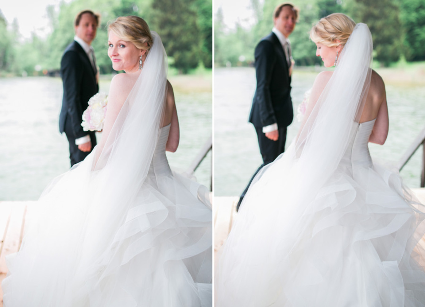 Meine Braut hat sich in ihrem Märchenkleid und ihren funkelnden Jimmy Choos bewegt wie eine Prinzessin, als hätte sie nie etwas anderes getan als mit diesen Absätzen auf Kies, Wiese und einem Holzsteg zu laufen.