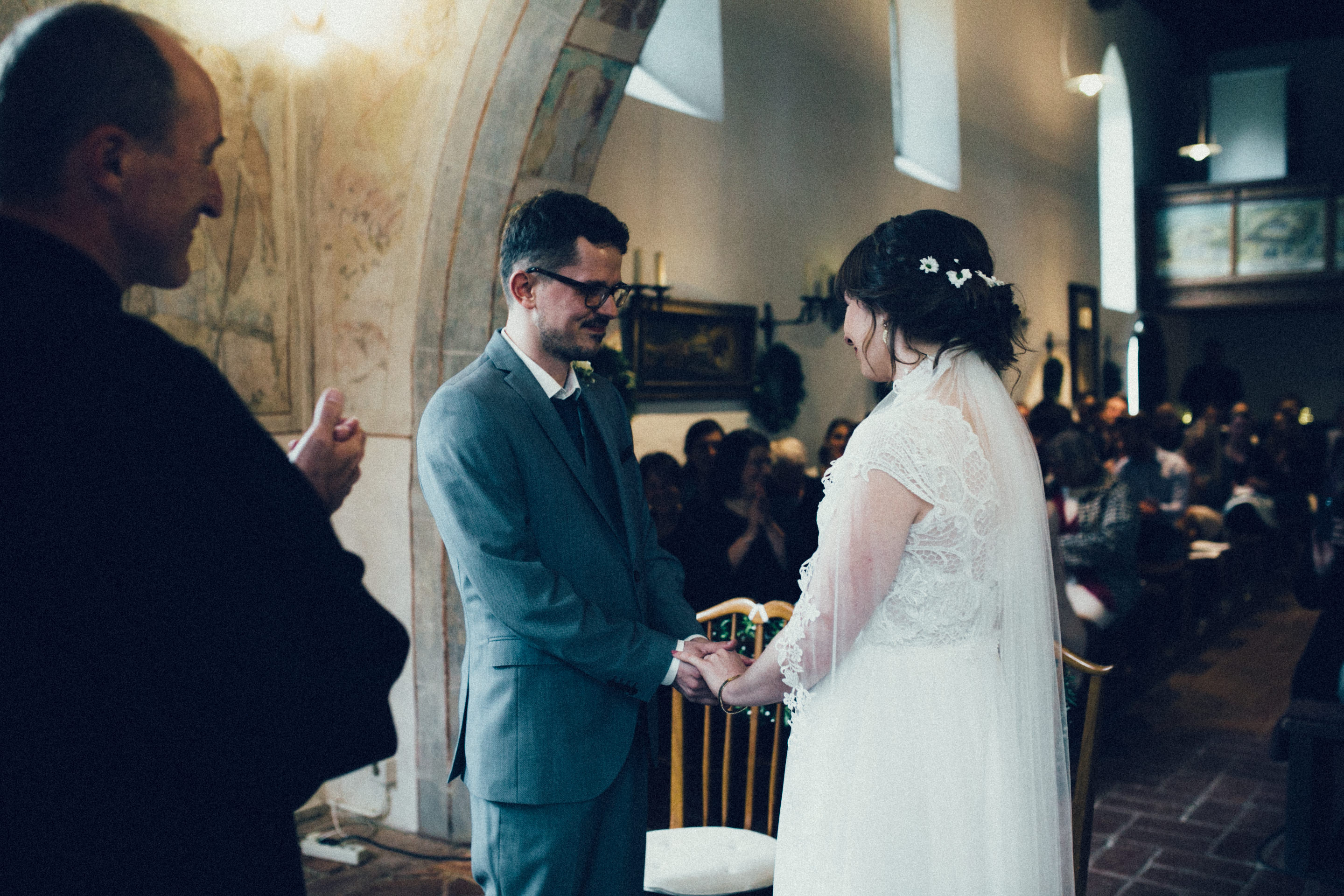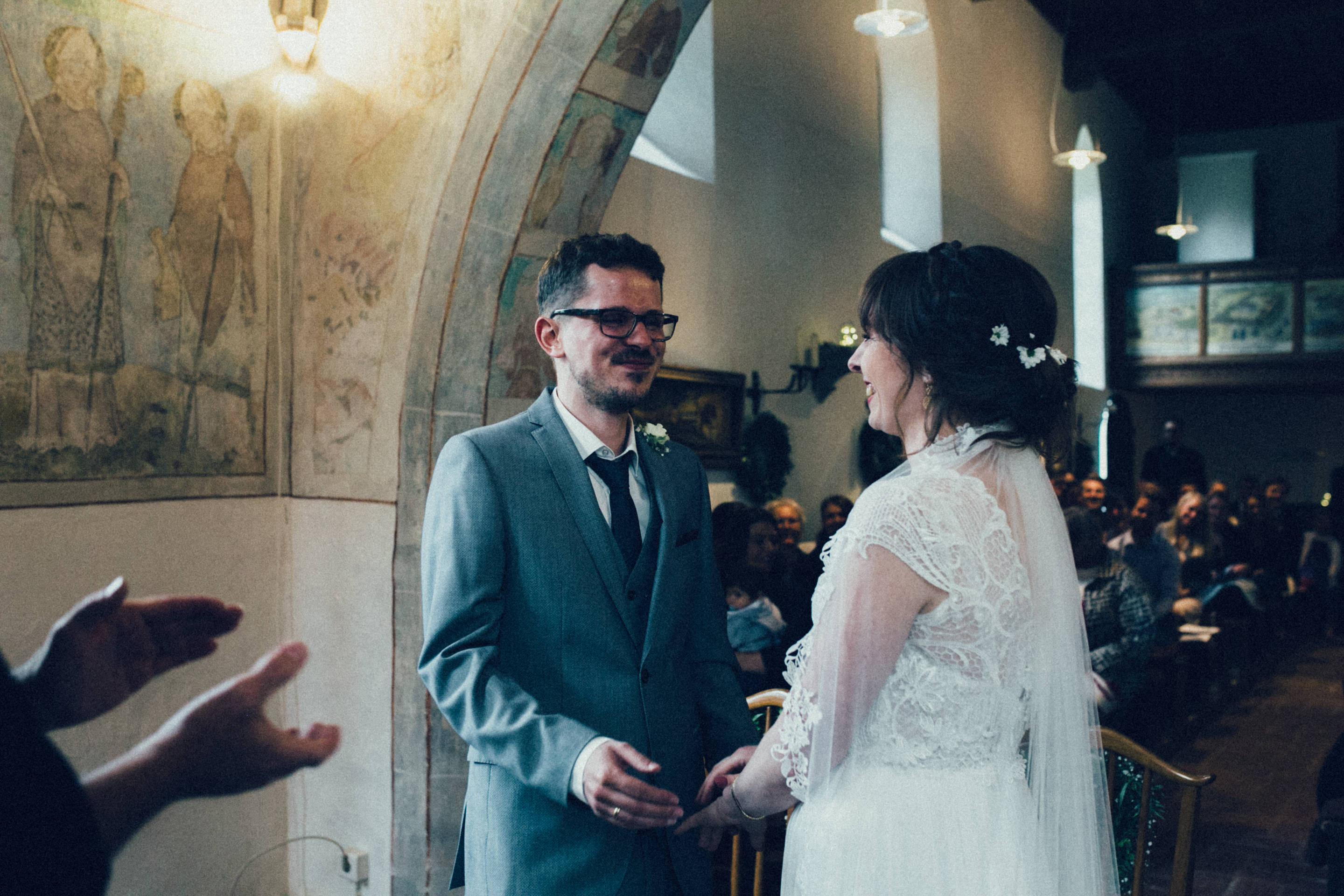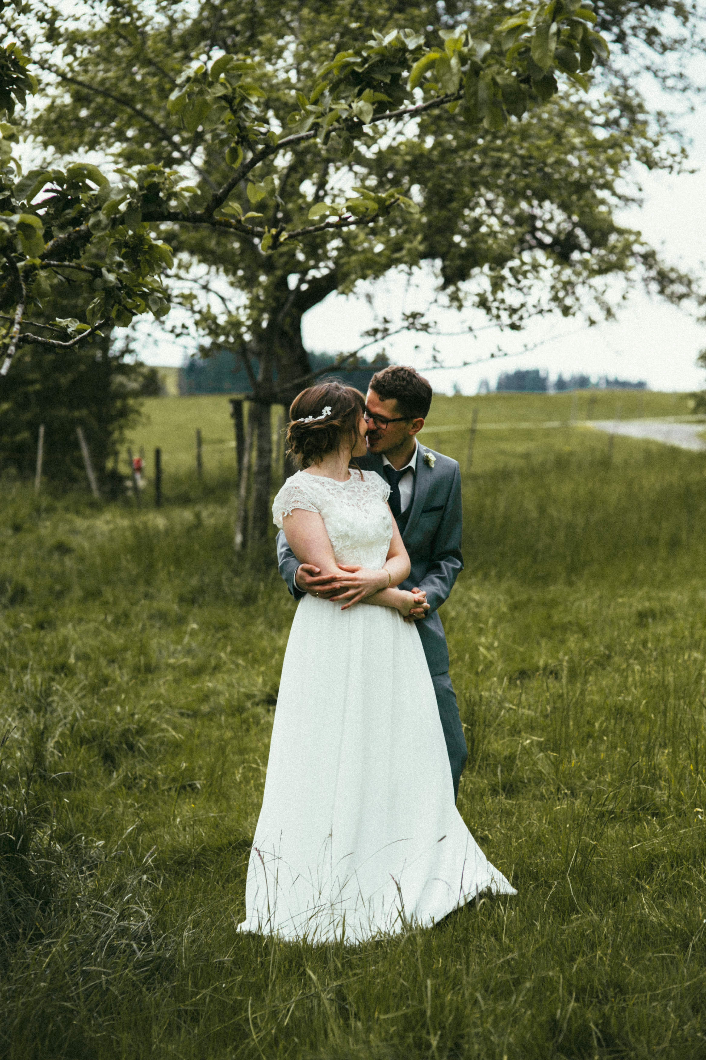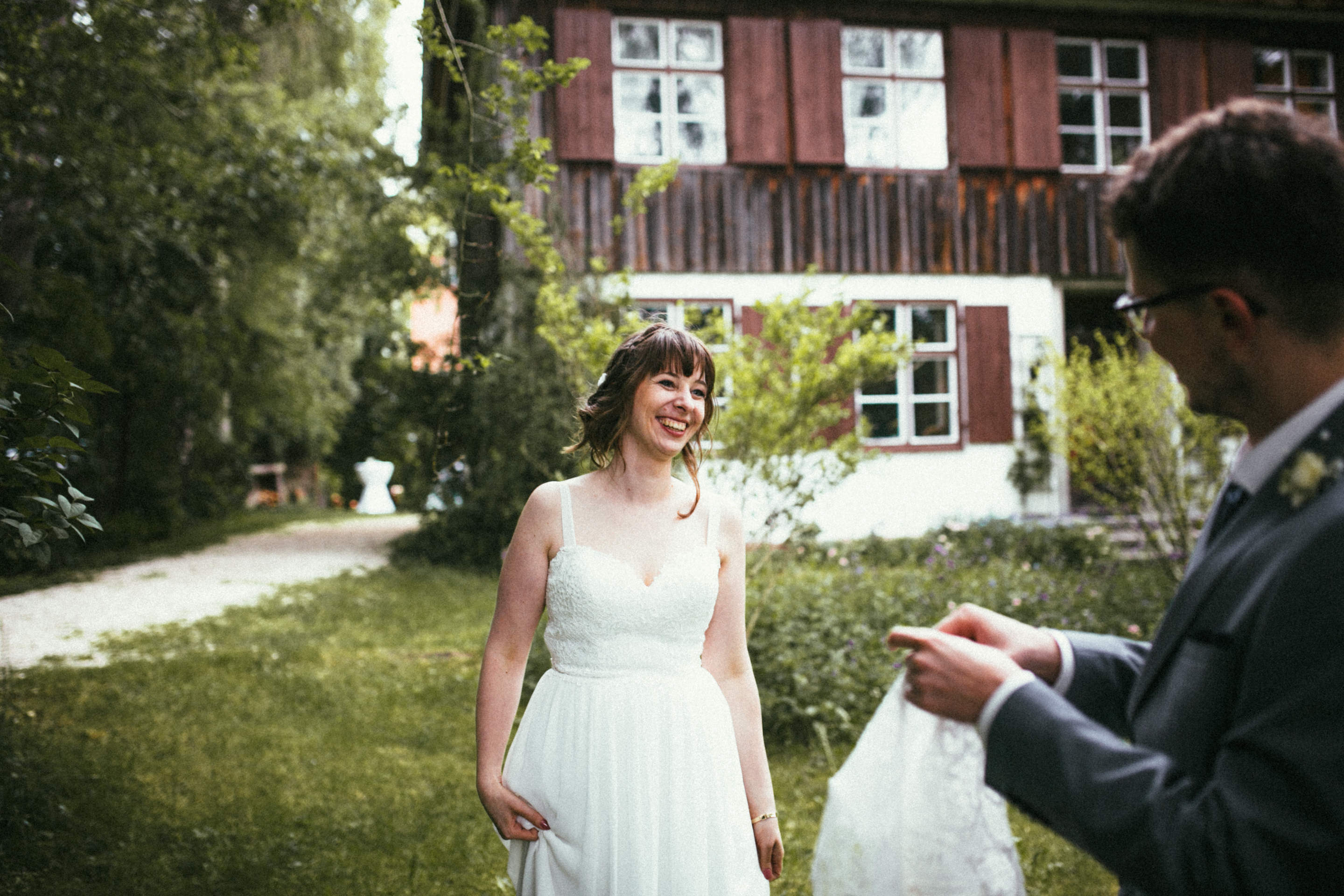 Es ist eine wunderbare Sache am eigenen Hochzeitstag die fehlende Sonne durch die eigenen, strahlenden Herzen zu ersetzen. Nichts hätte Johanna und Martin mehr zum leuchten gebracht als die Freude, welche beide über den Tag hinweg ausstrahlten. Nicht mal die wunderbaren Feenlichter die eine ganze Scheune verzaubert haben.Von der ersten Sekunde, bis zum letzten Moment, die zwei Herzen strahlten heller als alles andere. Zärtlichkeit lag in der Luft, dass einem das Herz aufging, inmitten des rauhen Wetters über dem kühlen Allgäu an jenem Hochzeitstag im Frühsommer.