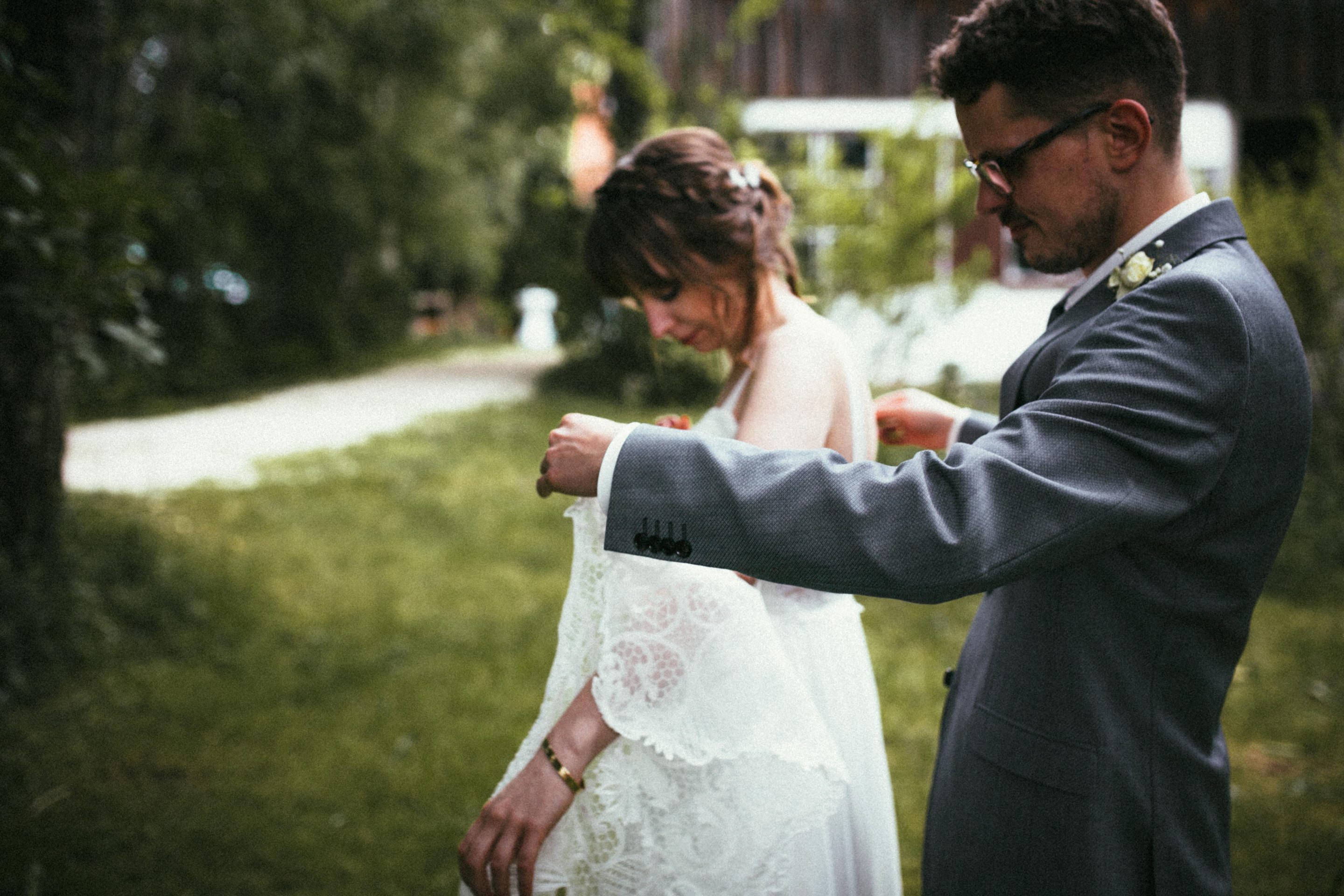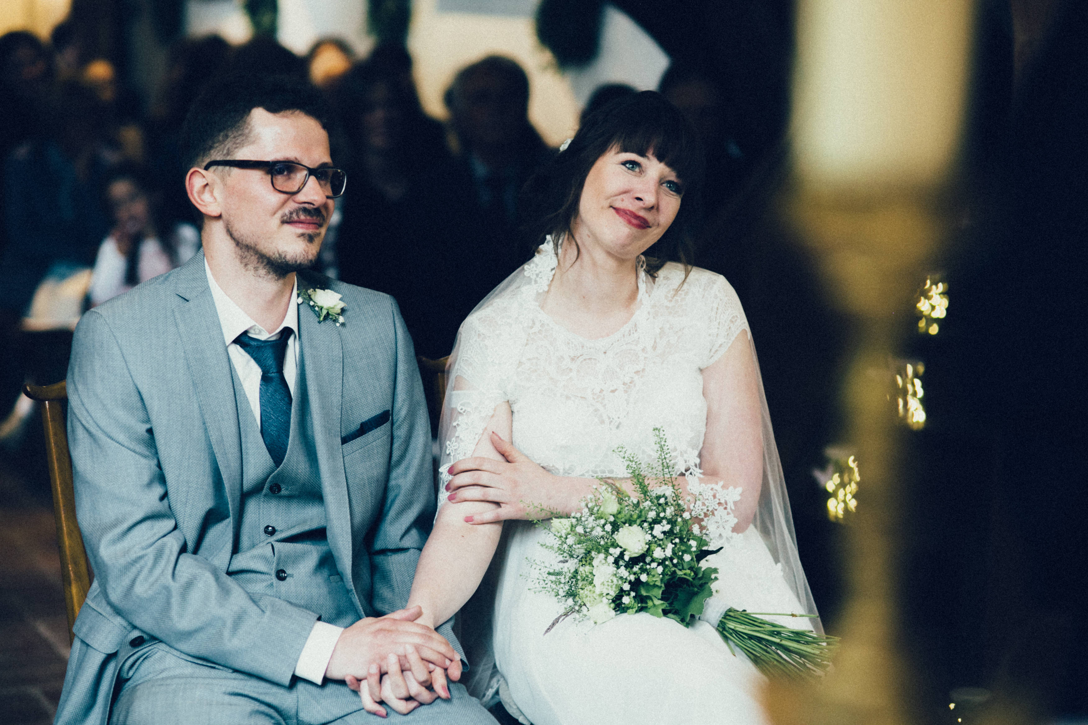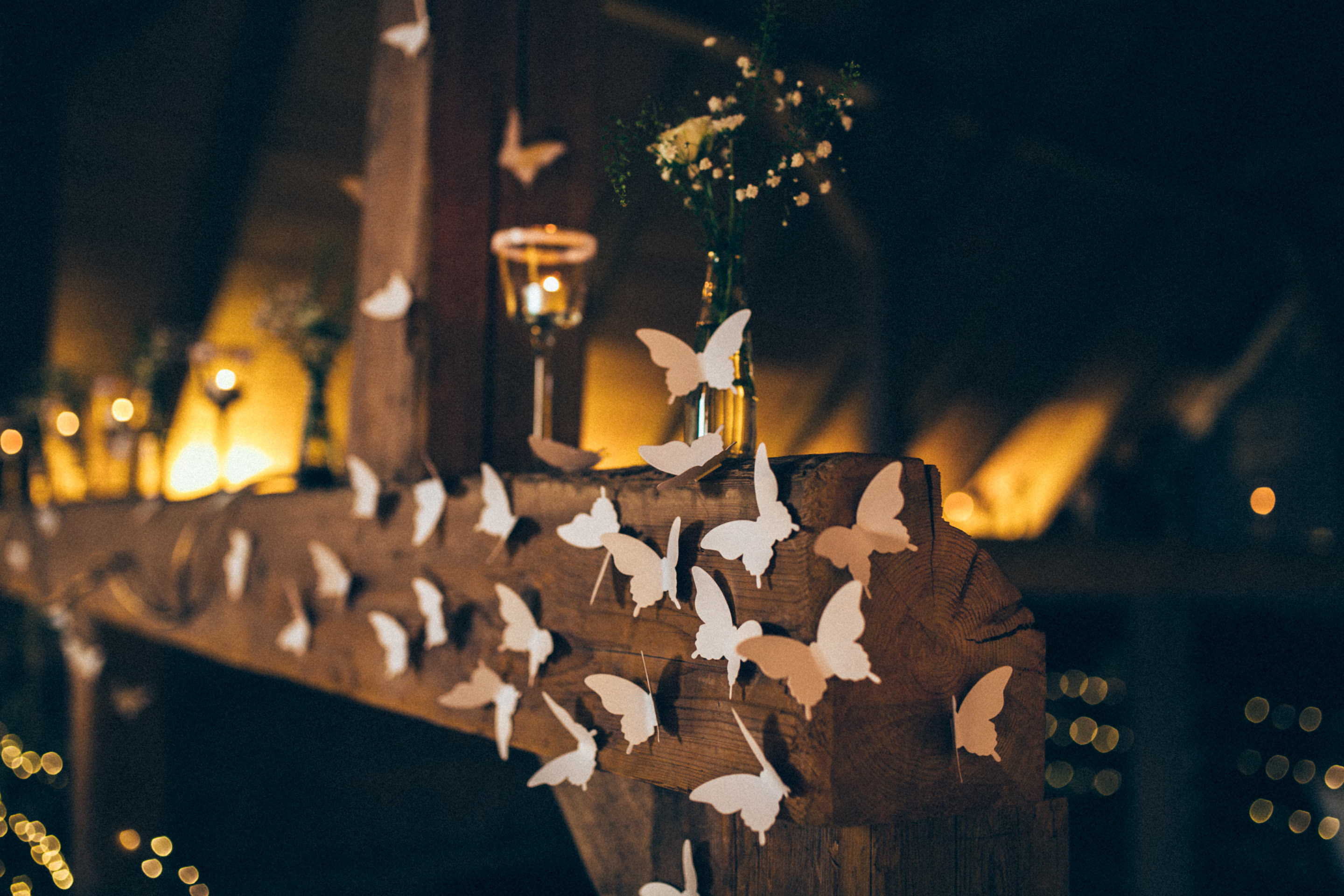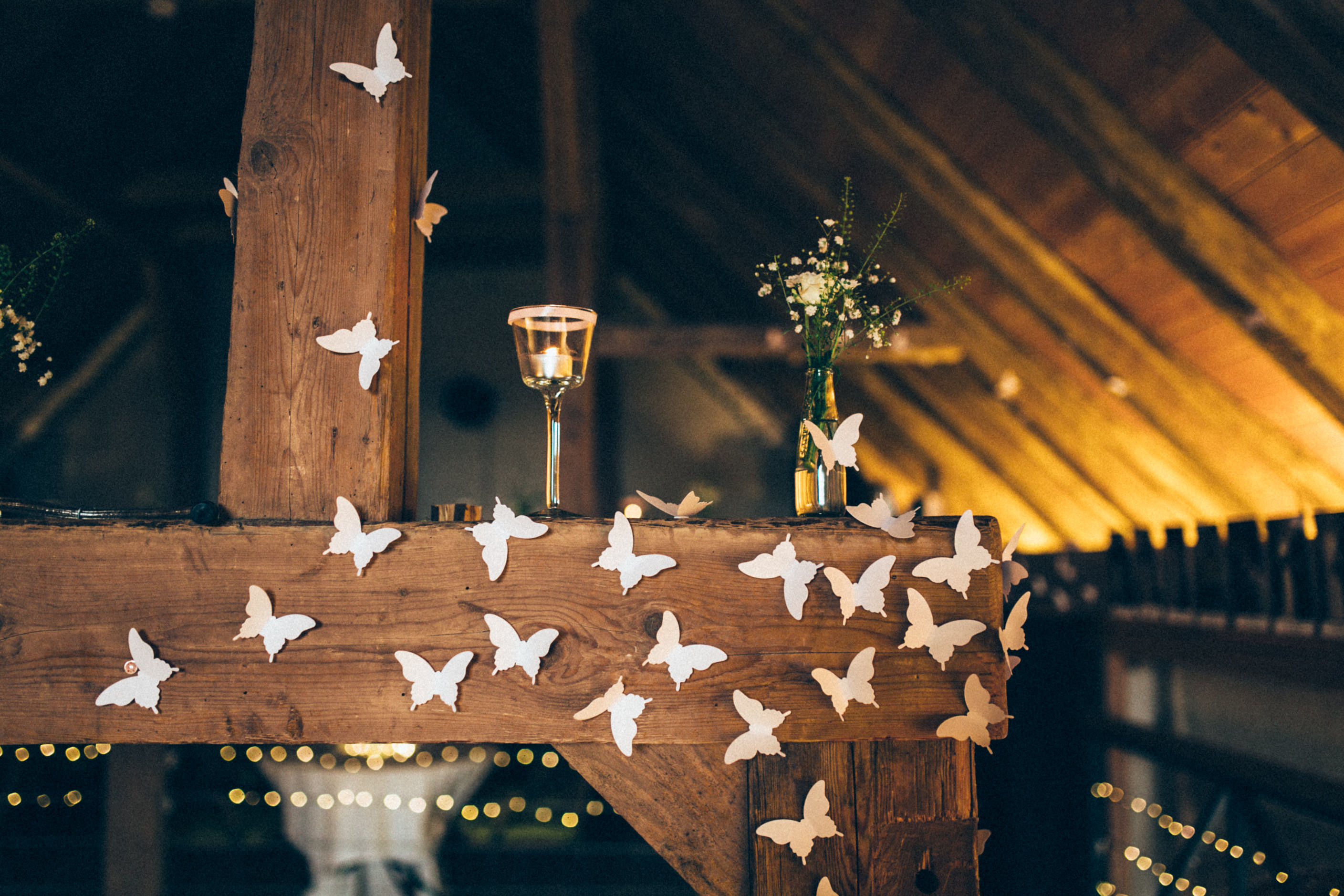 Es ist eine wunderbare Sache am eigenen Hochzeitstag die fehlende Sonne durch die eigenen, strahlenden Herzen zu ersetzen. Nichts hätte Johanna und Martin mehr zum leuchten gebracht als die Freude, welche beide über den Tag hinweg ausstrahlten. Nicht mal die wunderbaren Feenlichter die eine ganze Scheune verzaubert haben.Von der ersten Sekunde, bis zum letzten Moment, die zwei Herzen strahlten heller als alles andere. Zärtlichkeit lag in der Luft, dass einem das Herz aufging, inmitten des rauhen Wetters über dem kühlen Allgäu an jenem Hochzeitstag im Frühsommer.