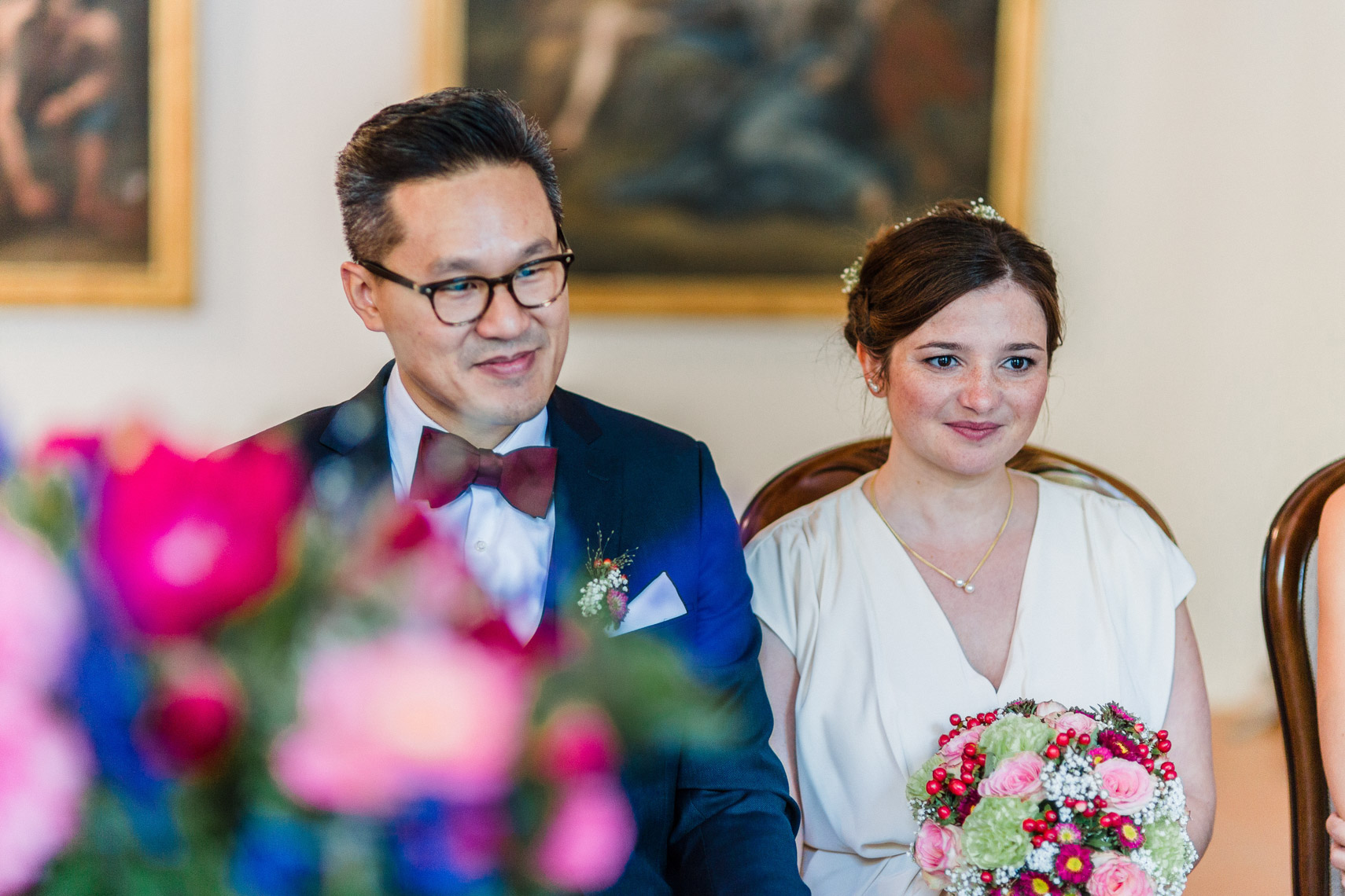 Das Glück liegt überall, unter einem Stein, in einer liebevoll zubereiteten Mahlzeit, in einem farbigen Pinselstrich. Ich wünsche euch, dass euch diese Wärme wie einst an eurem Hochzeitstag, euer Leben lang begleiten wird.