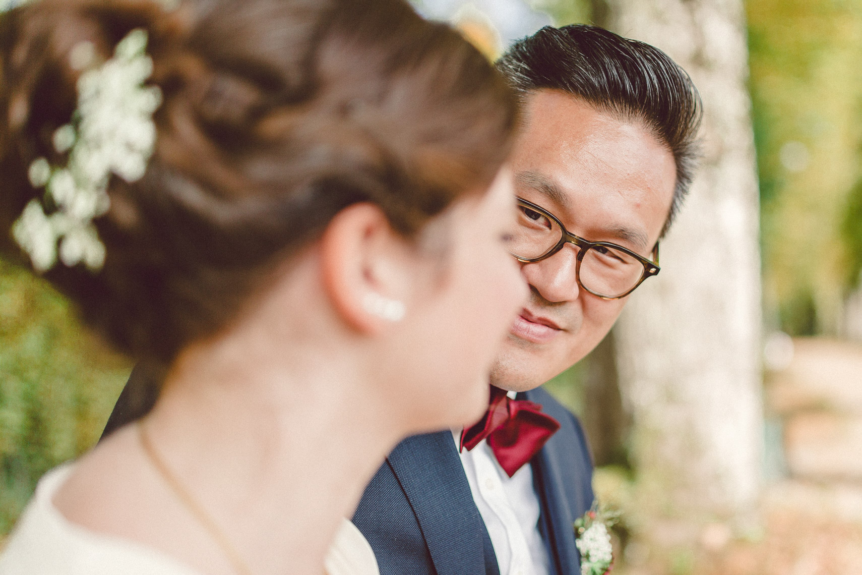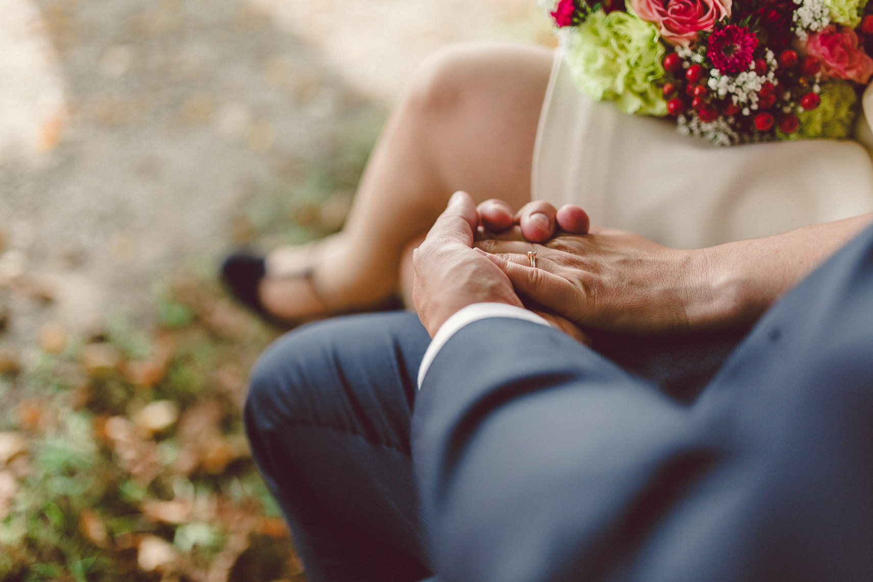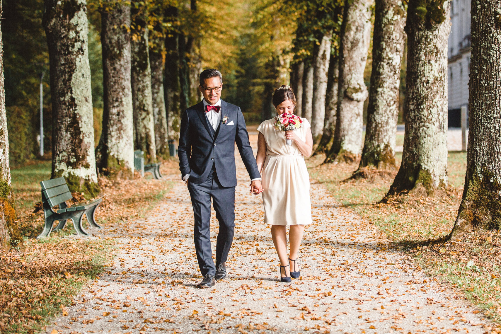 Die Ruhe die um euch und eure Gäste lag, die goldene Sonne die beim Rückweg durch die Bäume funkelte, die bunten Blätter die sich um euch legten während wir das Shooting machten. All diese Dinge, die man mit mit keinem Geld der Welt bezahlen könnte, wurden euch von der Natur geschenkt und haben damit eure Hochzeit zu einem einmalig schönen Tag gemacht.