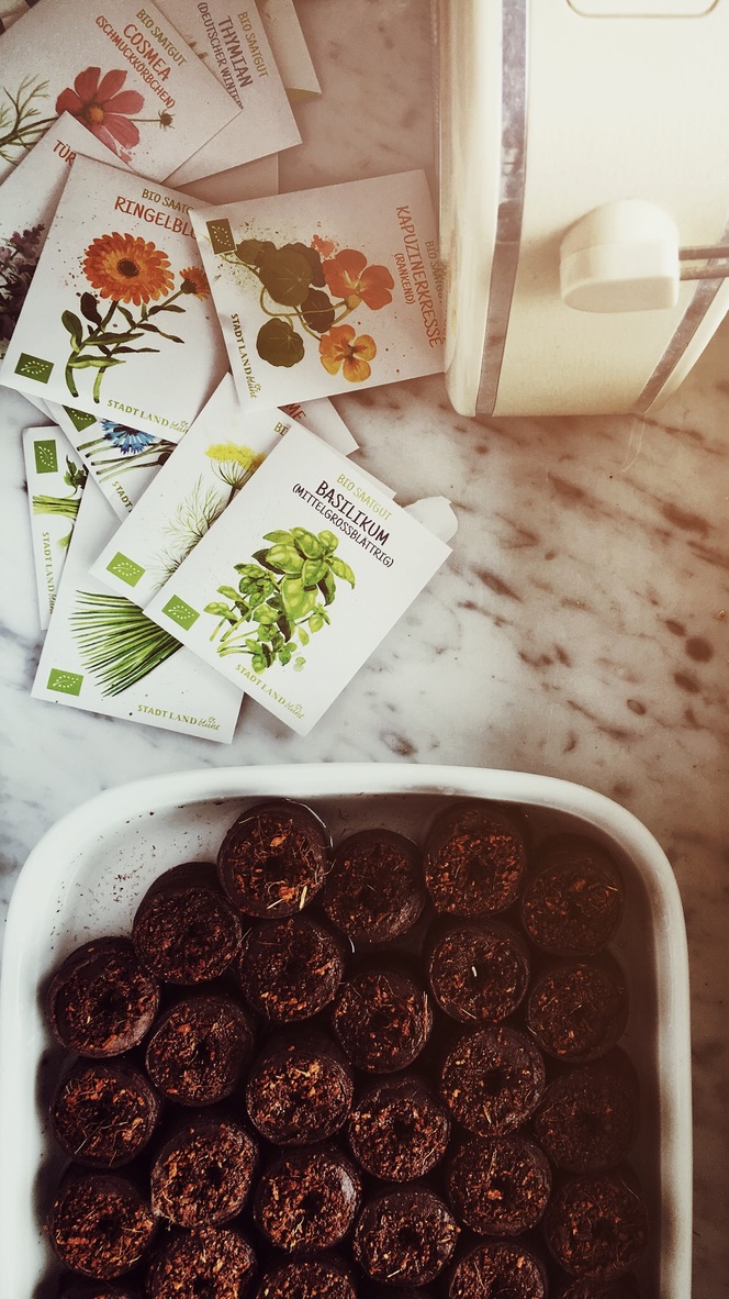 Parallel wuchsen die Keimlinge sämtlicher Sorten von Gemüse und Kräuterpflanzen auf der Fensterbank. Anfänglich ging es ihnen super – allerdings sind Pflänzchen von der Fensterbank die später ins Beet wandern viel anfälliger auf Pilze und Krankheiten, so dass mir einige davon im Außenbeet kaputt gegangen sind. Für die kommende Saison möchte ich die Pflänzchen deshalb draußen im Frühbeet anlegen. Dabei wachsen sie in der selben Erde, in der sie später groß werden, sind härteren Temperaturschwankungen ( Nacht-Kalt-Tag-Warm) ausgesetzt als im Haus und werden darum robuster.